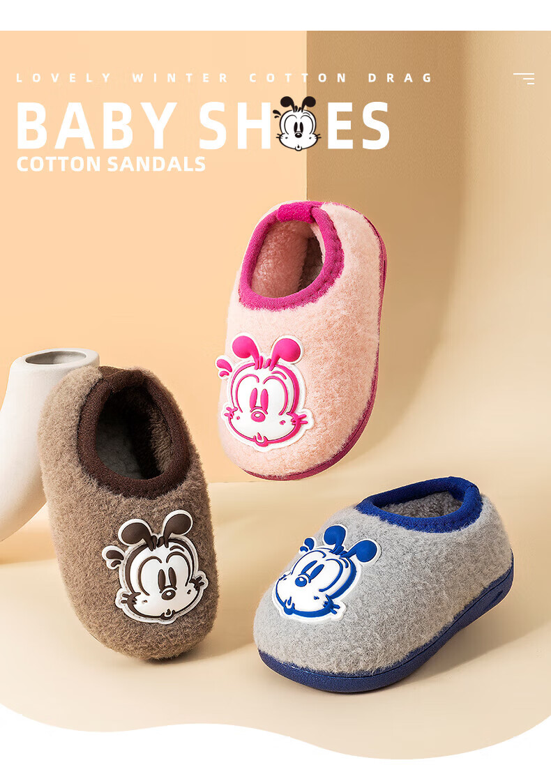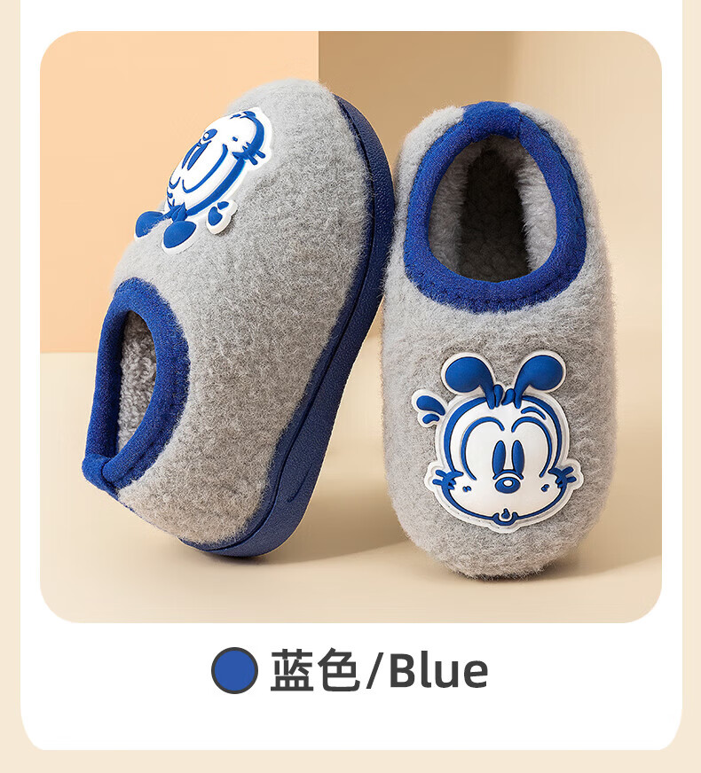 Babudou Children's Shoes Children's Cotton Slippers Winter Plus Velvet Warm Infant Cotton Shoes Boys Non-Slip Girls Fashion New Style Blue 16 Inner Length 16cm