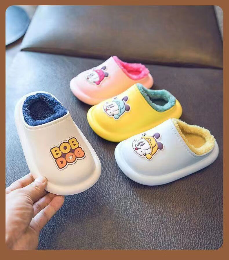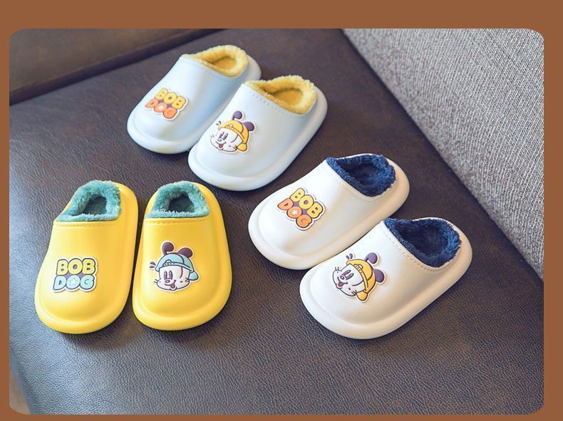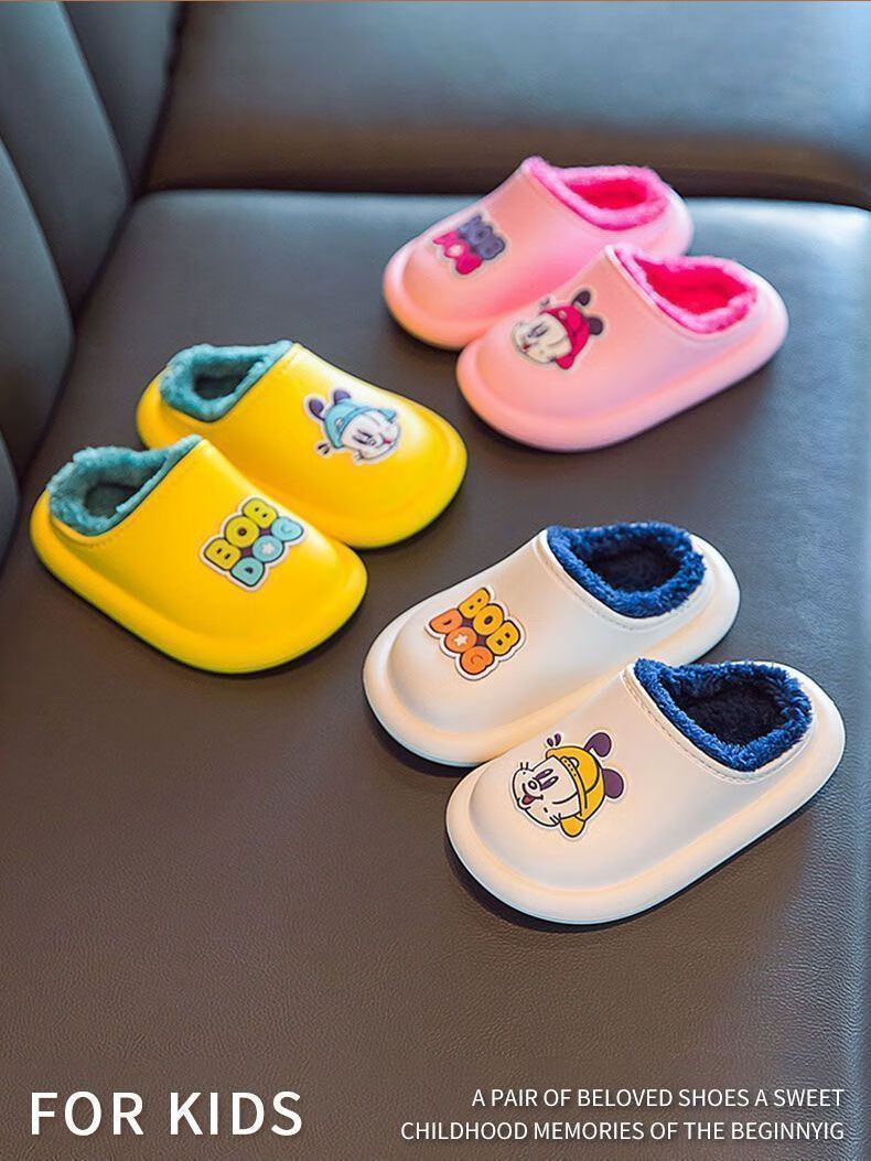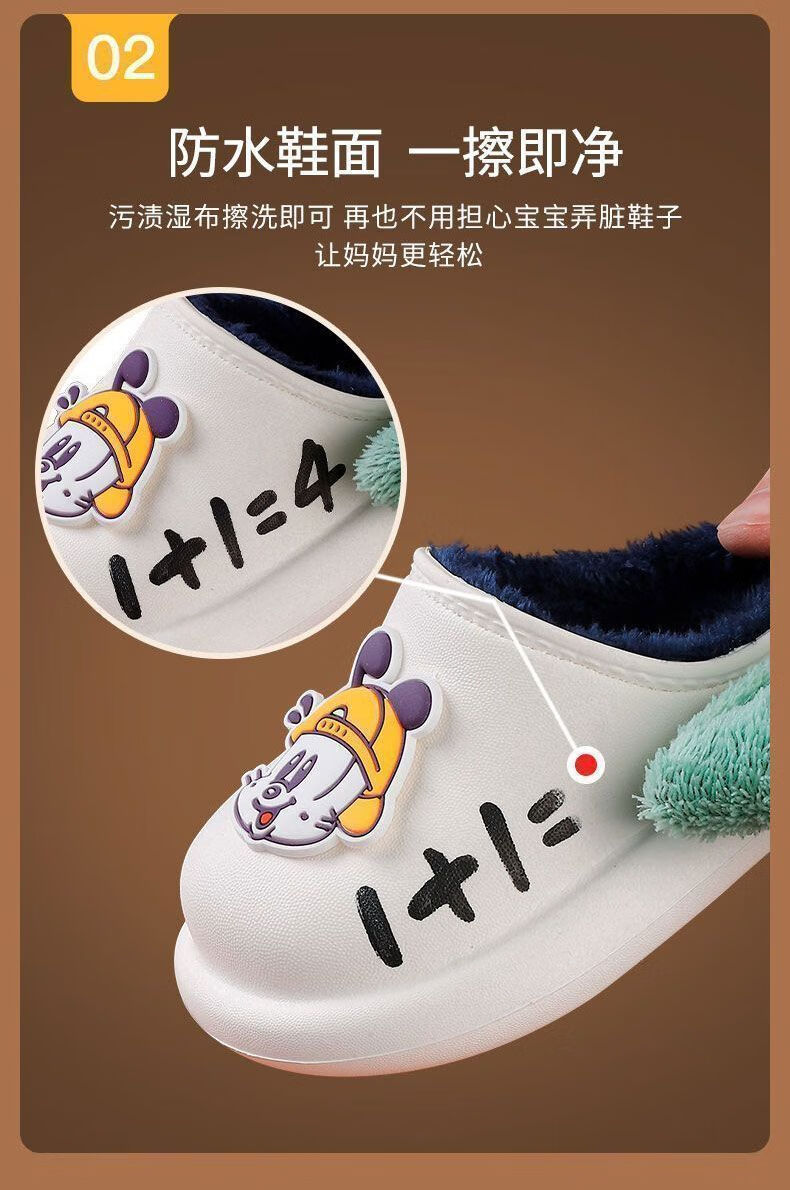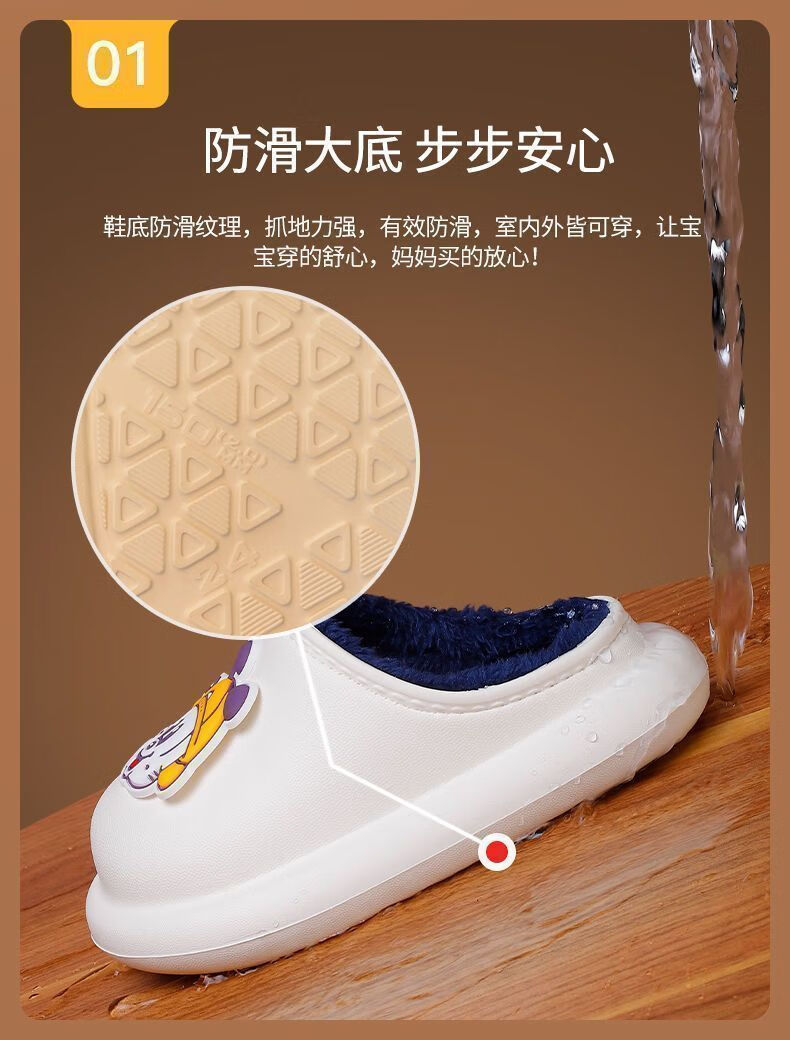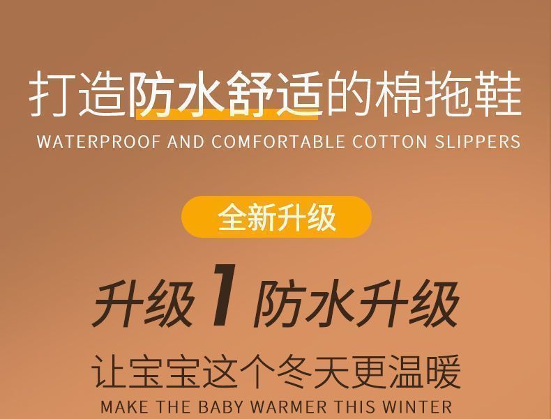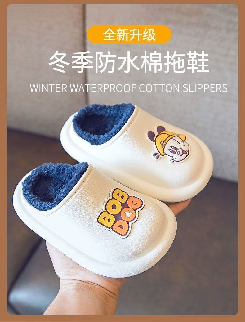 Babu Dou children's cotton shoes, non-slip and waterproof, baby indoor winter plus velvet, boys' home, girls' heel cotton slippers, upgraded version of beige heel, 20.5 cm inner length, size 210, suitable for feet 19.5cm long