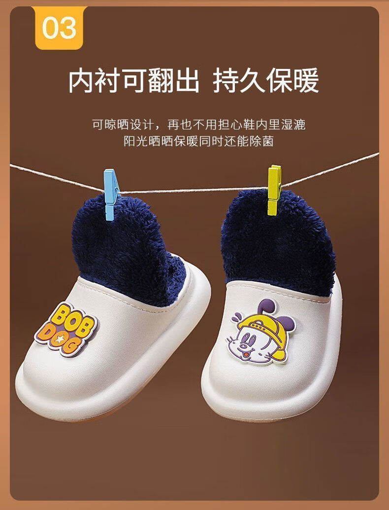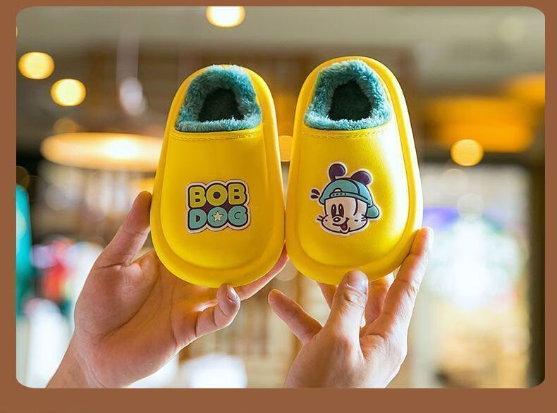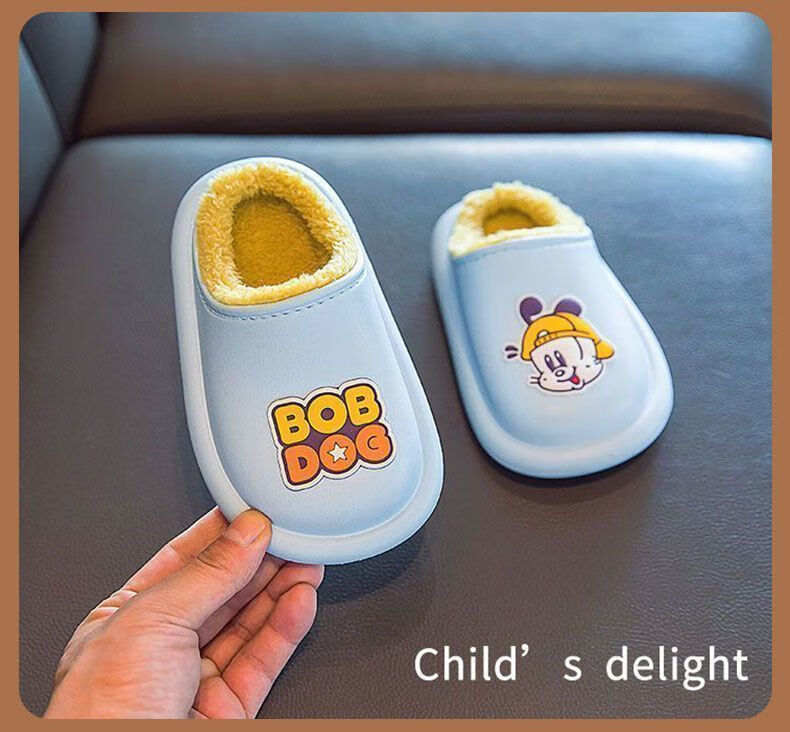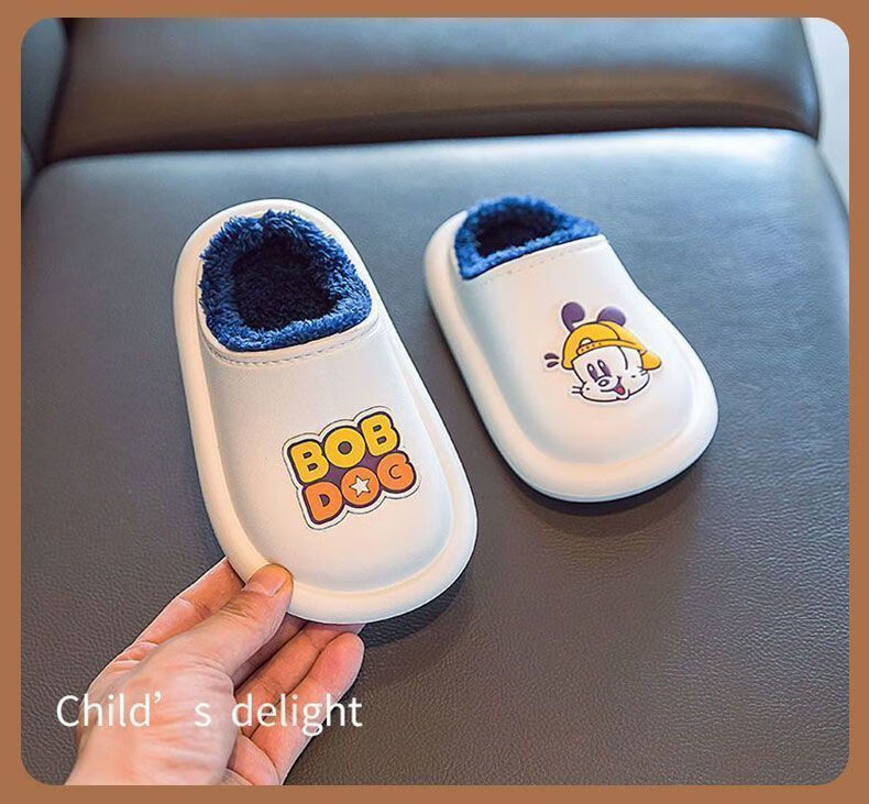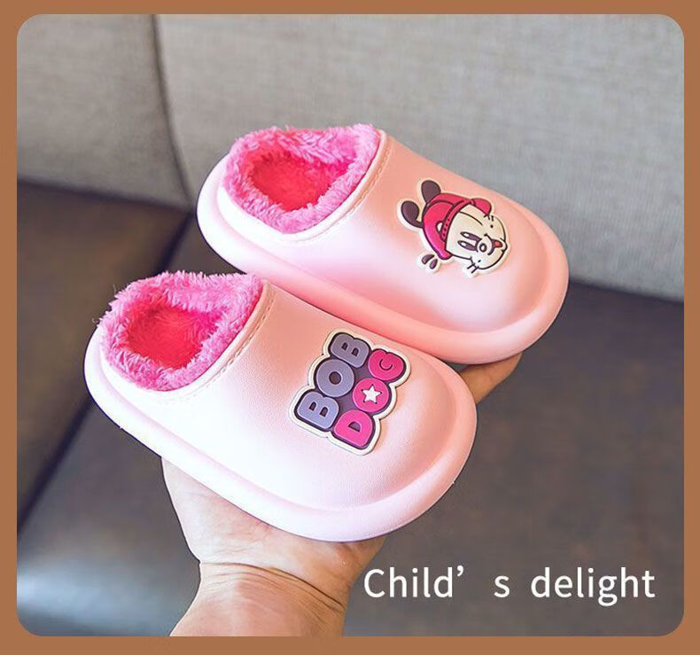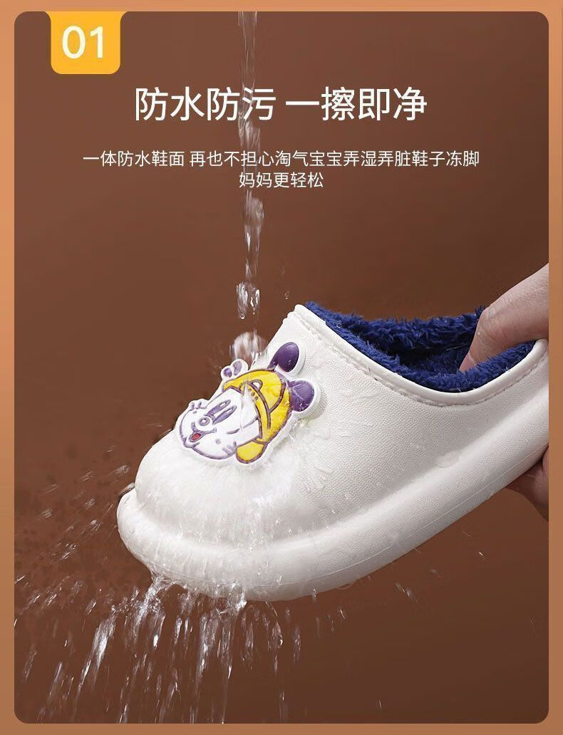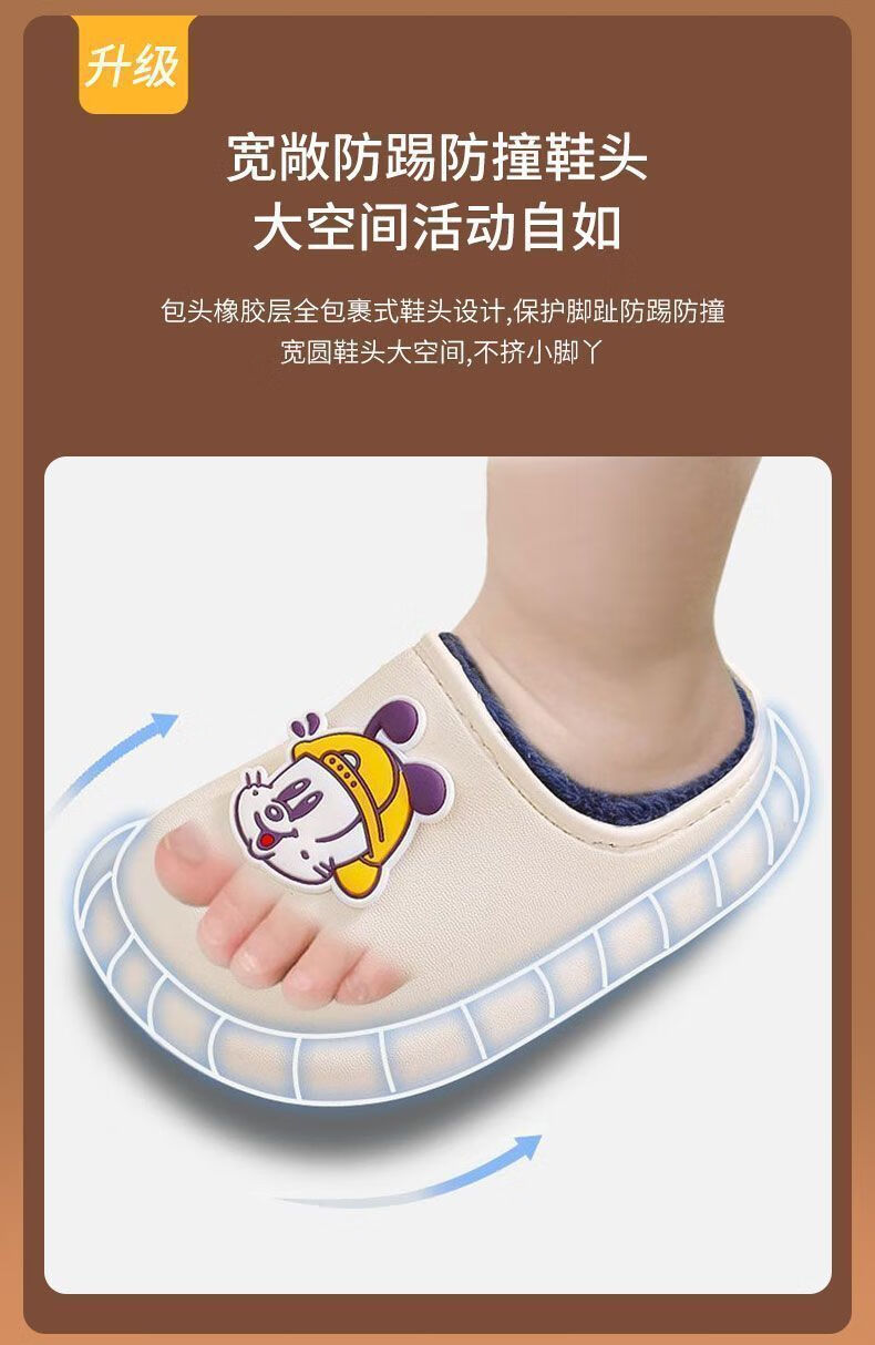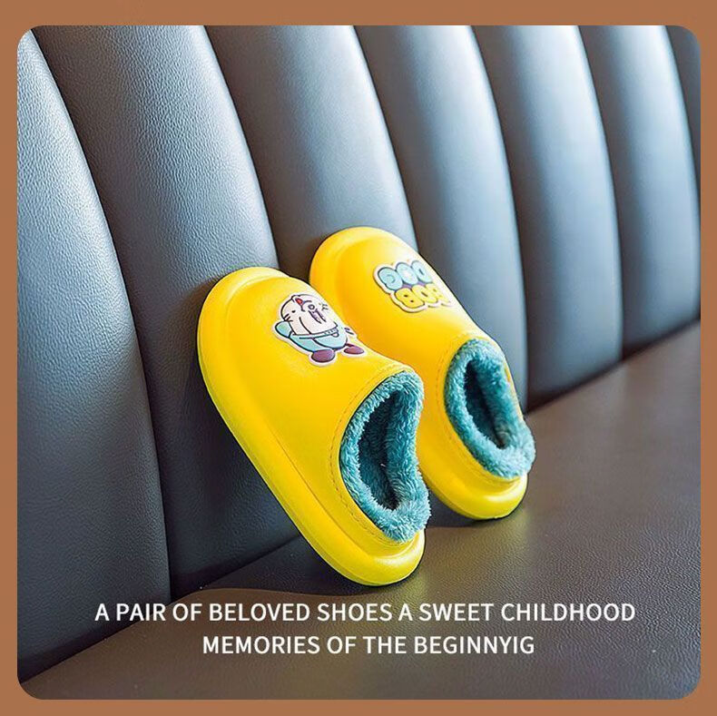 Babu Dou children's cotton shoes, non-slip and waterproof, baby indoor winter plus velvet, boys' home, girls' heel cotton slippers, upgraded version of beige heel, 20.5 cm inner length, size 210, suitable for feet 19.5cm long