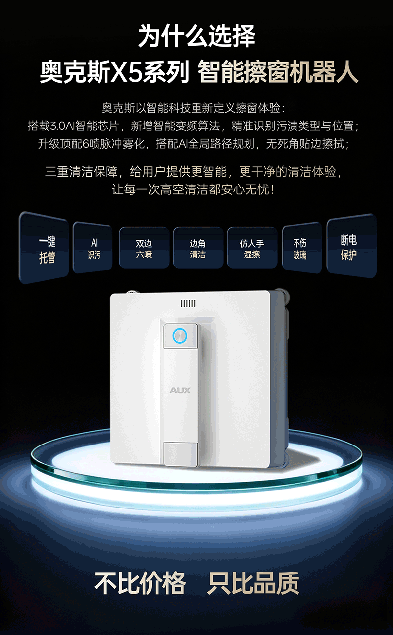 AUX Window Cleaning Robot Electric Glass Cleaning High Efficiency Fully Automatic Home Intelligent Wet Wiping Cleaning Window Double Layer Artifact 2025 New Cleaning Machine X5 Dual Spray High Efficiency Wet Wiping