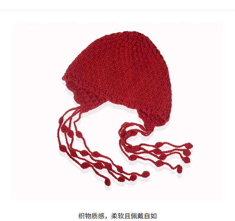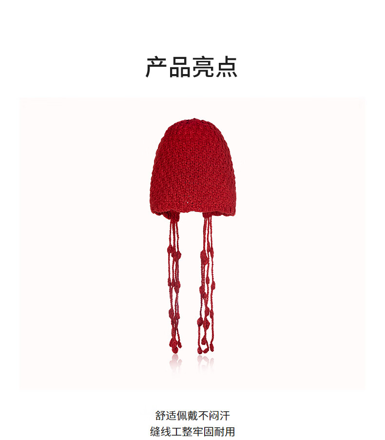 AJIDOU Hat Warm Red Woolen Hat Women's Fashion Casual Hat New Year's Eve Gift Red One Size