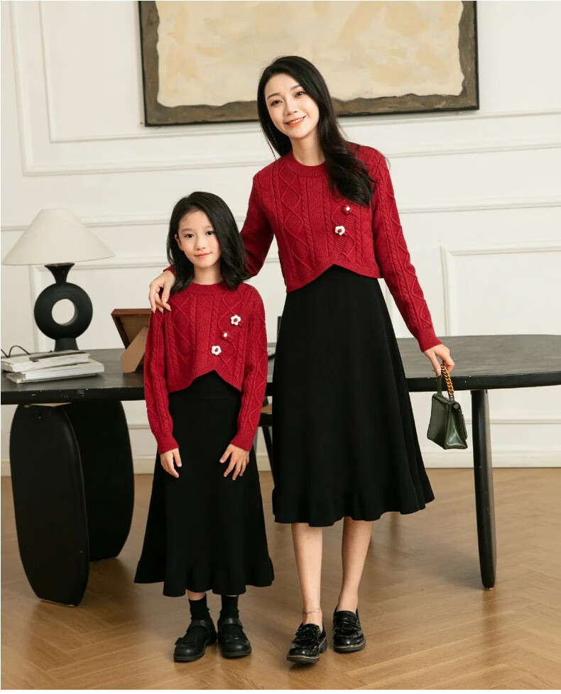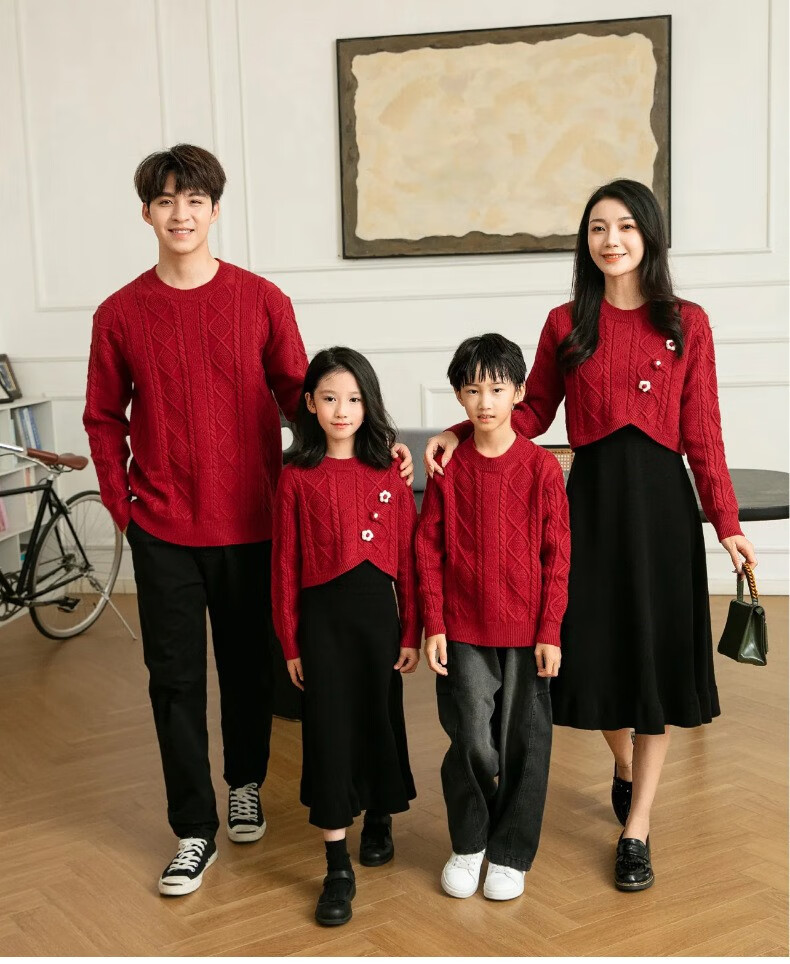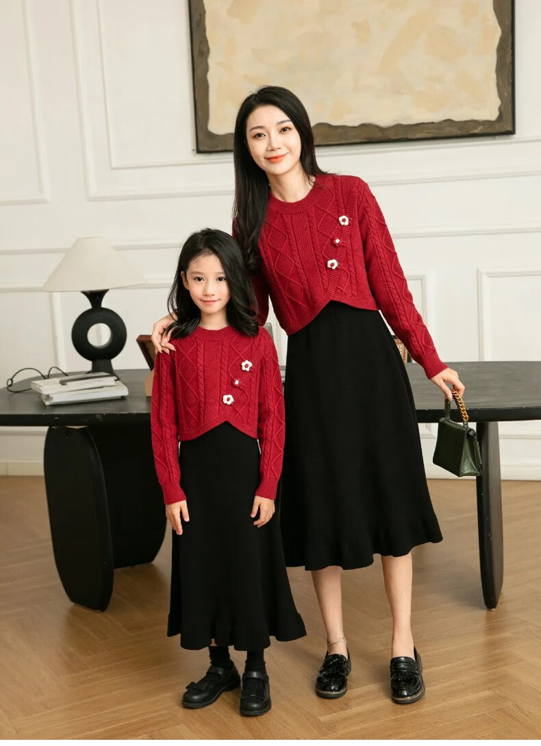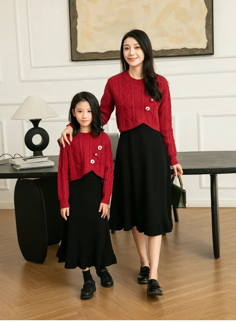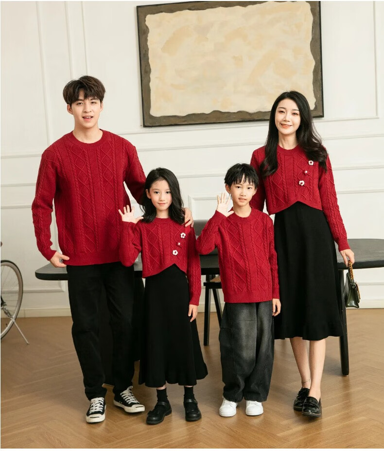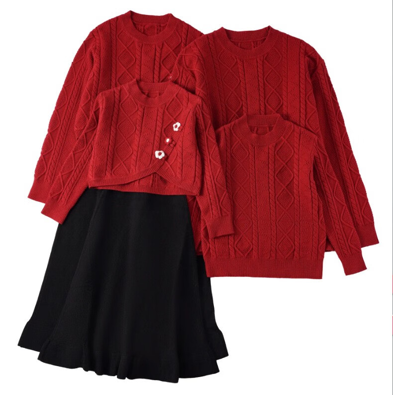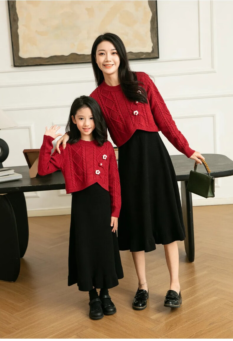 Little Bear Elf (xiaoxiongjingling) parent-child mother-daughter dress two-piece suit Chinese New Year autumn and winter high-end family of three or four red national style sweater men's single top / women's two-piece set 170 mother size M (recommended weight 95-110 Jin Jin is equal to 0.5 kg)