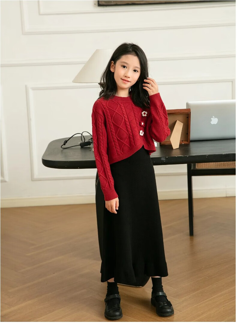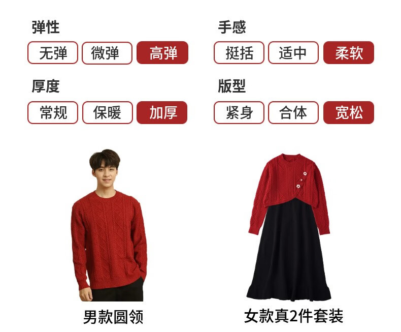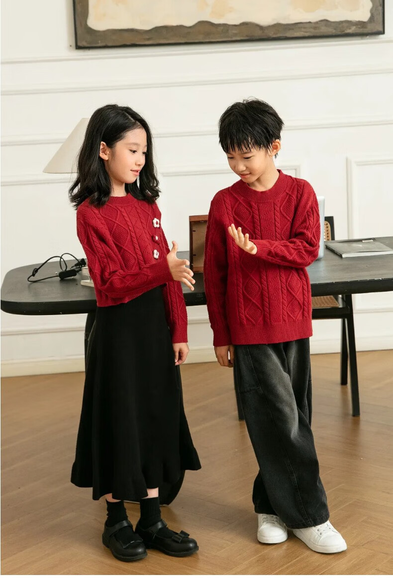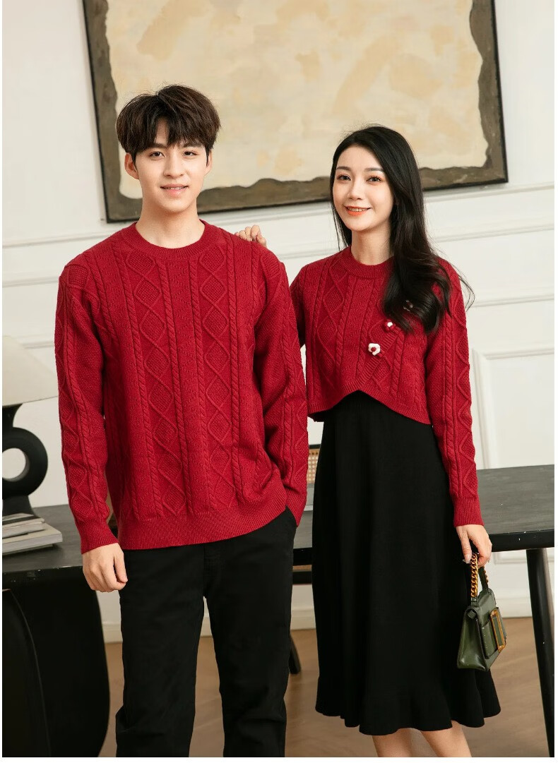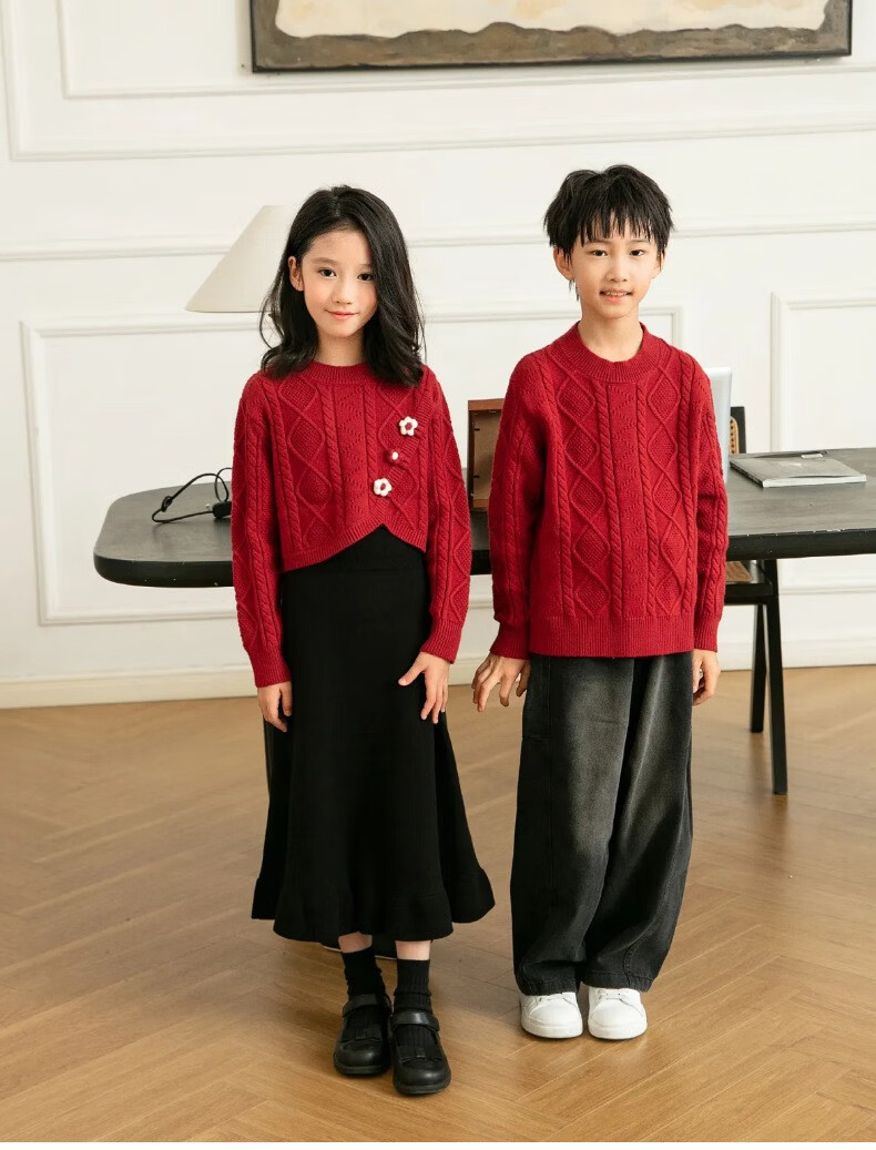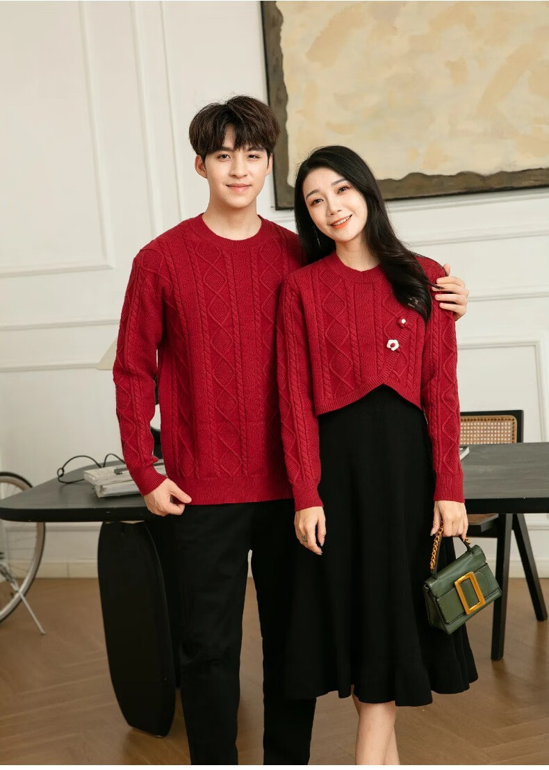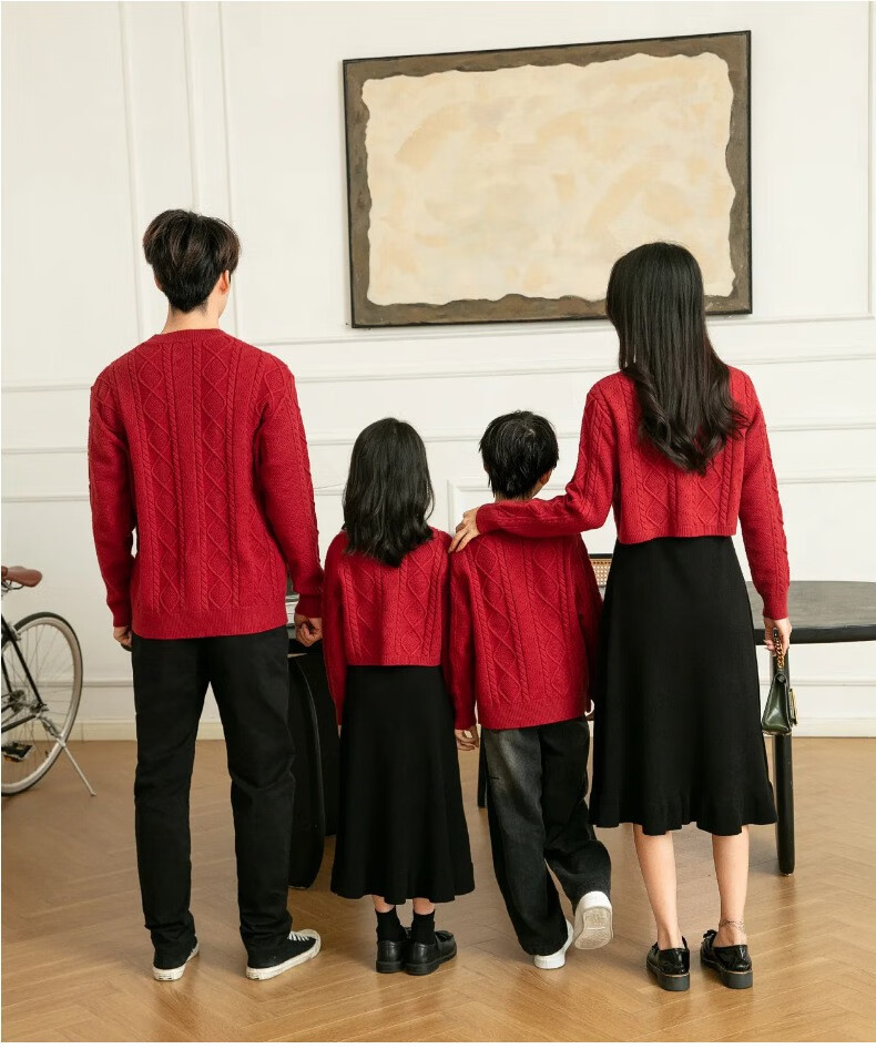 Little Bear Elf (xiaoxiongjingling) parent-child mother-daughter dress two-piece suit Chinese New Year autumn and winter high-end family of three or four red national style sweater men's single top / women's two-piece set 170 mother size M (recommended weight 95-110 Jin Jin is equal to 0.5 kg)