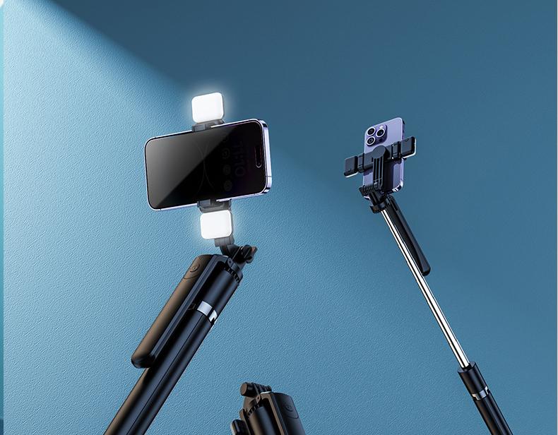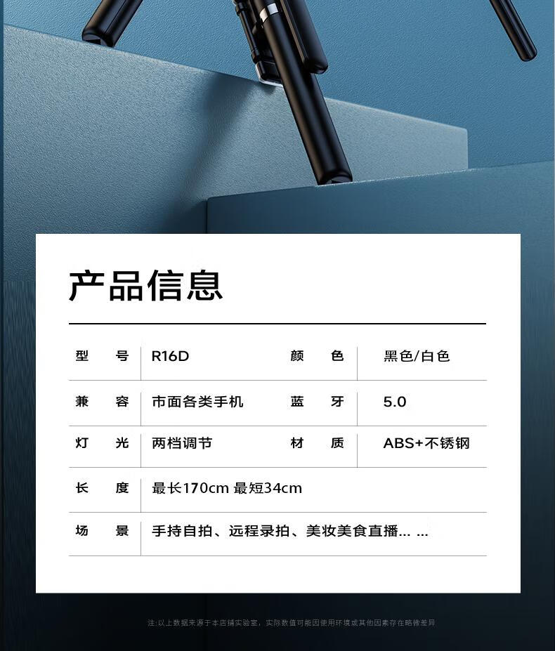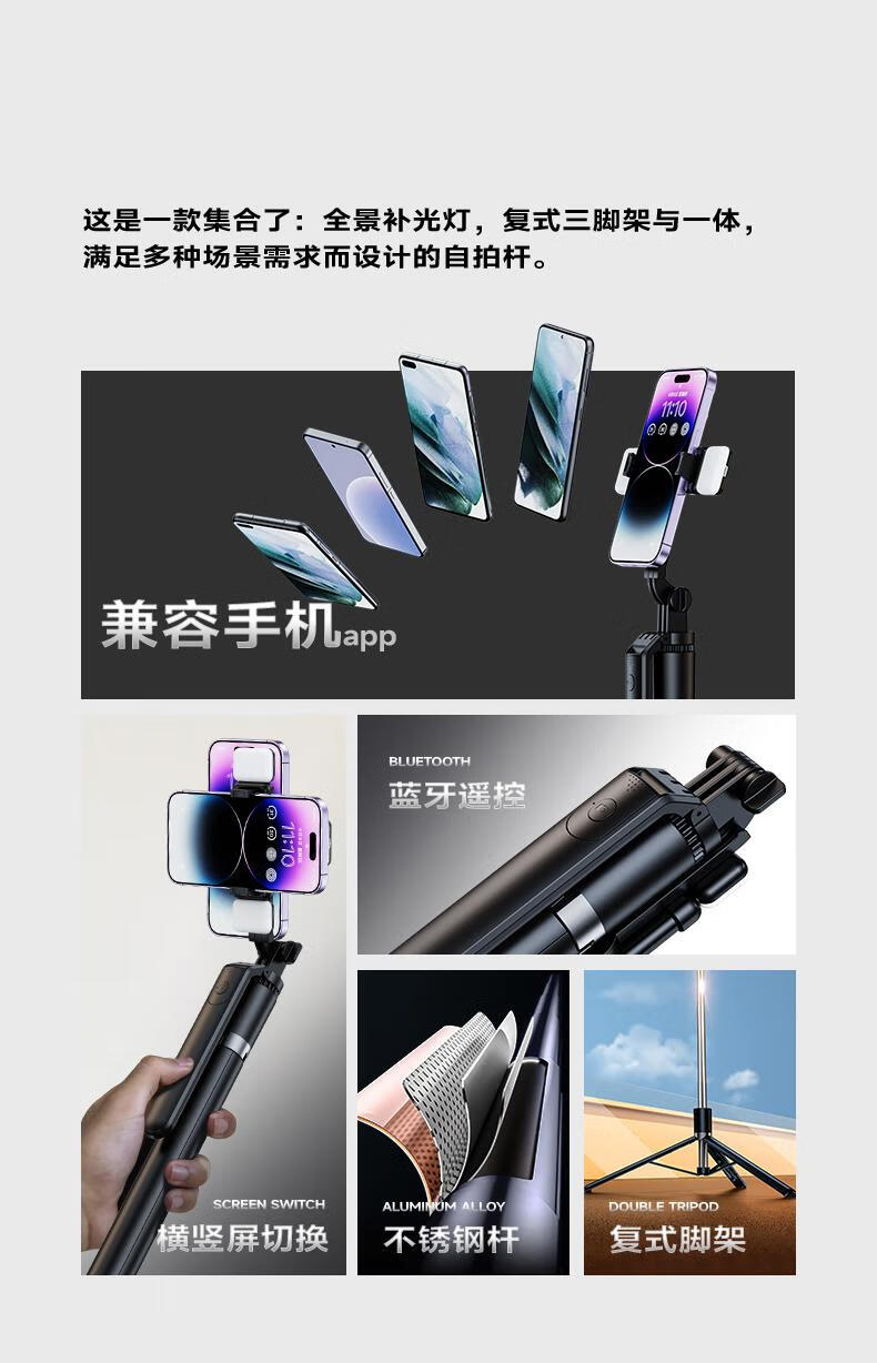 TKHE 1.7m wide-angle multi-function rotating selfie stick integrated anti-shake Bluetooth travel photo live broadcast mobile phone holder R16-1.7m with rocker arm black