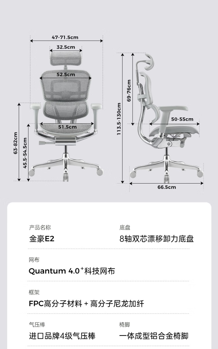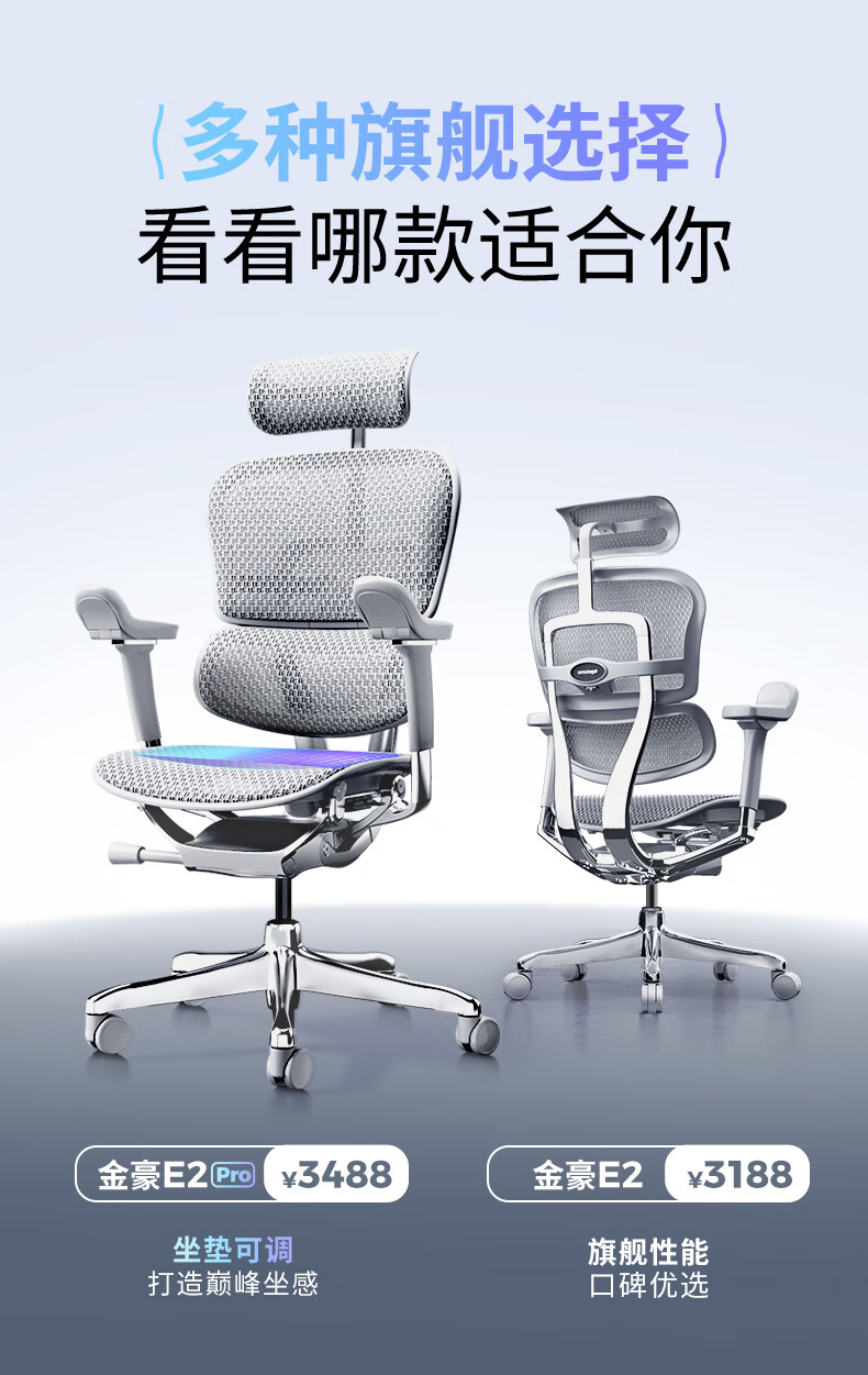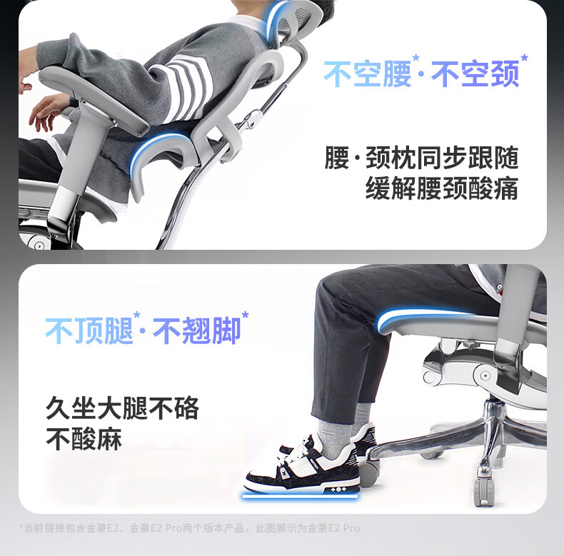 Ergonor Jinhao E2/Jinhao E2 Pro high-end ergonomic chair, computer chair, office chair, home gaming chair, Jinhao E2 Pro silver white (Yunsen Technology Seat Cushion) + Lying Shubao, whole chair delivery, door-to-door delivery