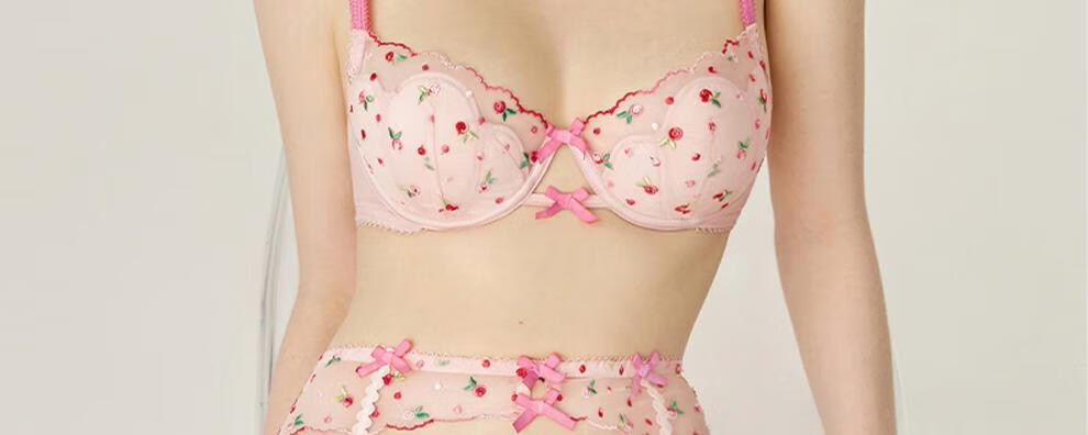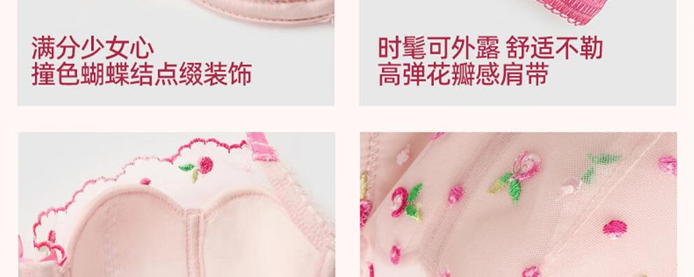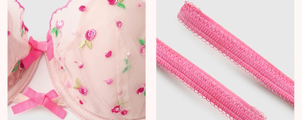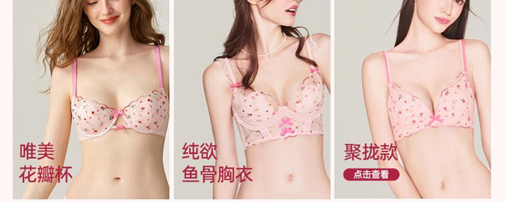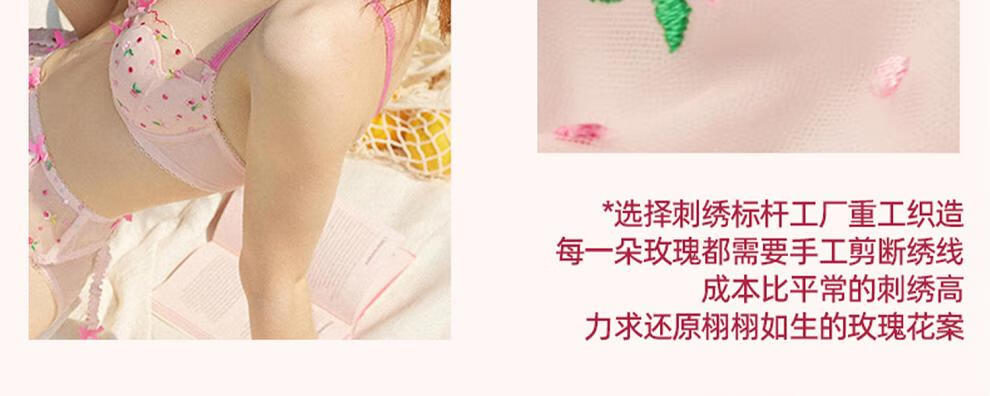 Miss Curiosity Sexy Small Breast Underwear Women's French Lace Pure Lust Bra Set Big Breast Showing Small Summer Thin Pink Pink Rose Set Style 1 70A