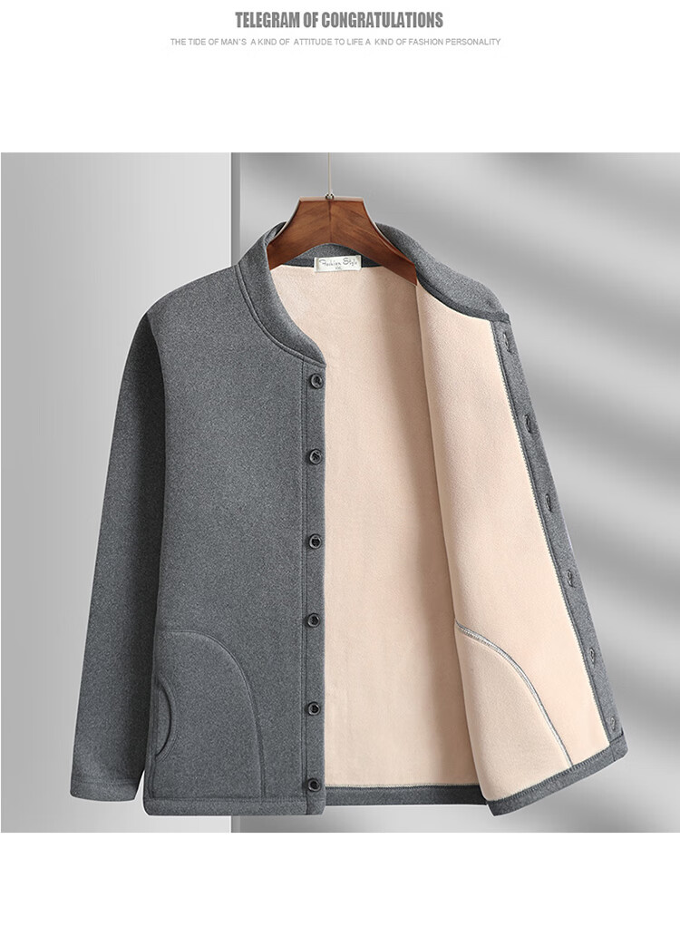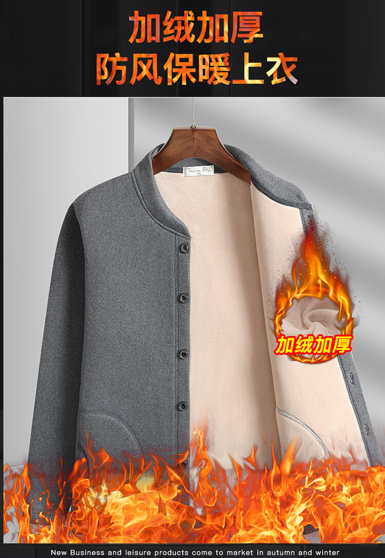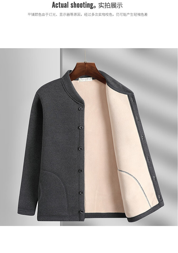 Winter cardigan thermal underwear for middle-aged and elderly fathers, thickened and velvet, men's loose-fitting warm tops for the elderly, dark gray 908 2XL /180 recommended 115-130 Jin Jin equals 0.5 kg