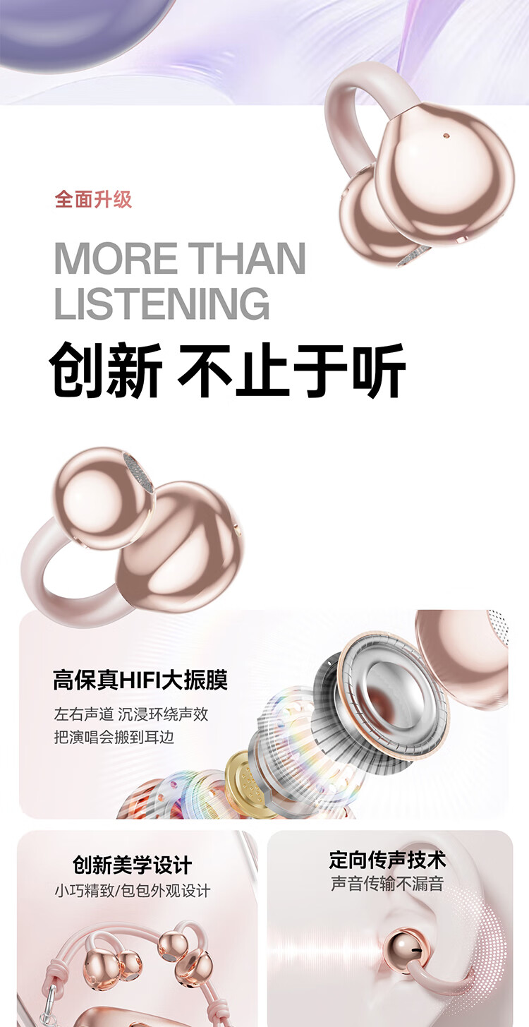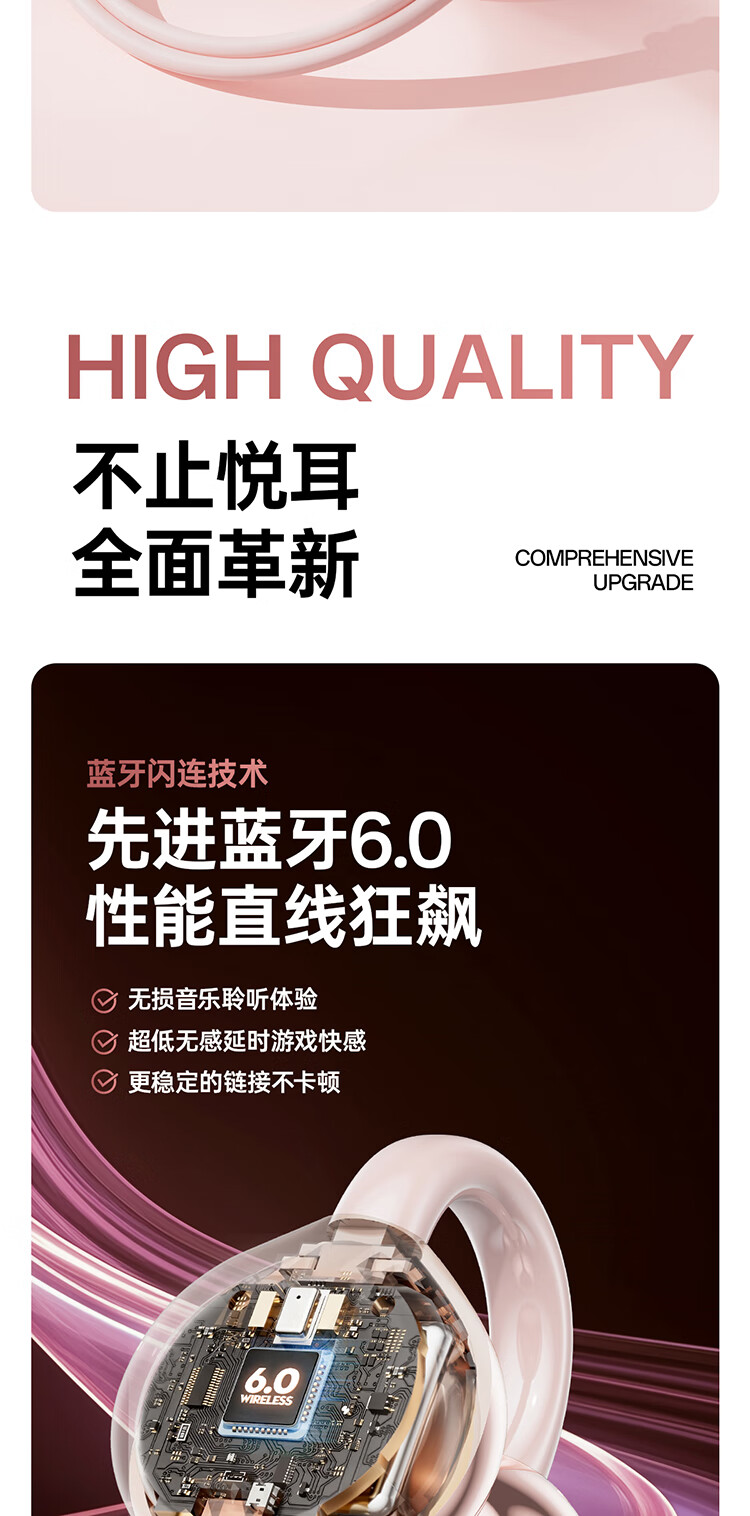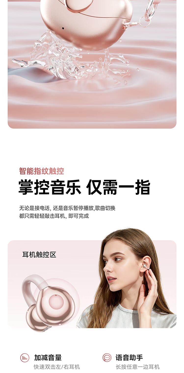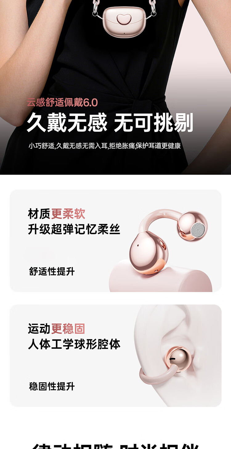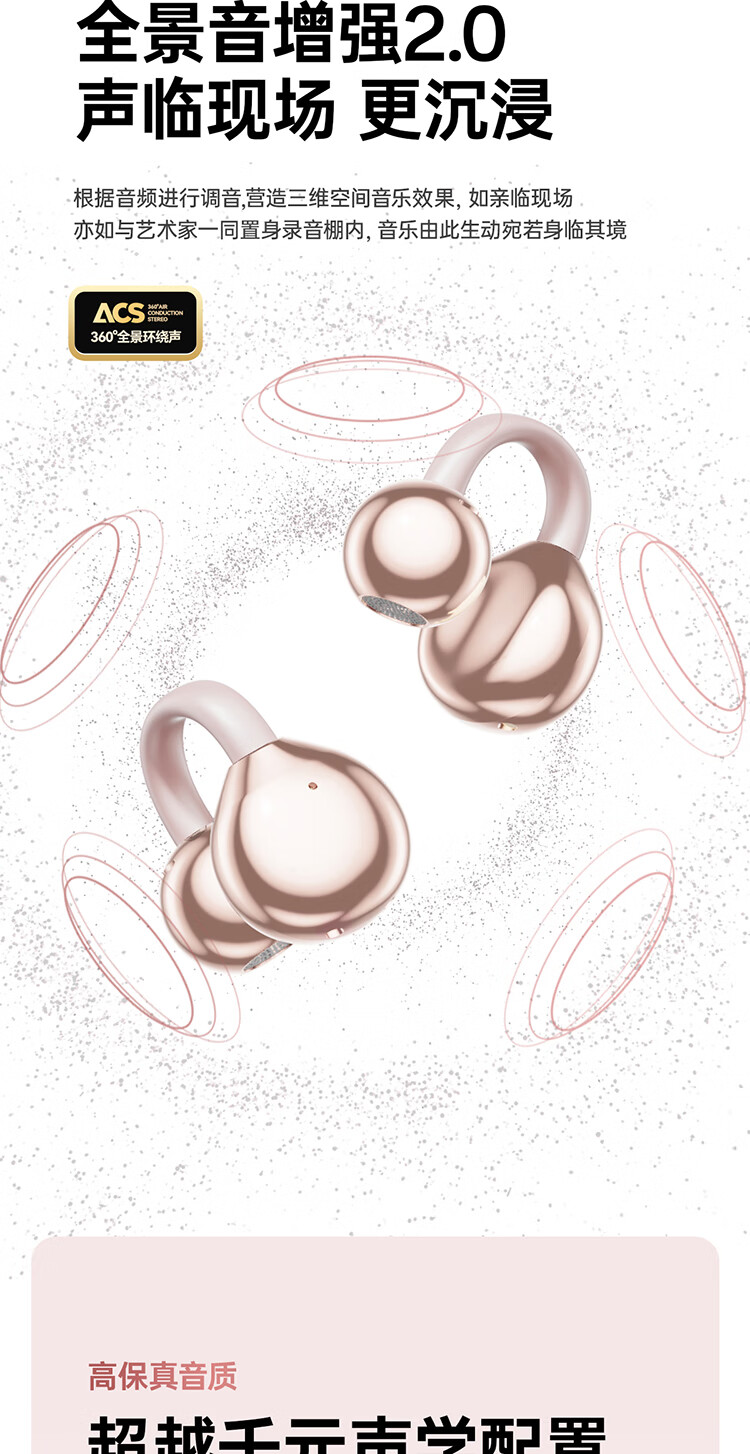 Cheng Ruida Bluetooth headset latest model clip-on headset gold list No. 1 Huaqiang North list top ten Berlin sound German bone conduction sports running noise reduction long battery life Bluetooth headset M106 rose gold丨upgraded dual-core chip丨stereo surround sound adaption Apple Huawei Xiaomi oppo vivo