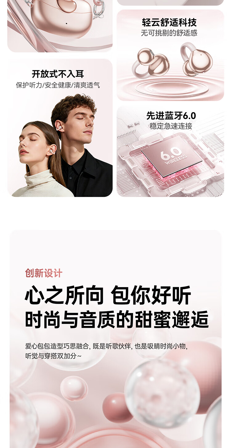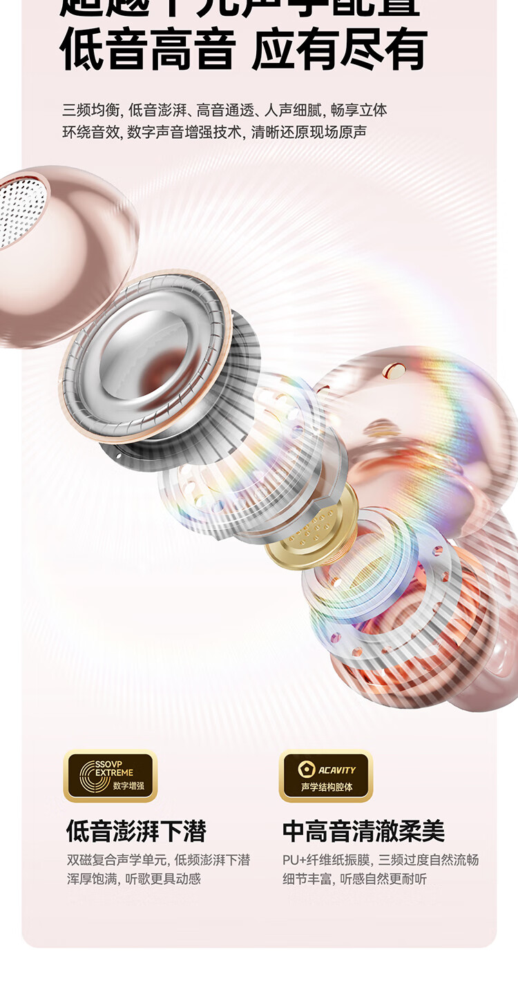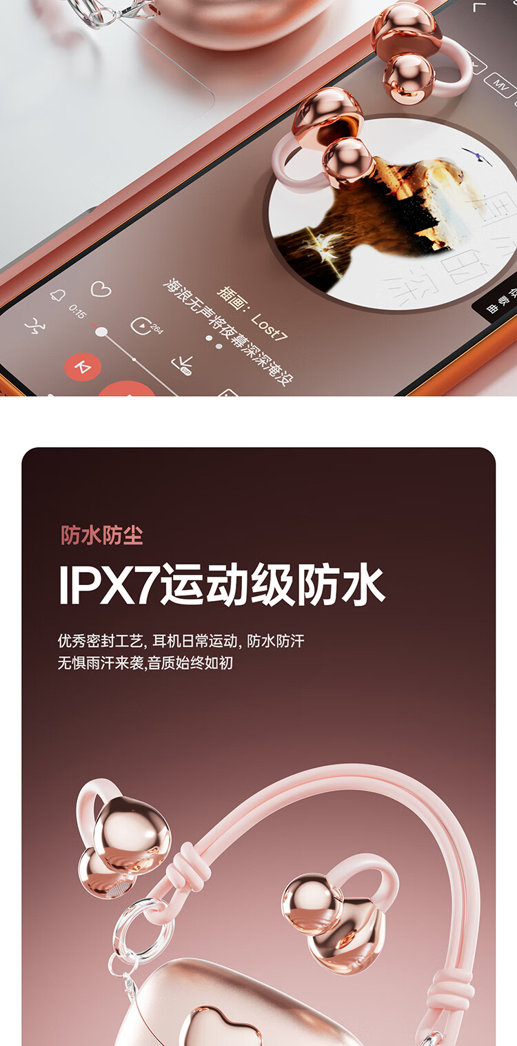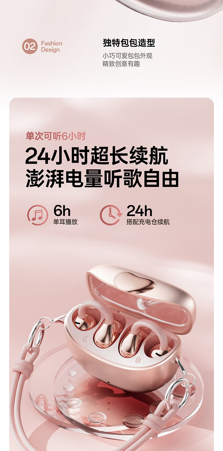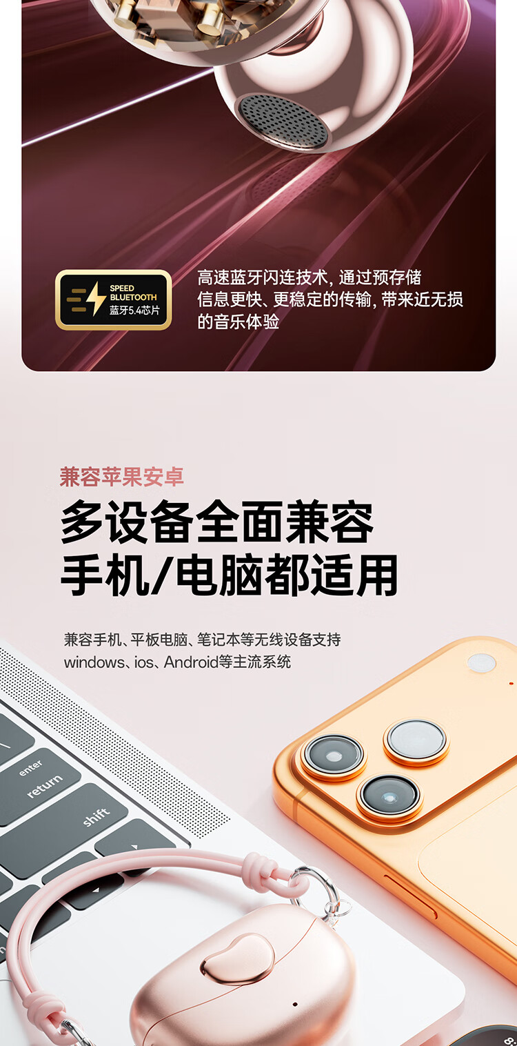 Cheng Ruida Bluetooth headset latest model clip-on headset gold list No. 1 Huaqiang North list top ten Berlin sound German bone conduction sports running noise reduction long battery life Bluetooth headset M106 rose gold丨upgraded dual-core chip丨stereo surround sound adaption Apple Huawei Xiaomi oppo vivo