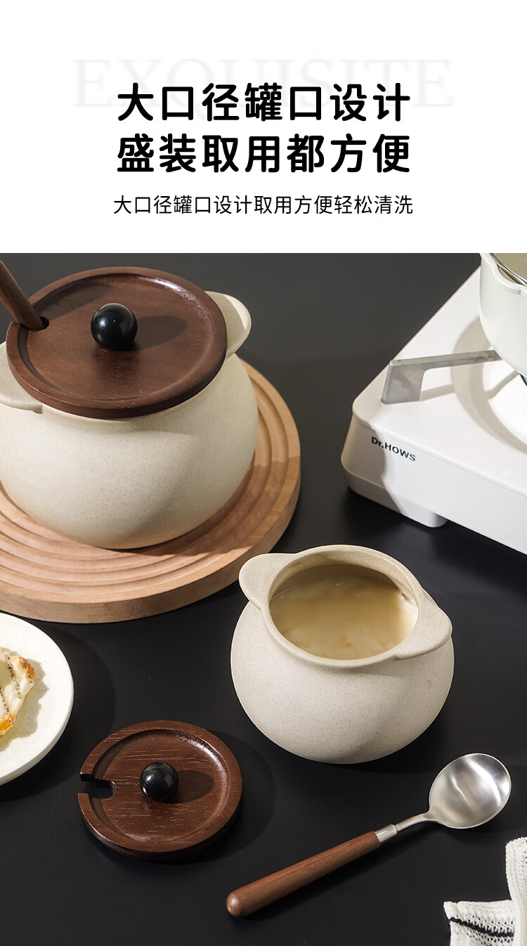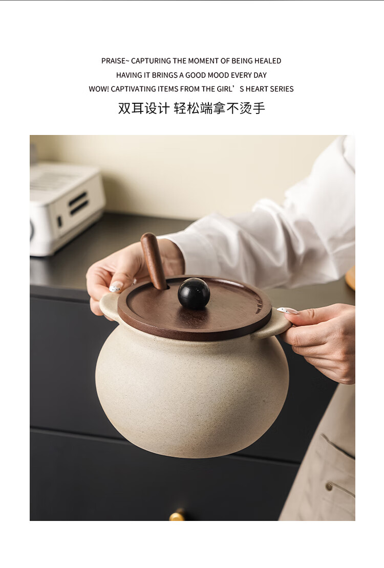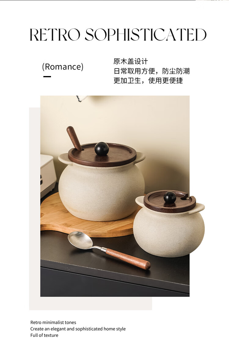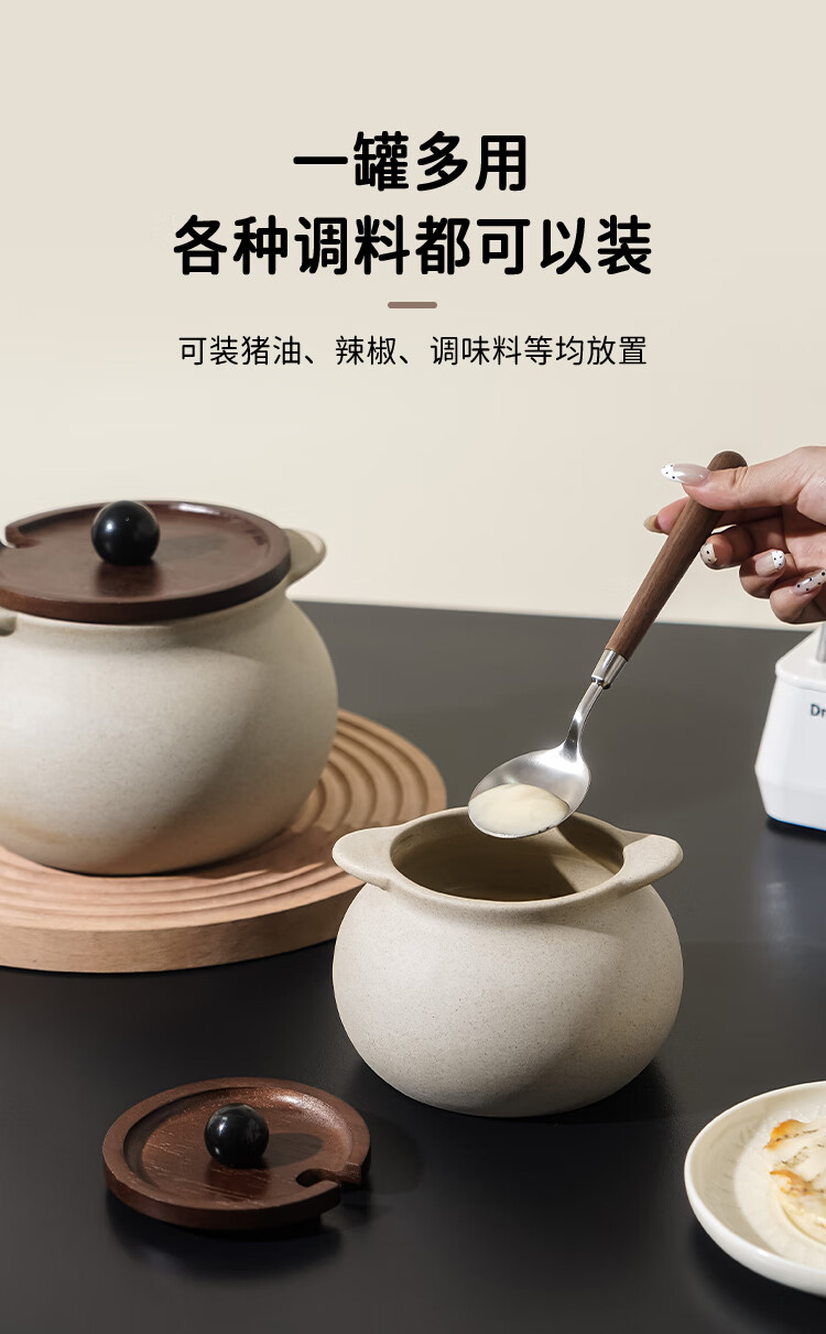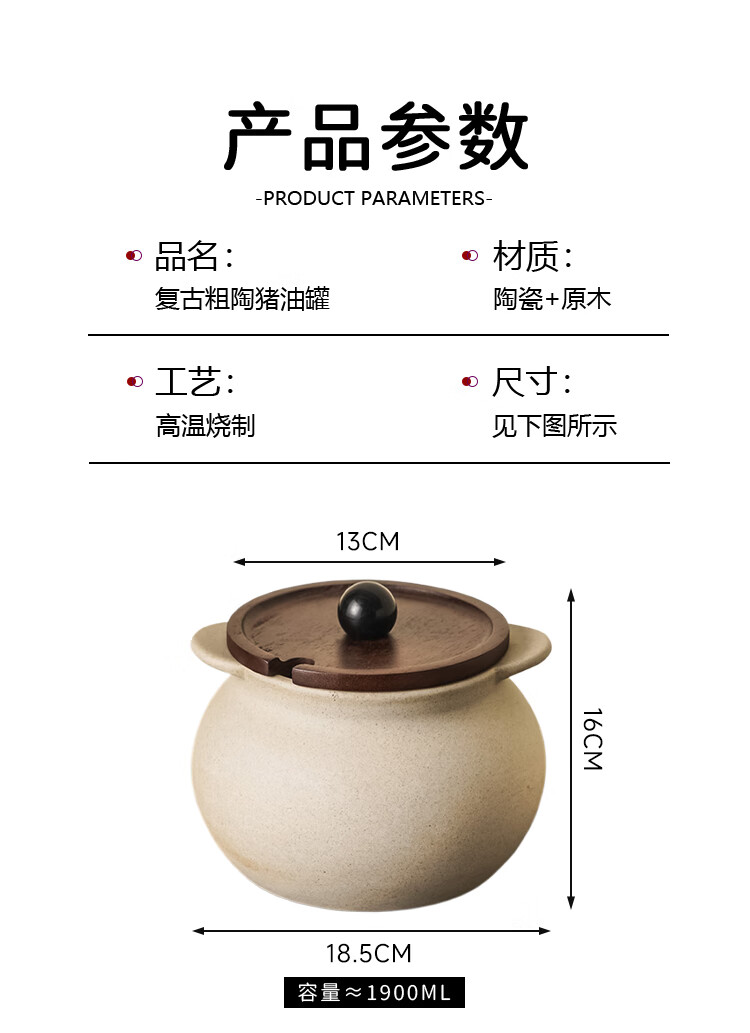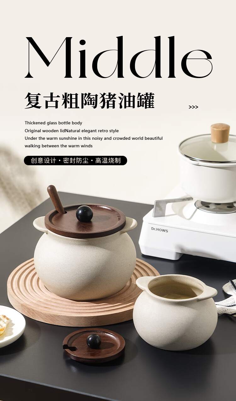 GPHF Japanese light luxury coarse pottery lard tank household high-looking kitchen special large-capacity chili oil tank oil tank meat oil tank wooden lid lard tank - small with spoon