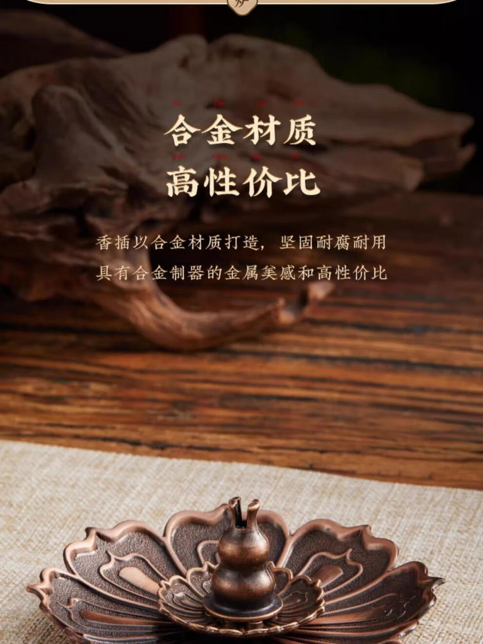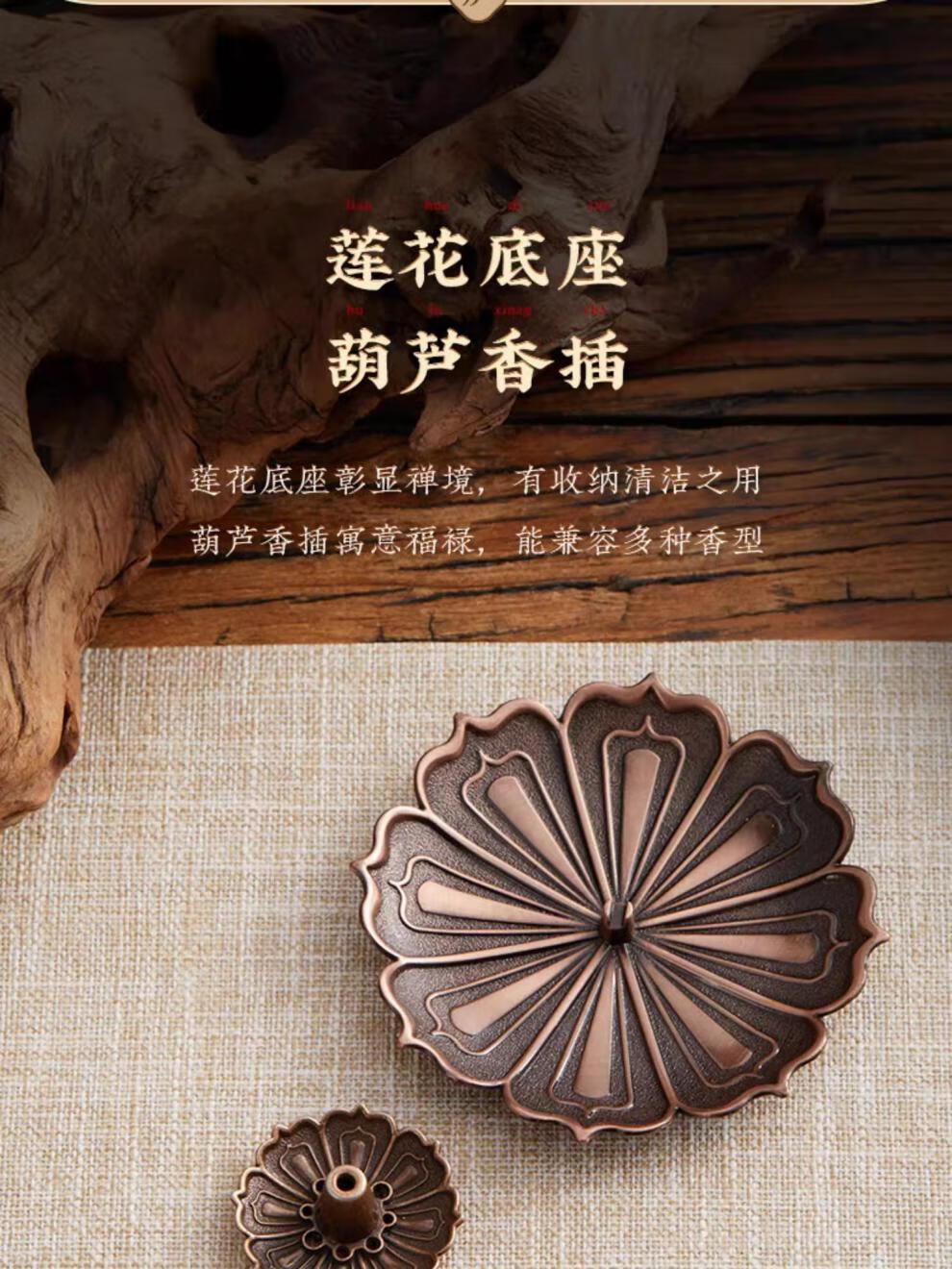 Fat Donglai's same incense plate, incense holder, incense base, lotus incense holder, imitation antique copper incense holder, incense burner, home indoor, lotus three treasure incense holder, medium size, multi-purpose in one furnace