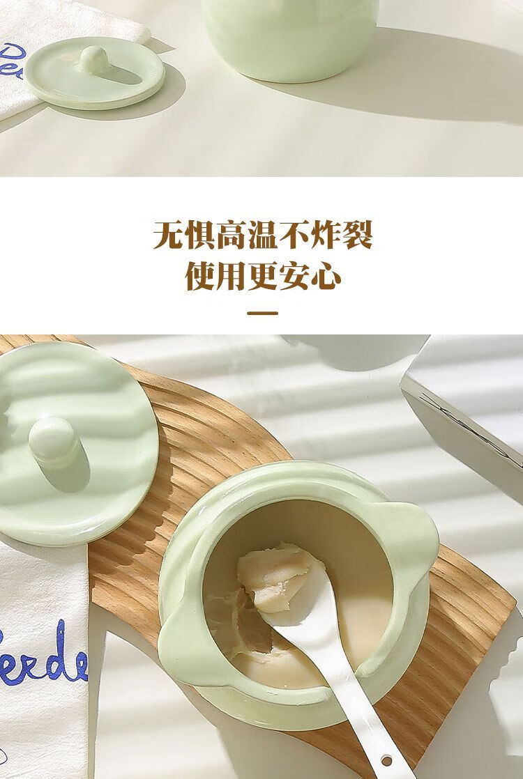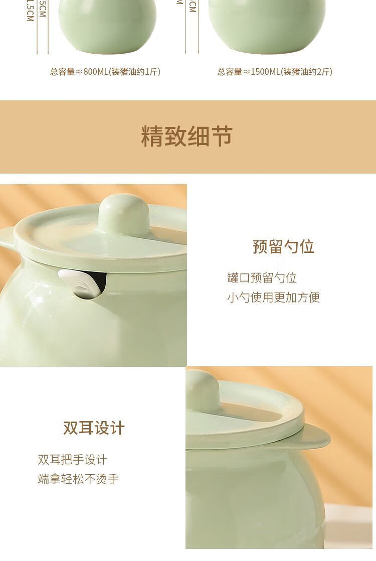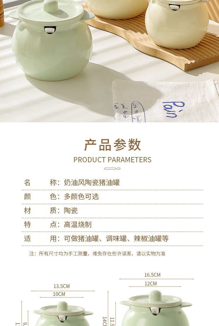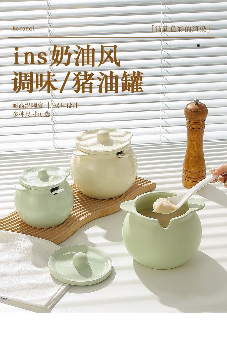Qinkai Ceramics High Temperature Resistant Spicy Jar Kitchen Household Special Oil Storage Tank Lard Jar with Cover Spicy Jar Seasoning Jar 1380 Degree High Temperature Firing Will Not Explode - Large Size 1500ML Creamy Yellow + Cover + Spoon + Filter