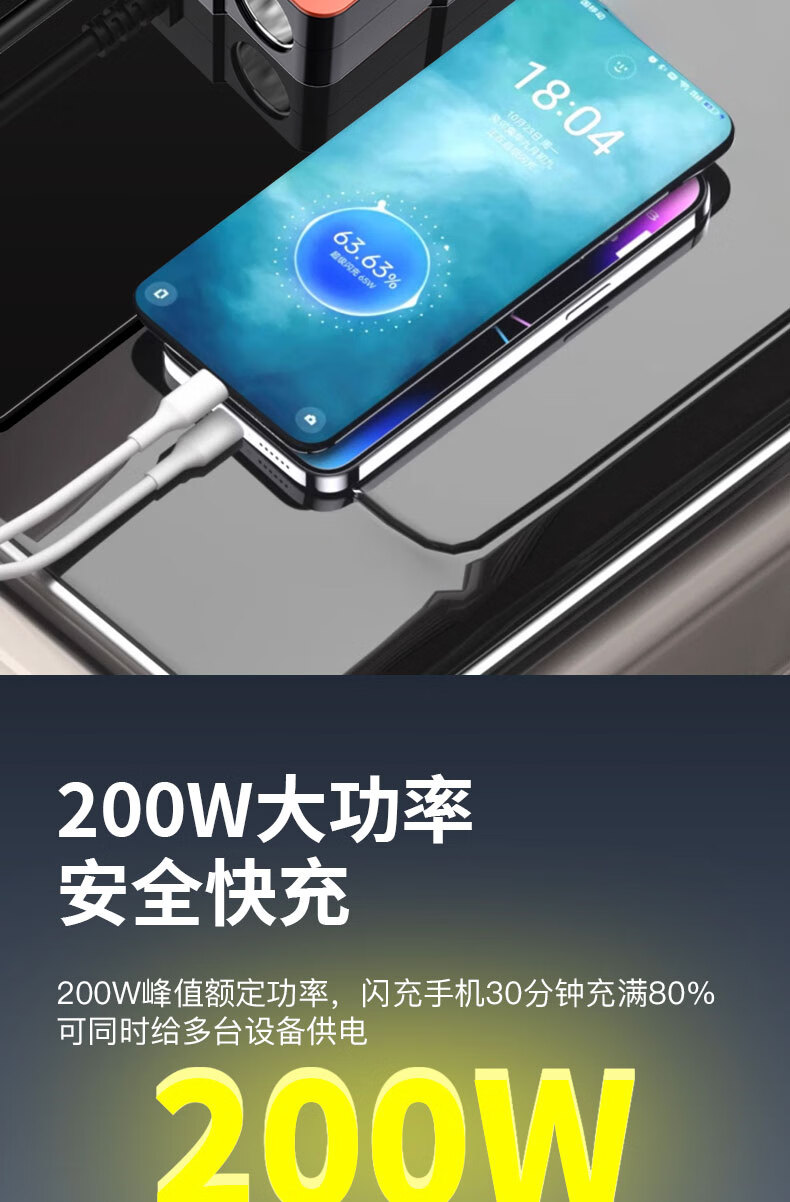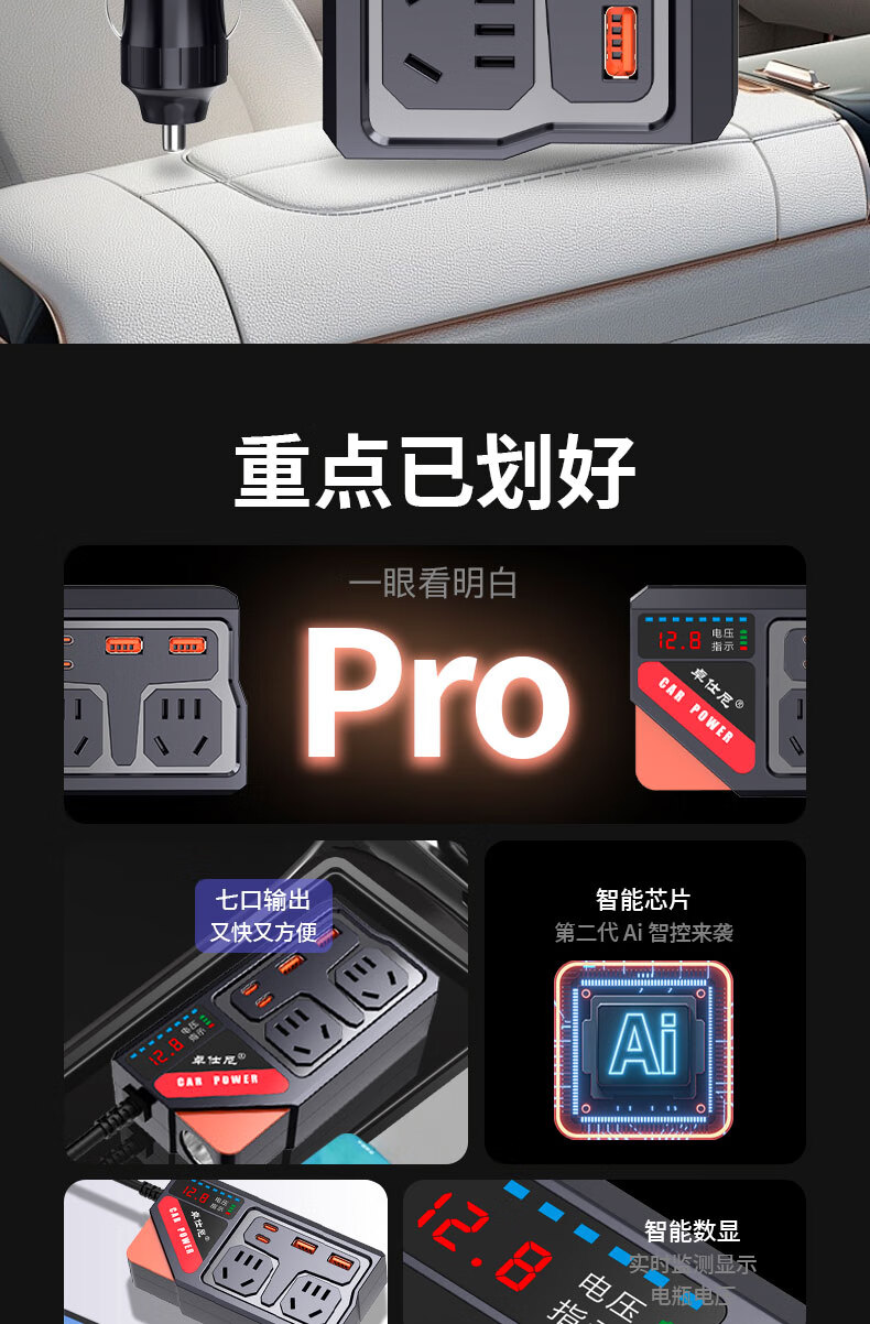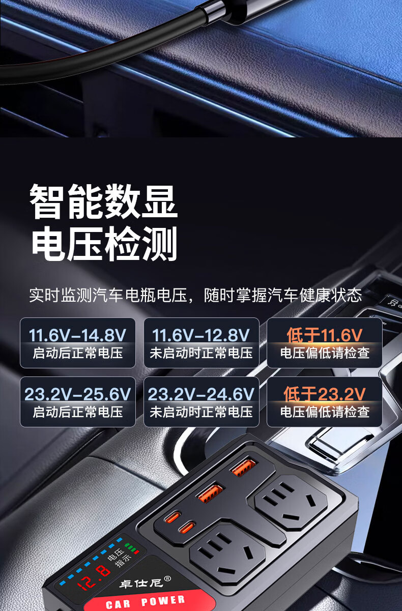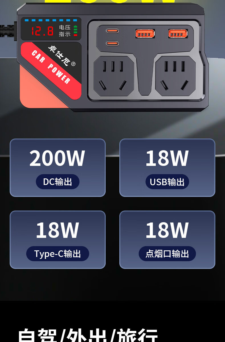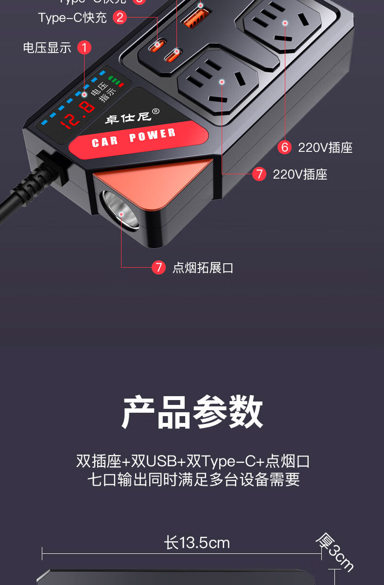 Car charger 12V24V to 220V multifunctional inverter cigarette lighter super fast charging source conversion socket 200W high power countless displays porous fast charging + one to three data lines continuous output