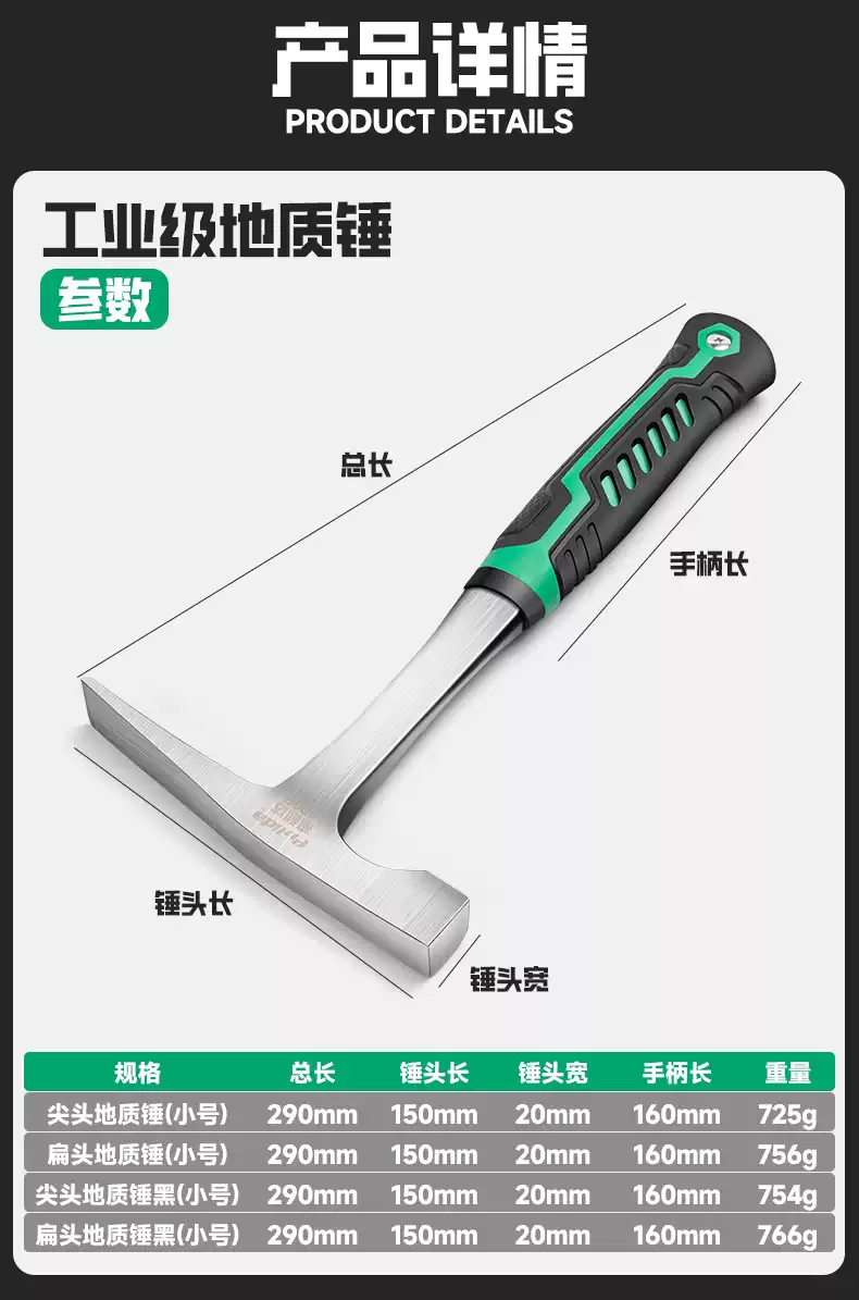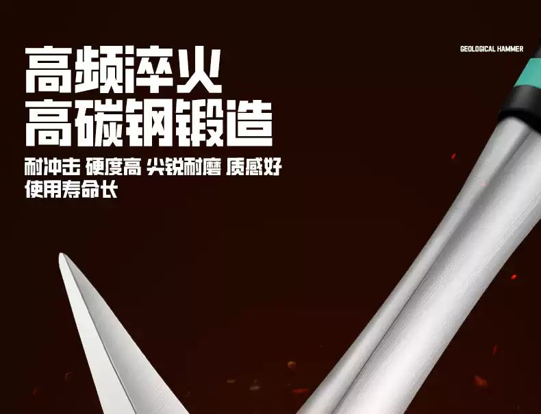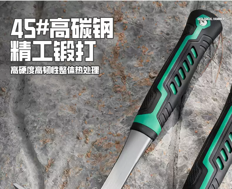 Zhong Zhanggui geological exploration hammer quarrying miner survey hammer small mountain climbing adventure escape pointed flat head flat pick hammer small pointed geological hammer + 8-inch hand guard steel chisel