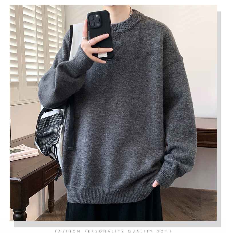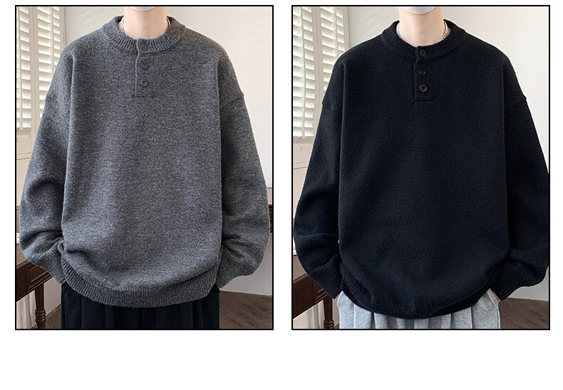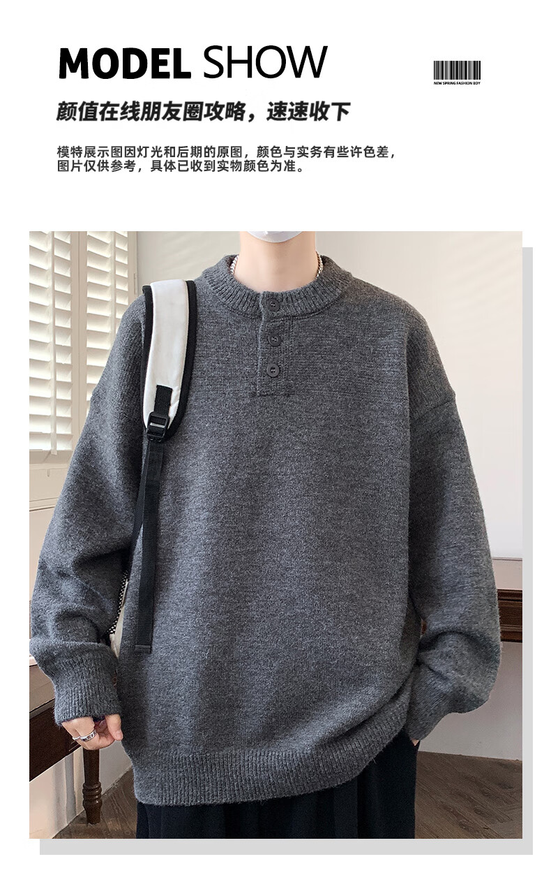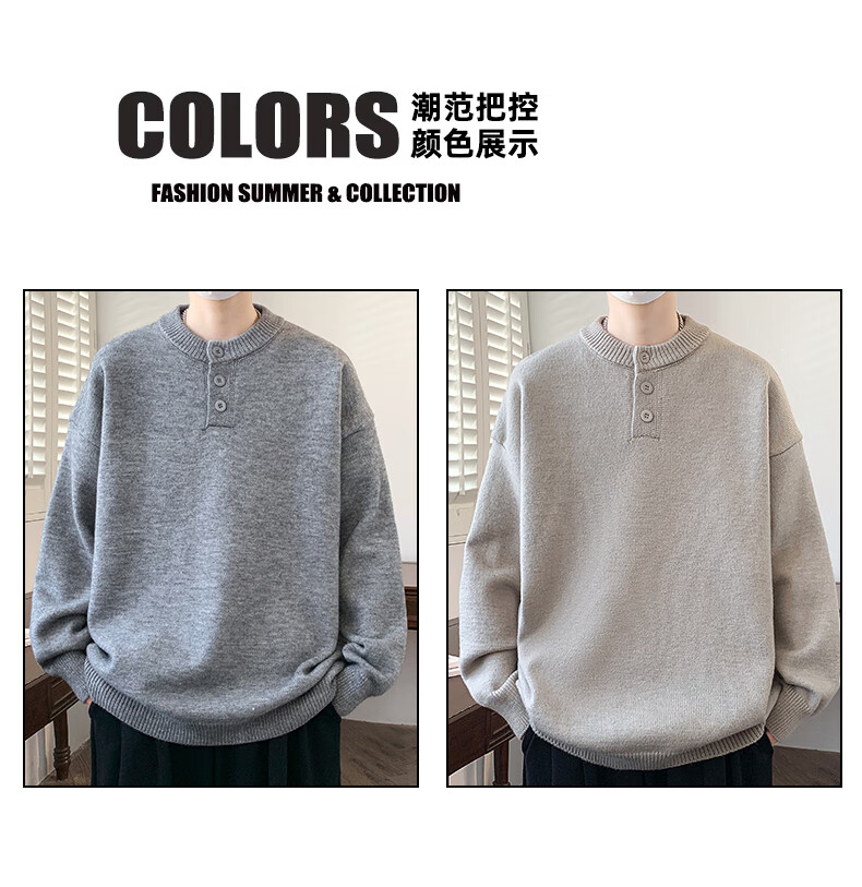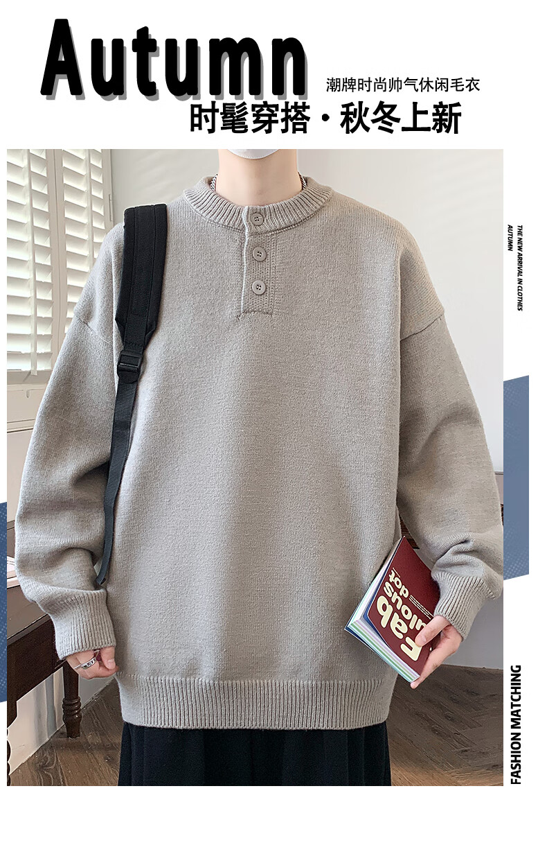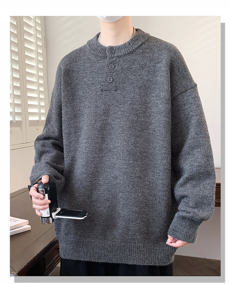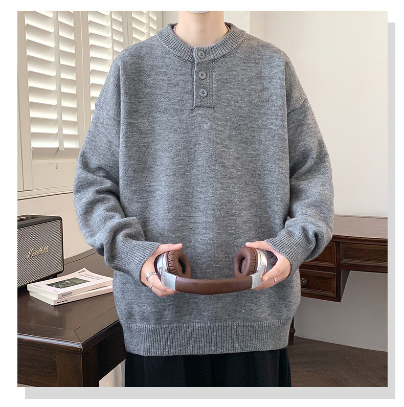 Xinghelai American trendy brand Henry collar sweater autumn and winter for men and women solid color lazy style sweater cleanfit loose jacket light gray 3XL
