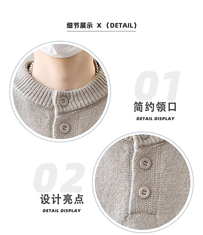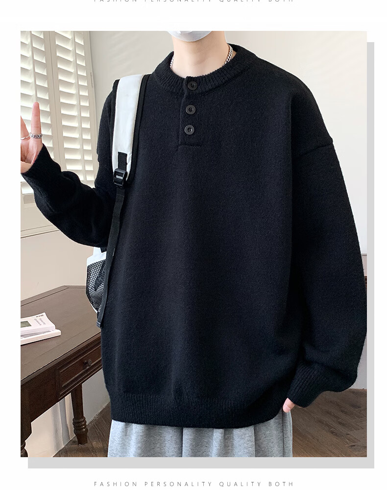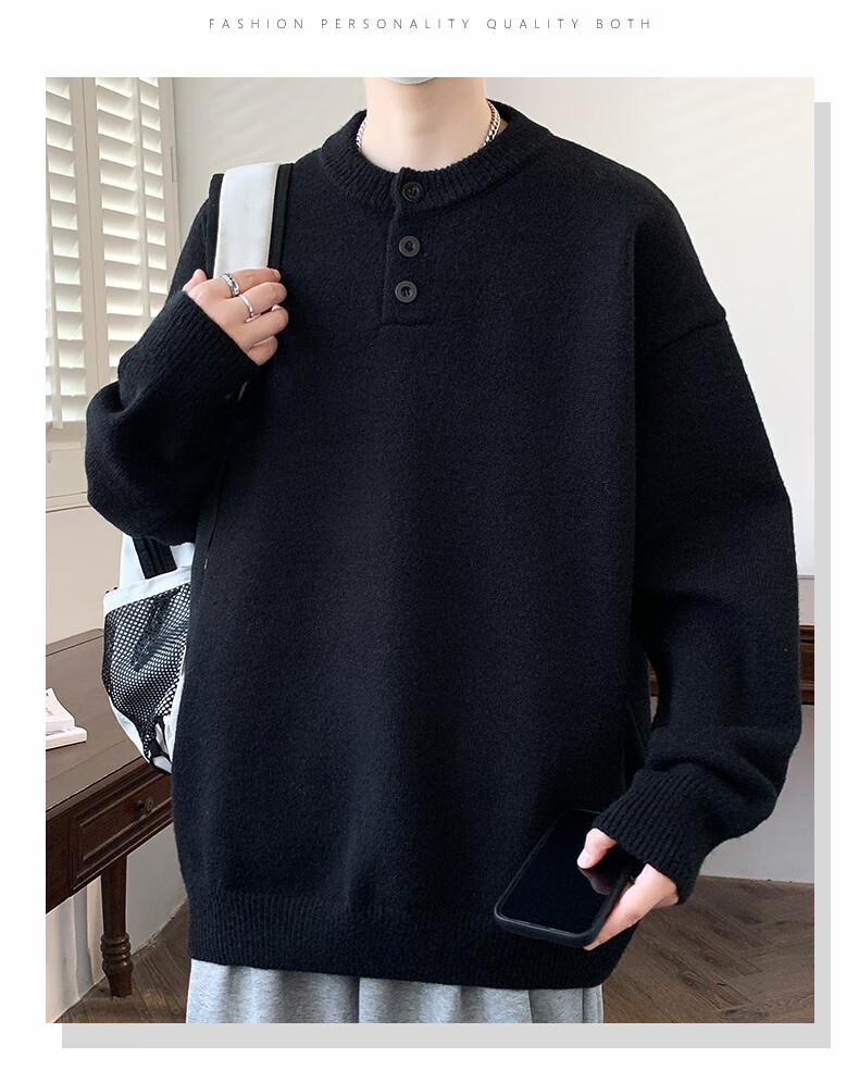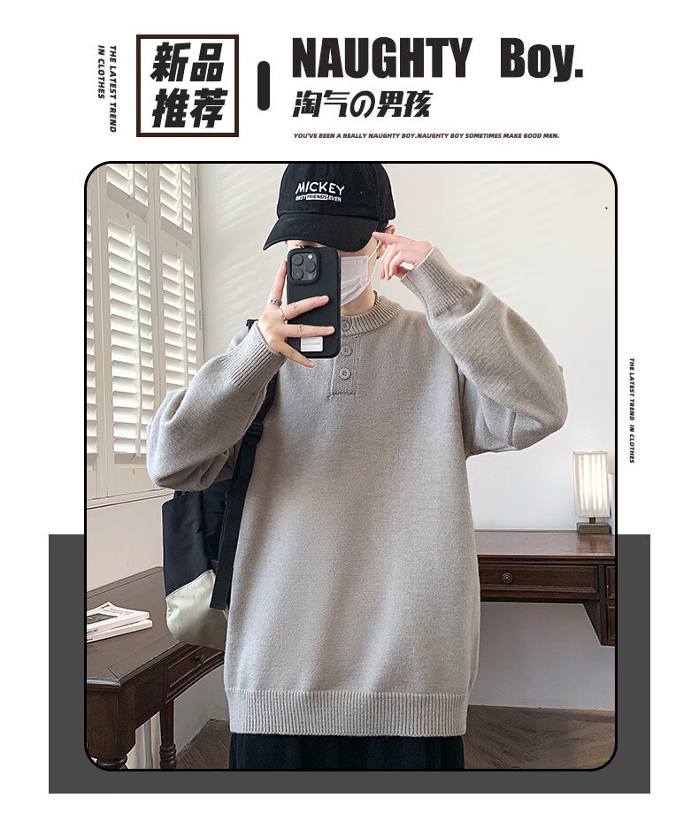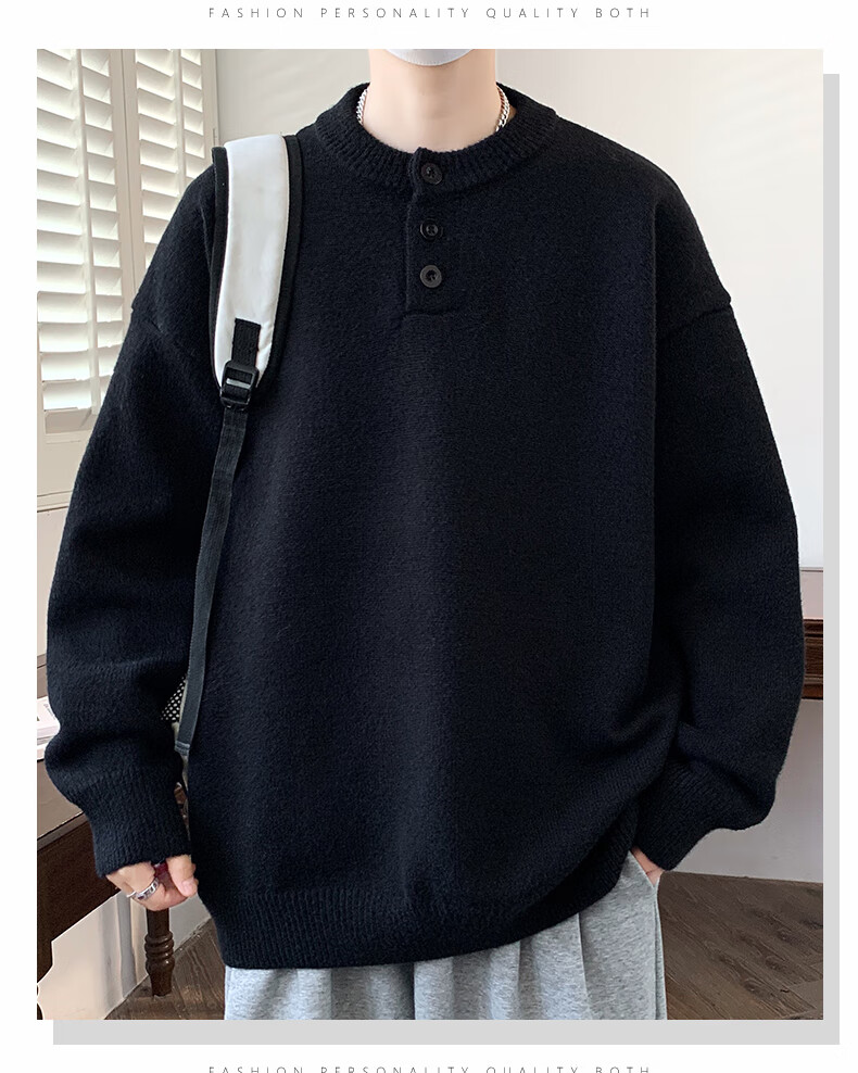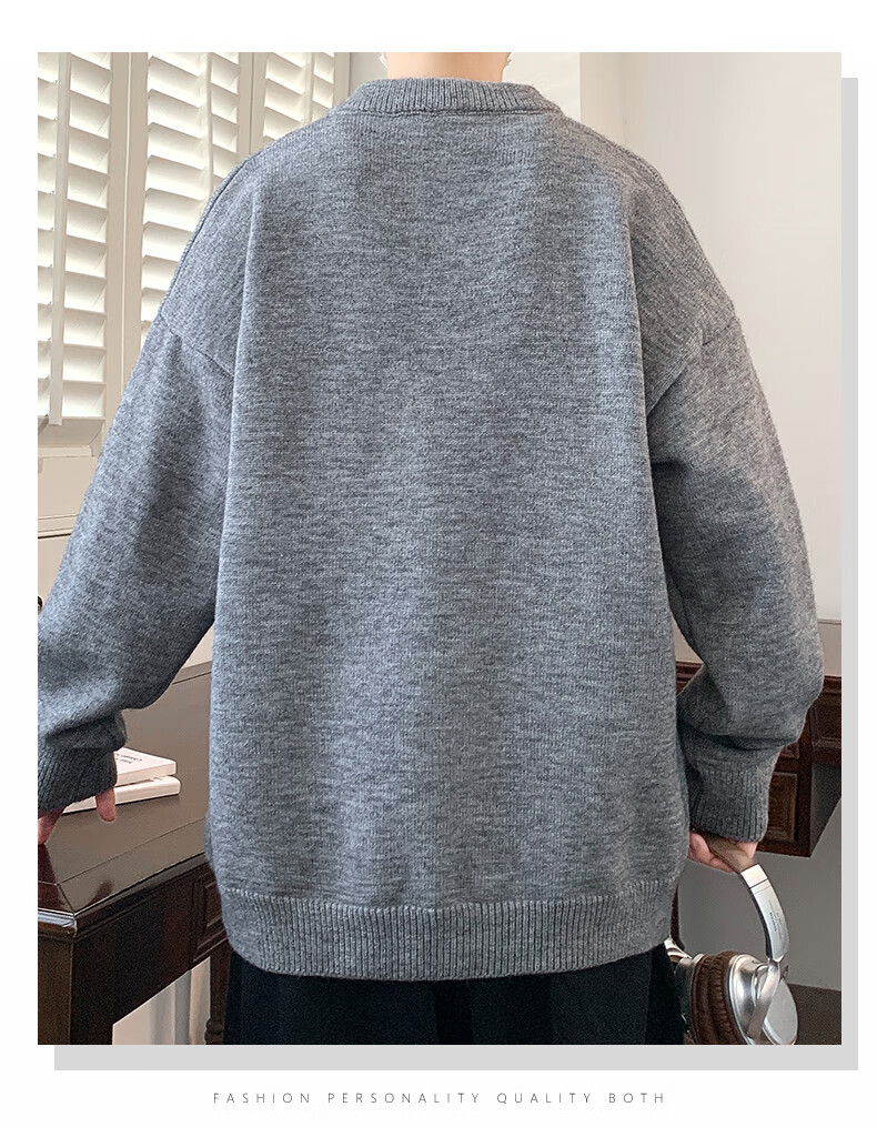 Xinghelai American trendy brand Henry collar sweater autumn and winter for men and women solid color lazy style sweater cleanfit loose jacket light gray 3XL