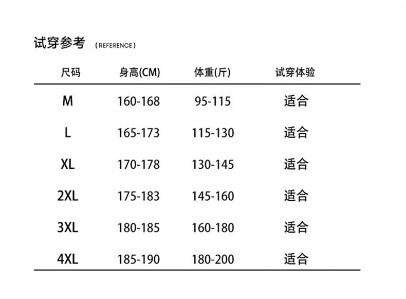 China (cm) 165 / 88-90 170 / 96-98 175 / 108-110 180 / 118-122 185 / 126-130