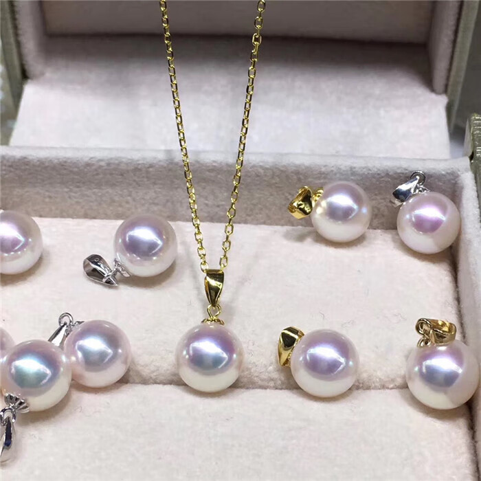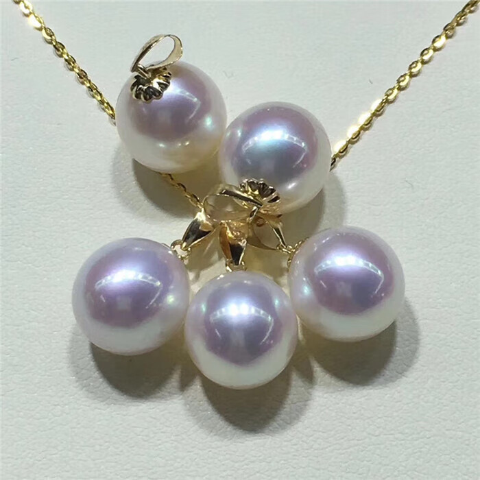 MHFDO Japan Akoya Seawater Pearl Pendant Flawless Round Mirror Light 18k Pearl Necklace Dragon's Tears Pearl 10-1 18K Gold Holder 10-11mm