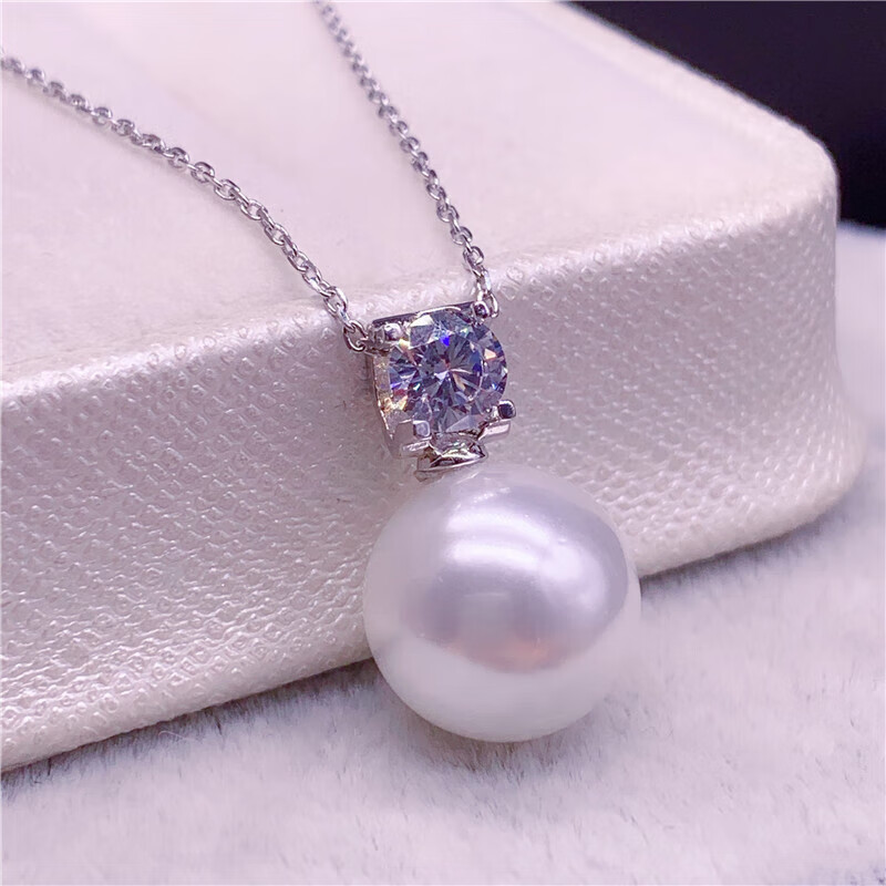 MHFDO925 sterling silver pearl pendant freshwater pearl powder pendant including chain perfect gift for girlfriend 12-13mm white pearl silver drag pendant 10-11mm