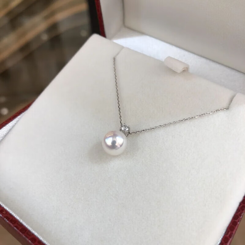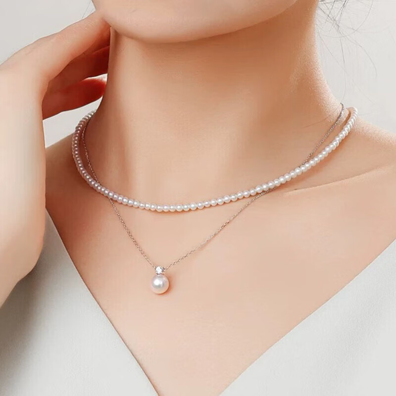 MHFDO Princess Style Pearl Pendant S925 Silver Princess Diana Style Perfect Round Aurora Natural Freshwater Pearl Necklace for Women Stackable 8-9mm