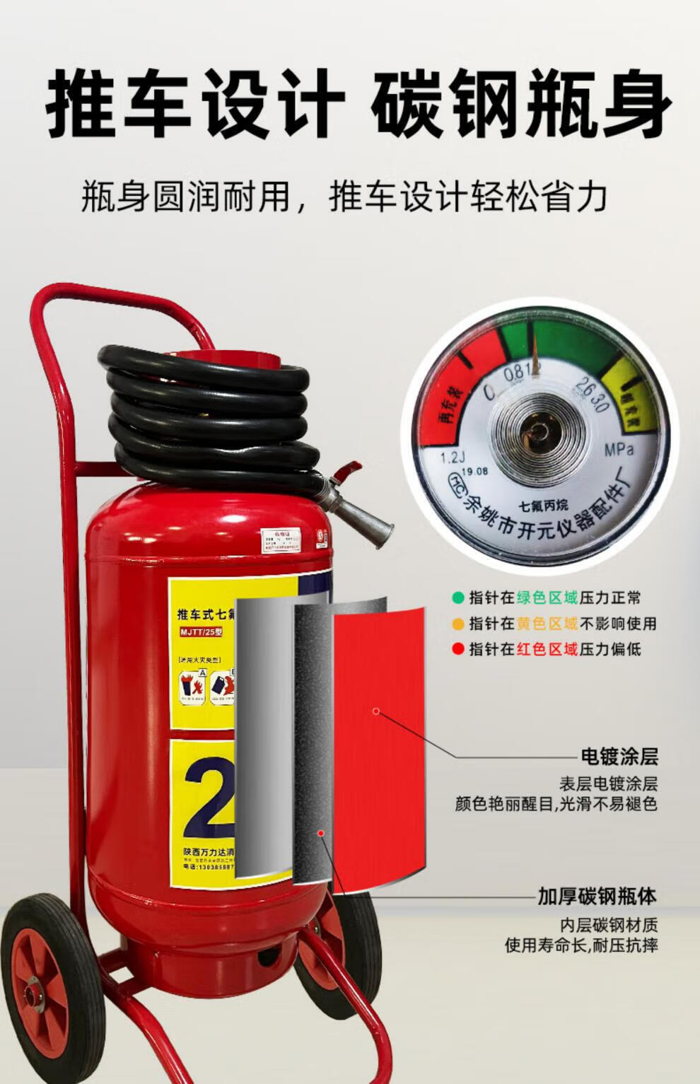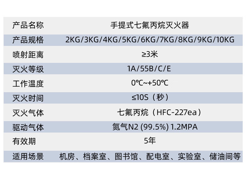 Hand trolley hanging heptafluoropropane 2/3/4/5/6/7/8/9/10KG fire certified gas fire extinguisher hanging consultation customer service