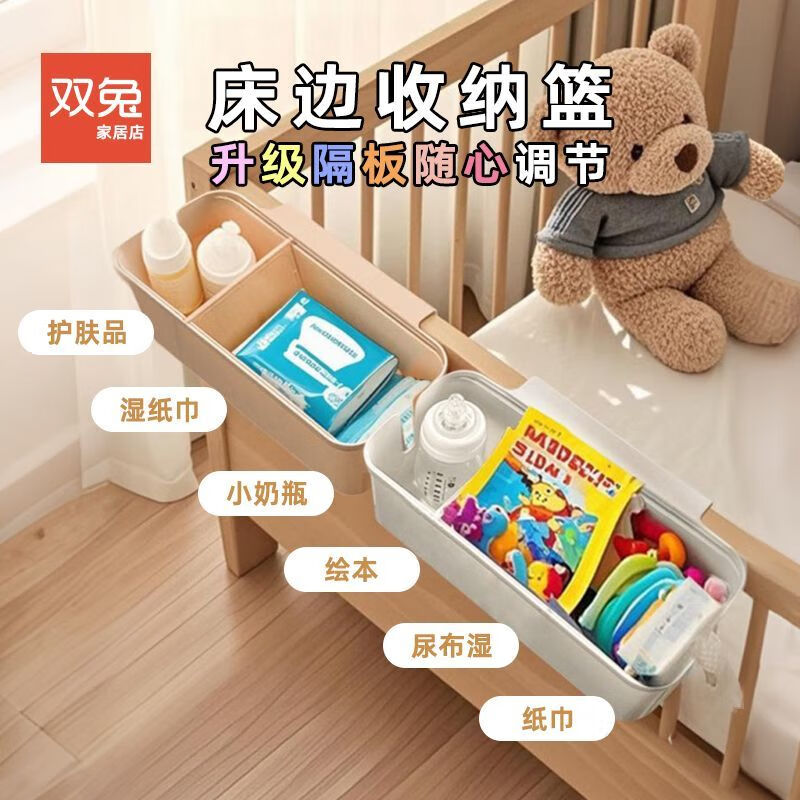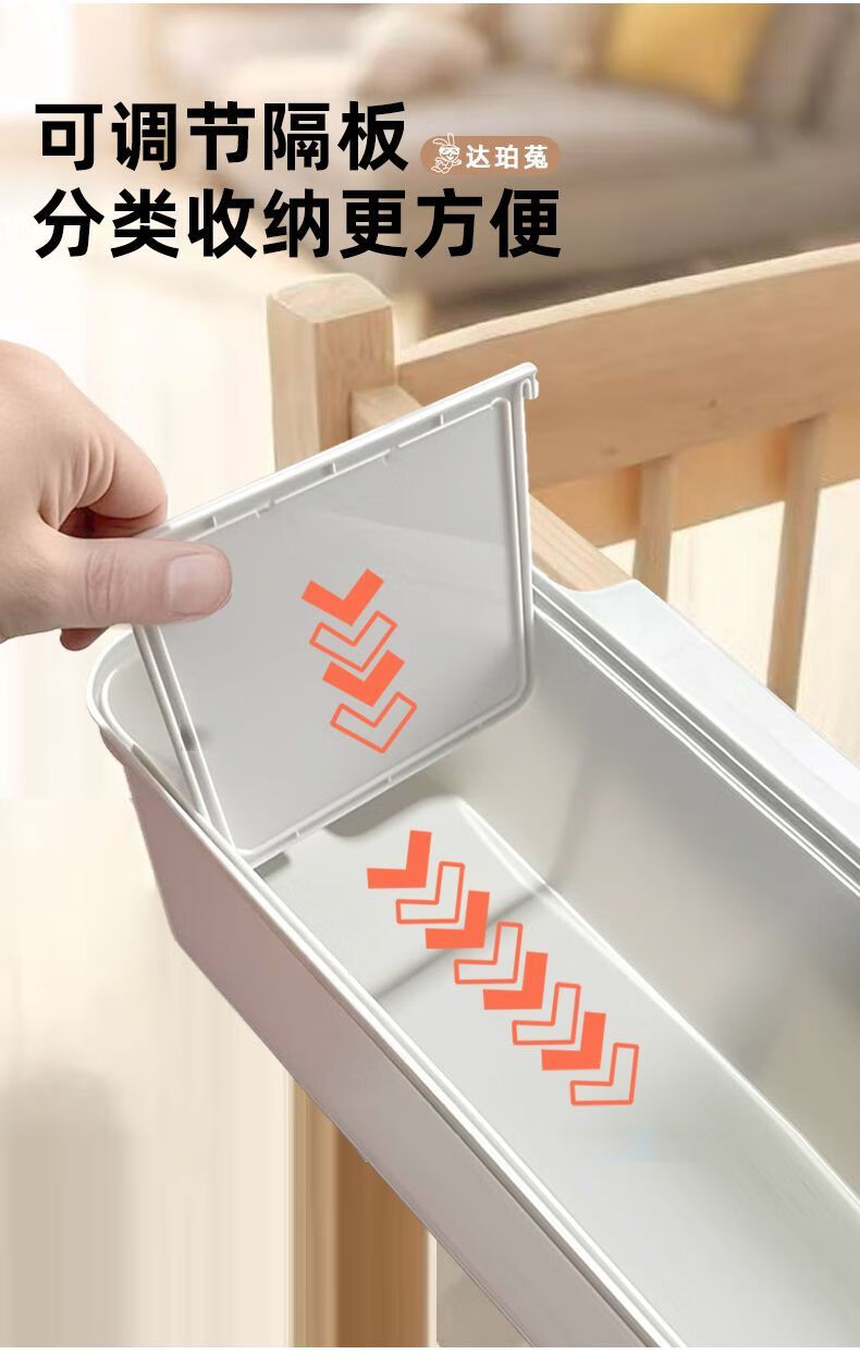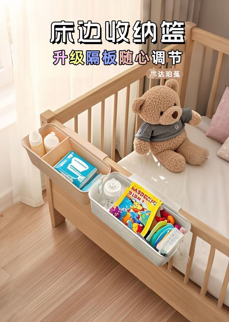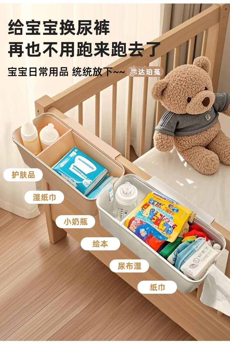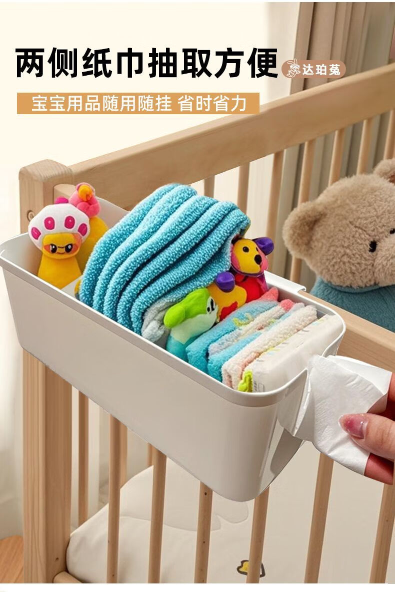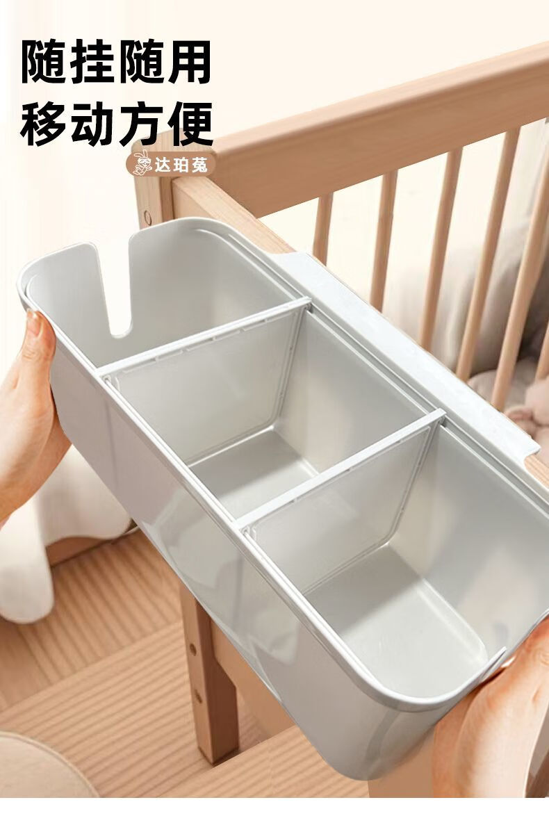 Baby bedside hanging storage hanging basket diaper storage bag bedside hanging bag bed fence divided storage box white partition adjustable