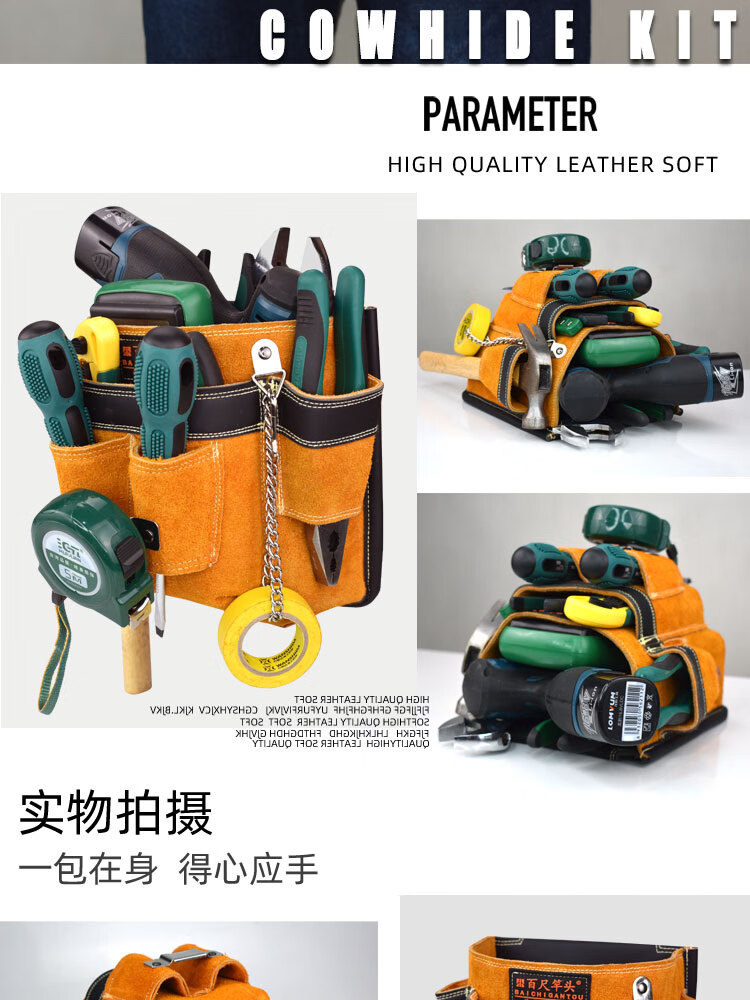 RSRDDY customized electrician's tool bag waist bag leather waist bag men's multi-functional belt electrician bag empty outlet to inside 3001 covered shoulder strap style waist and shoulder dual-use