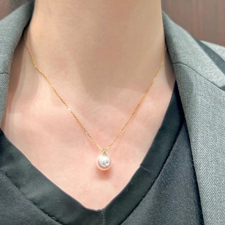 Everlasting Leaf Concubine Style Japanese Perfect Round Strong Light Akoya Pearl Pendant Necklace for Women Flawless and Versatile