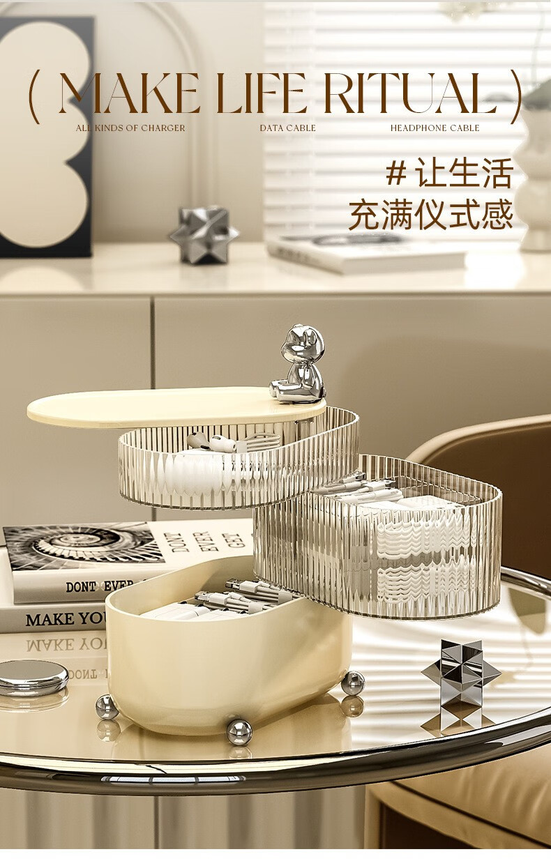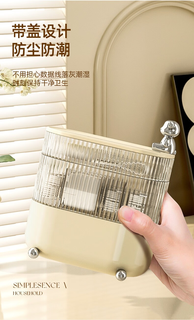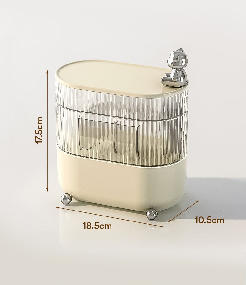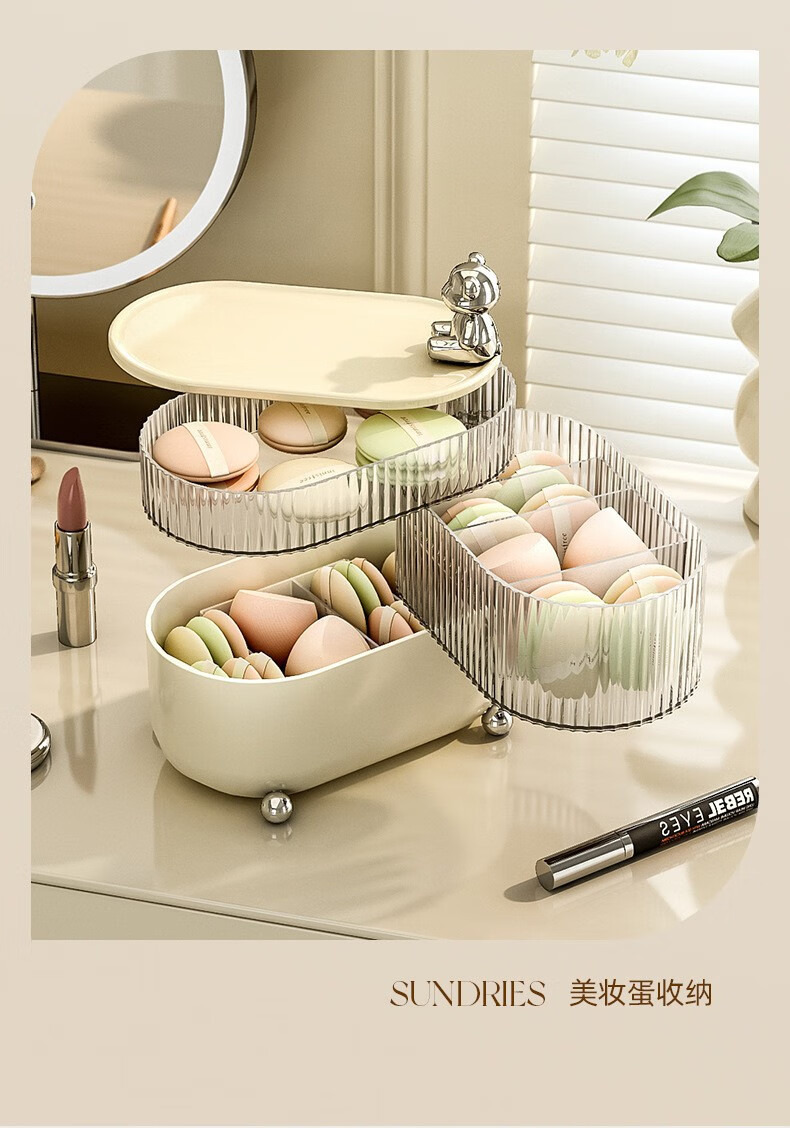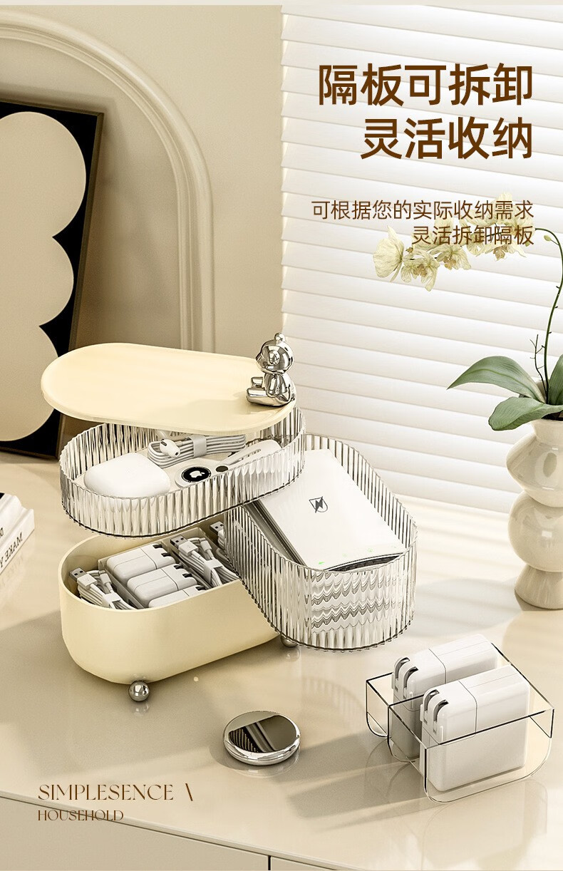 Mi Ling ins style rotating storage box for cosmetics and jewelry transparent compartment storage box desktop data line defense three layers - bear cream white