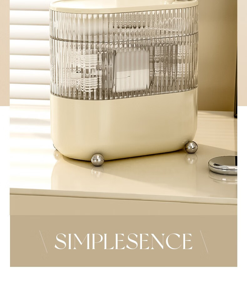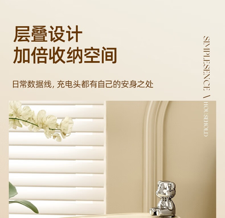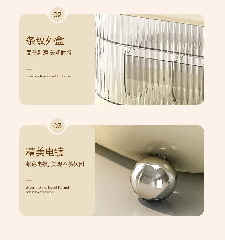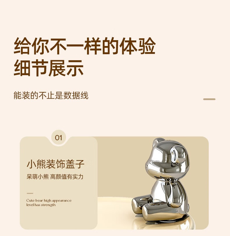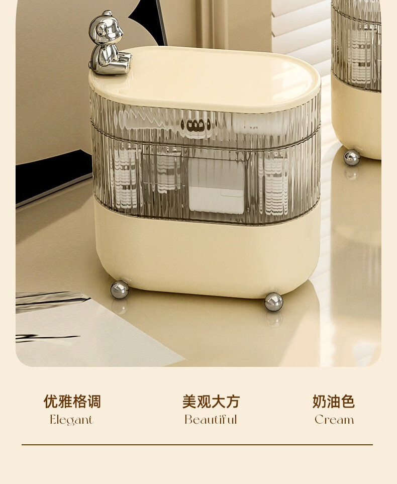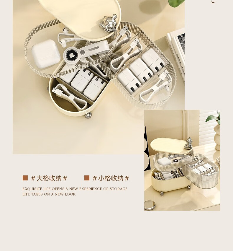 Mi Ling ins style rotating storage box for cosmetics and jewelry transparent compartment storage box desktop data line defense three layers - bear cream white