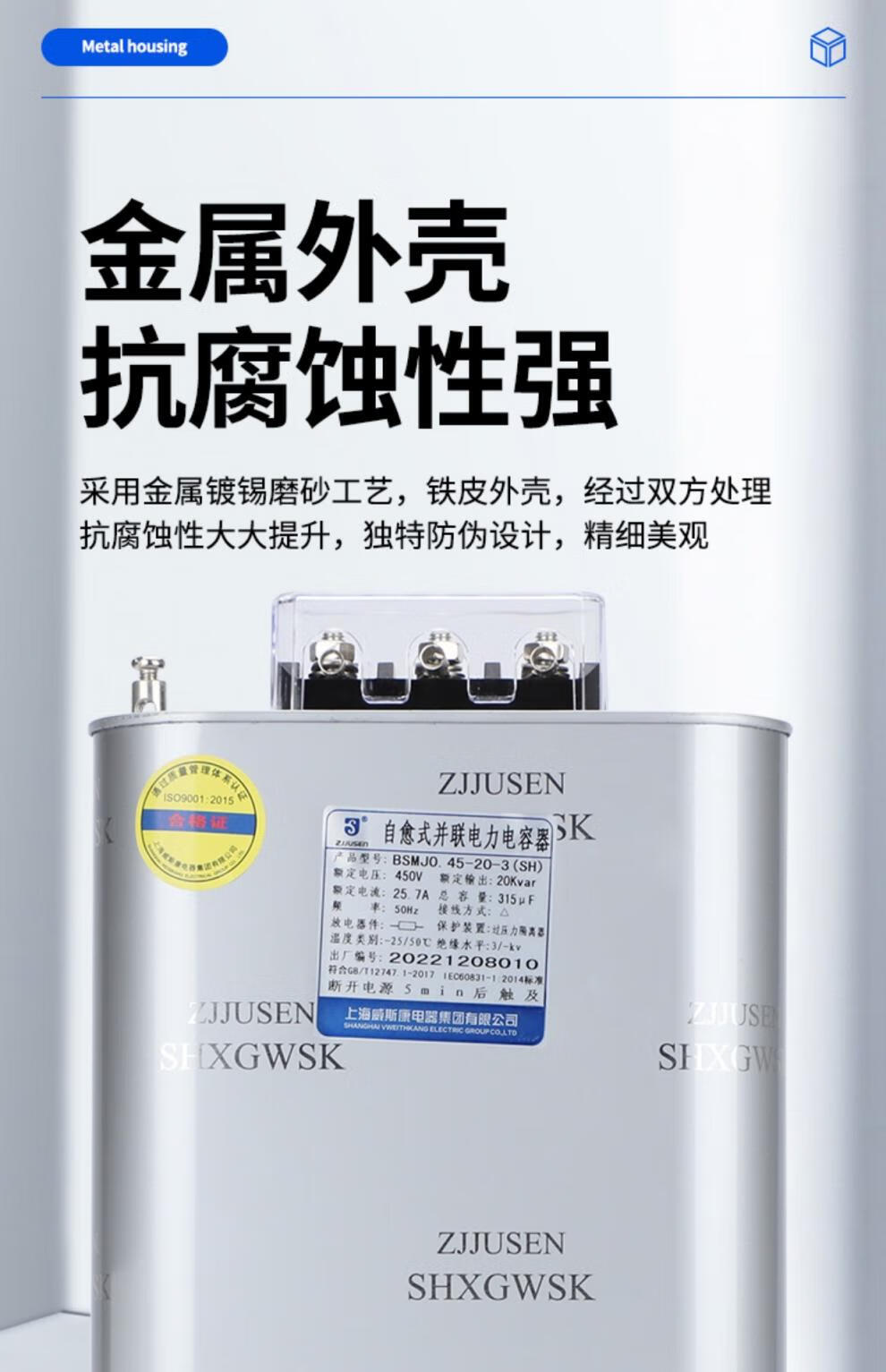 Shanghai Viscon compensation parallel power capacitor BSMJ0.45-20-3 0.4-30-3 40 15Kvar royal blue_BSMJ0.69-60-3