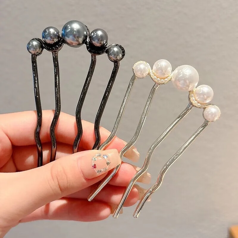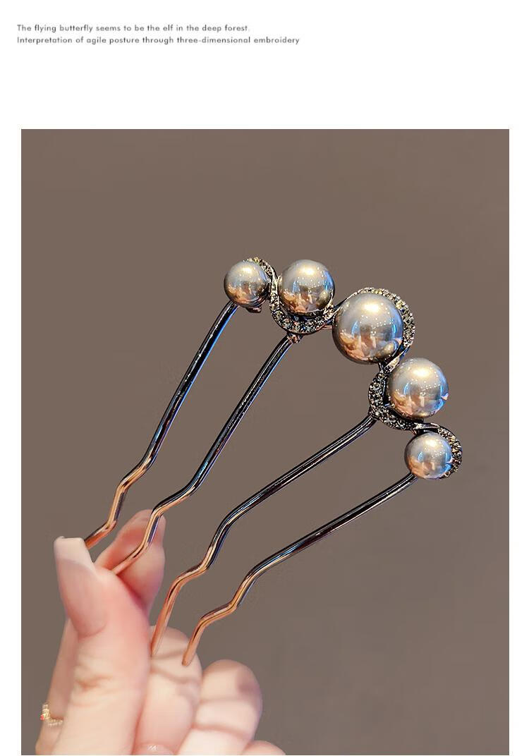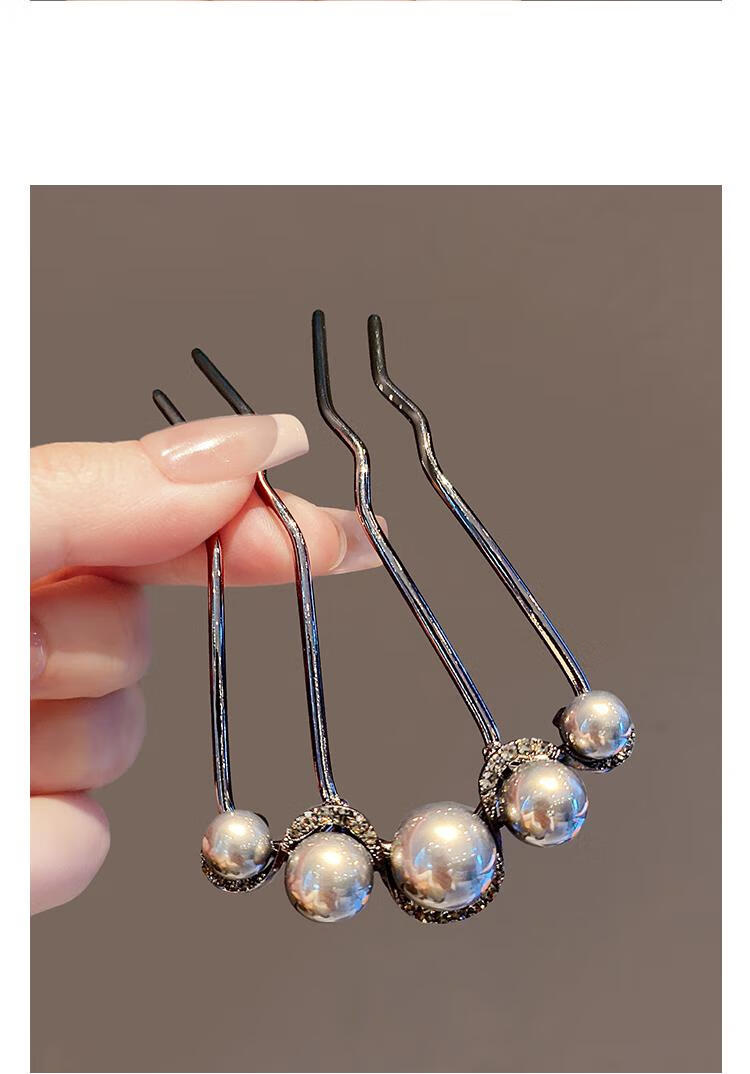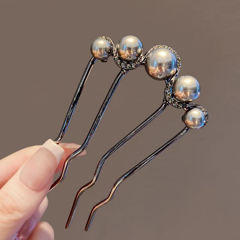 Pearl U-shaped hairpin gun black hairpin ancient style new Chinese style hairpin plate hairpin artifact headwear pearl hairpin-gold