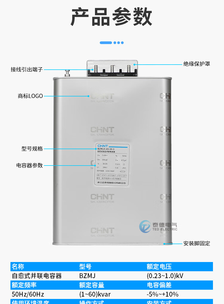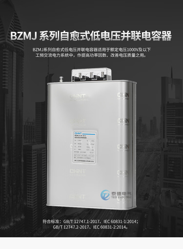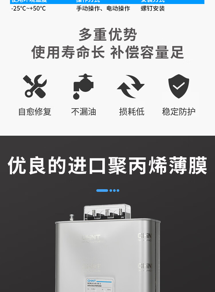 Chint BZMJ-0.45 self-healing low-voltage parallel capacitor 30-3/40-3 reactive power compensation power compensator BZMJ_0.45-15-3