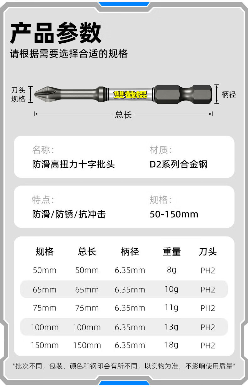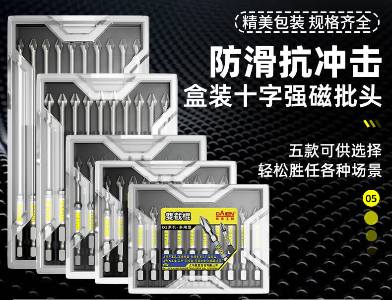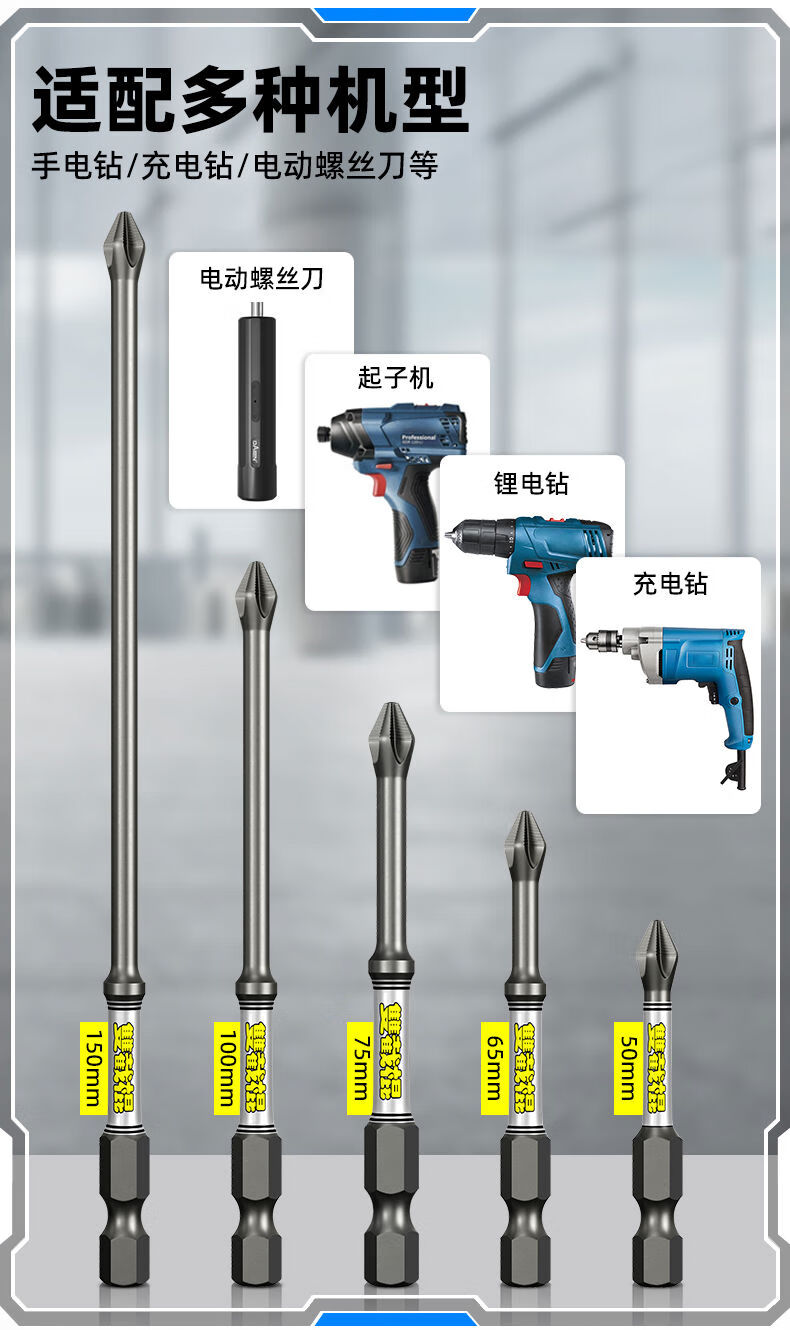 Bit head cross strong magnetic super hard D2 nunchuck cross bit head strong magnetic anti-slip with serrated hexagonal handle electric drill Phi D1 series second generation 65mm pattern small head 10 pieces