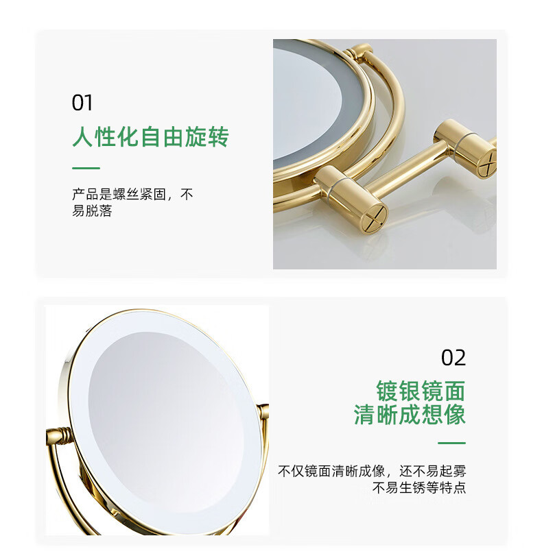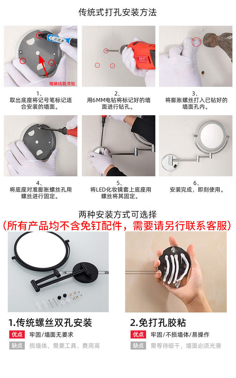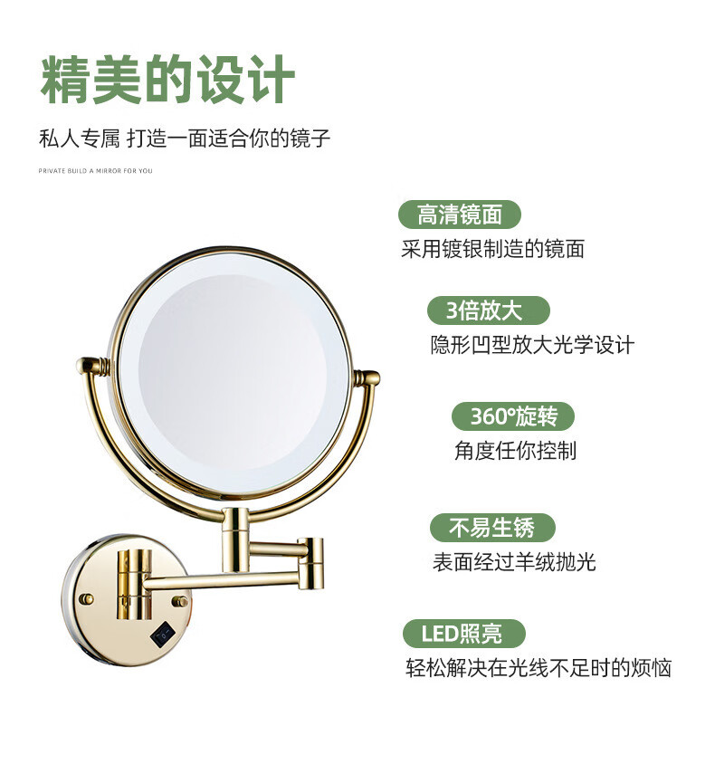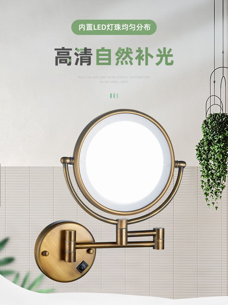 LED light fill light mirror folding dressing and beauty mirror cosmetic mirror bathroom 3 times magnification mirror portable chrome plated concealed/surface mounted