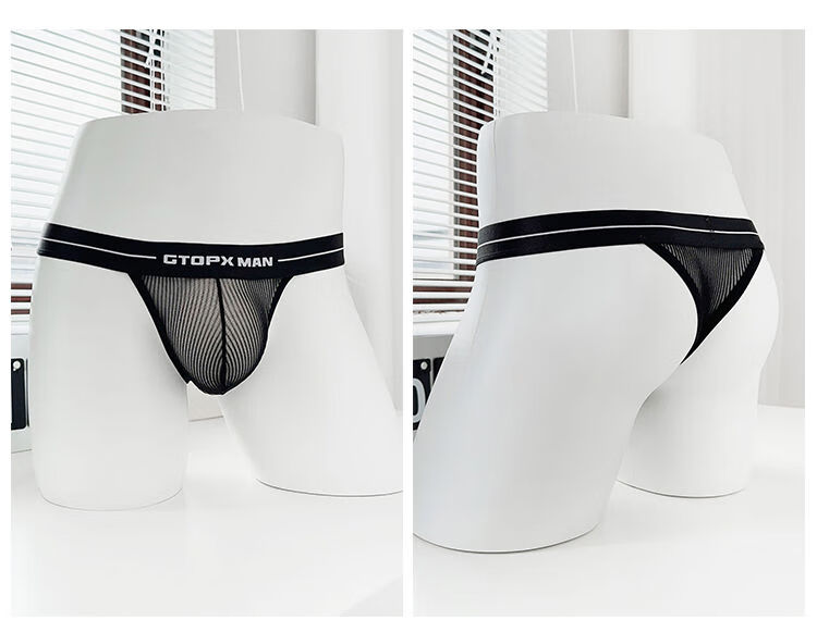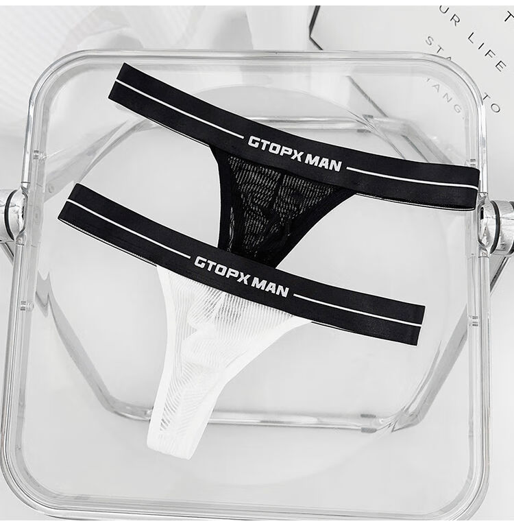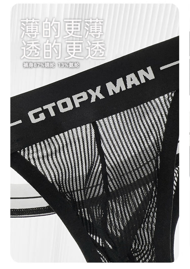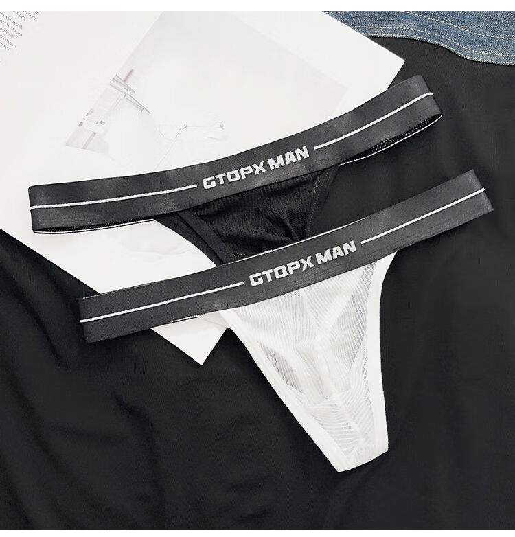 GTOPX MANGTOPXMAN 2-pack men's underwear thong single sexy low-waisted mesh thin ice silk solid color triangle black + white L