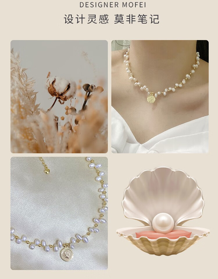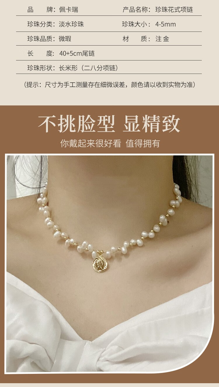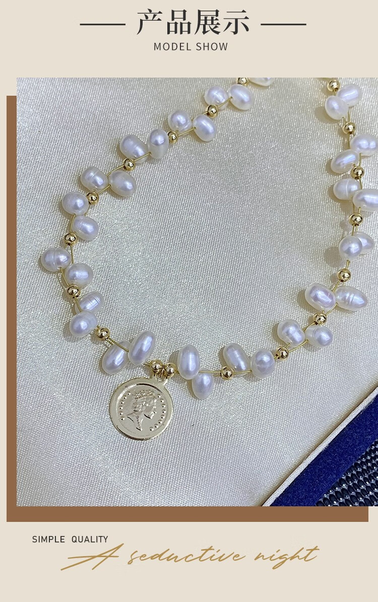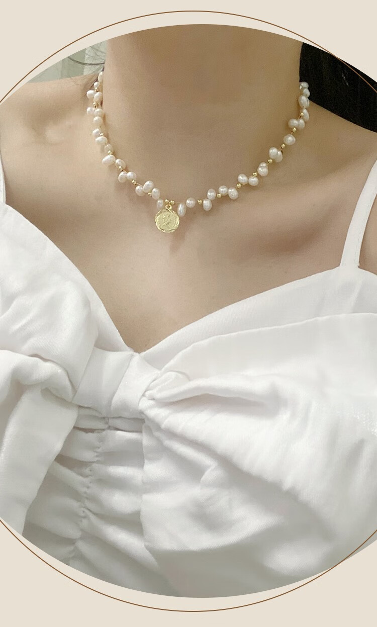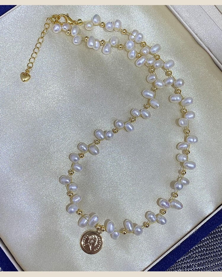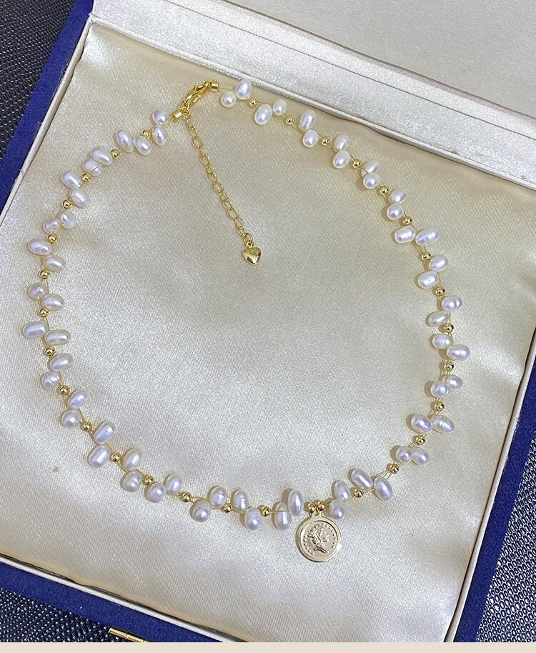 Lao Phoenix 999 Natural Freshwater Millet Pearl Necklace for Women Korean Women's 2024 New White Freshwater Pearl Gold Coin Fancy Necklace