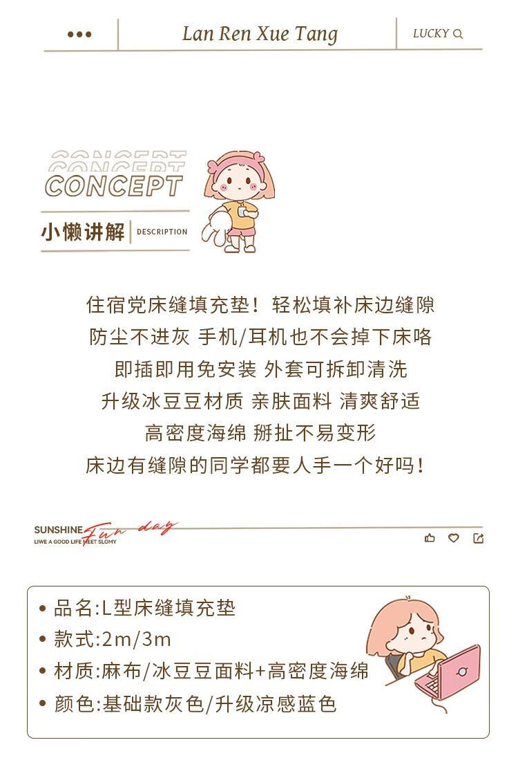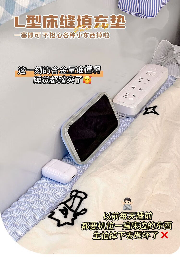 YWZR children's bed accessories dormitory supplies complete bed gap filling strip against the wall anti-falling sponge children's bed accessories basic 2cm L-shaped bed gap filling pad gray