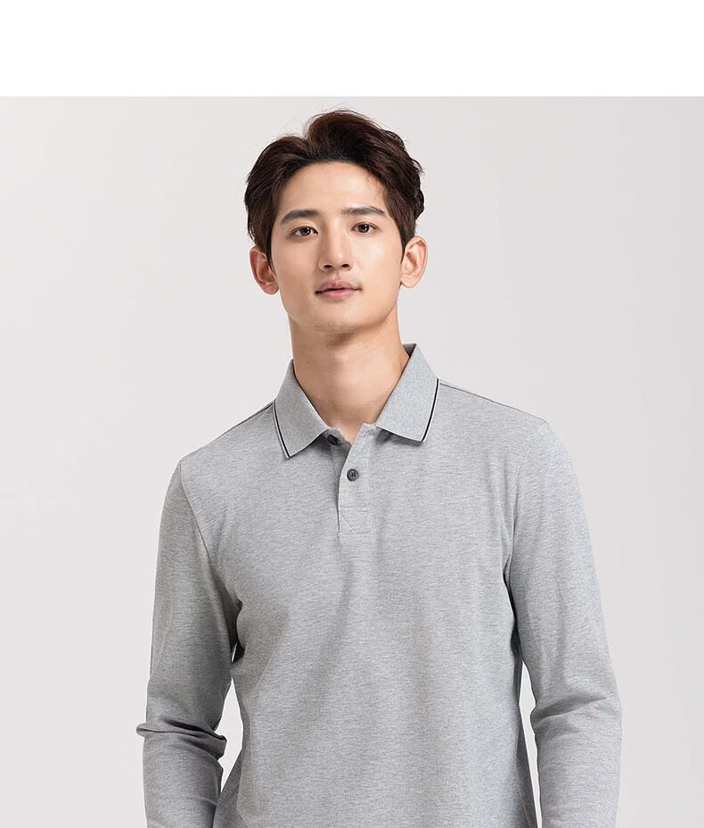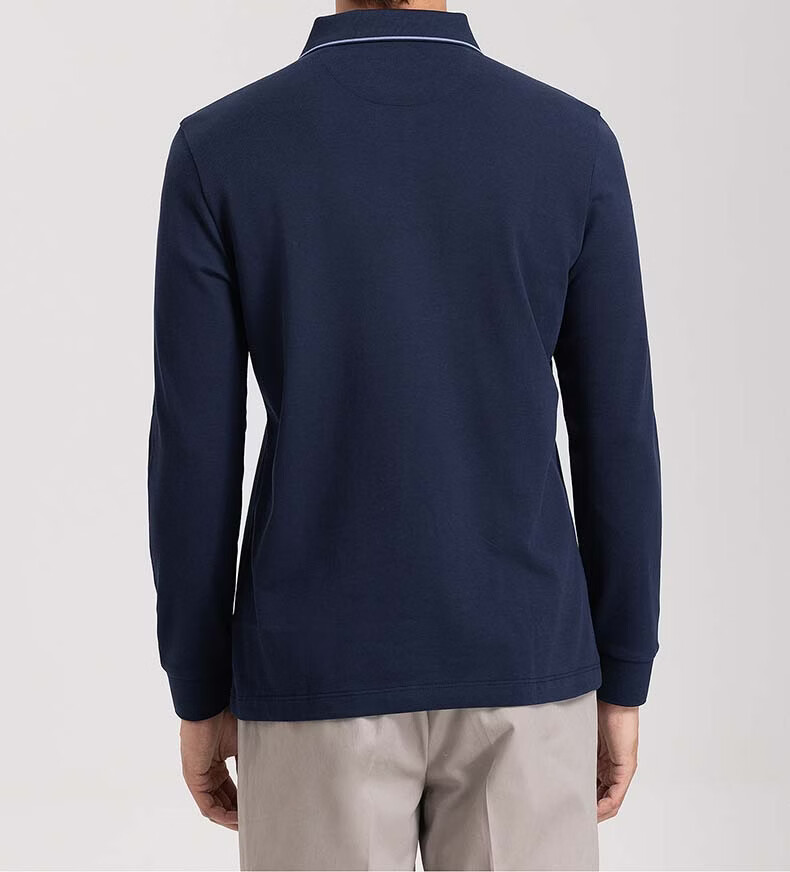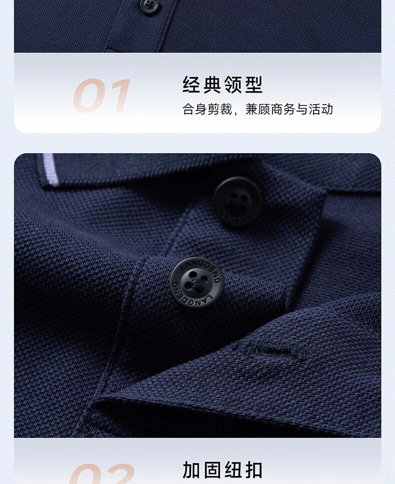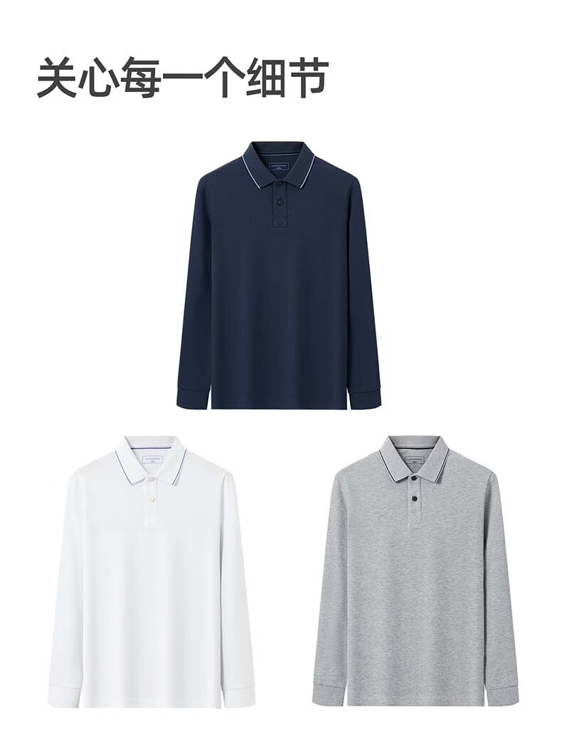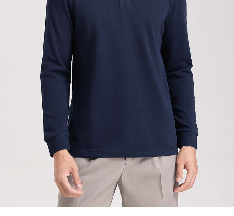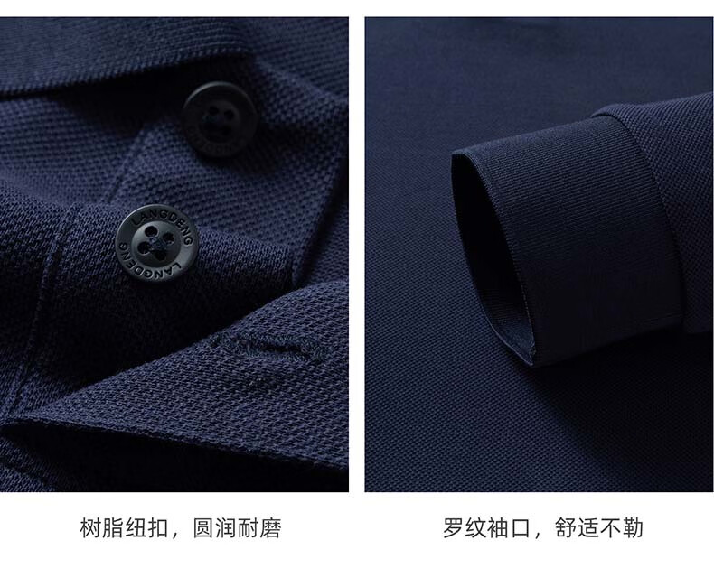 Langdeng Liquid Ammonia Cotton Pure Cotton POLO Shirt Long Sleeve 2025 Autumn New Style Lapel Solid Color Lapel T-shirt for Men Dark Blue L (175/92A)