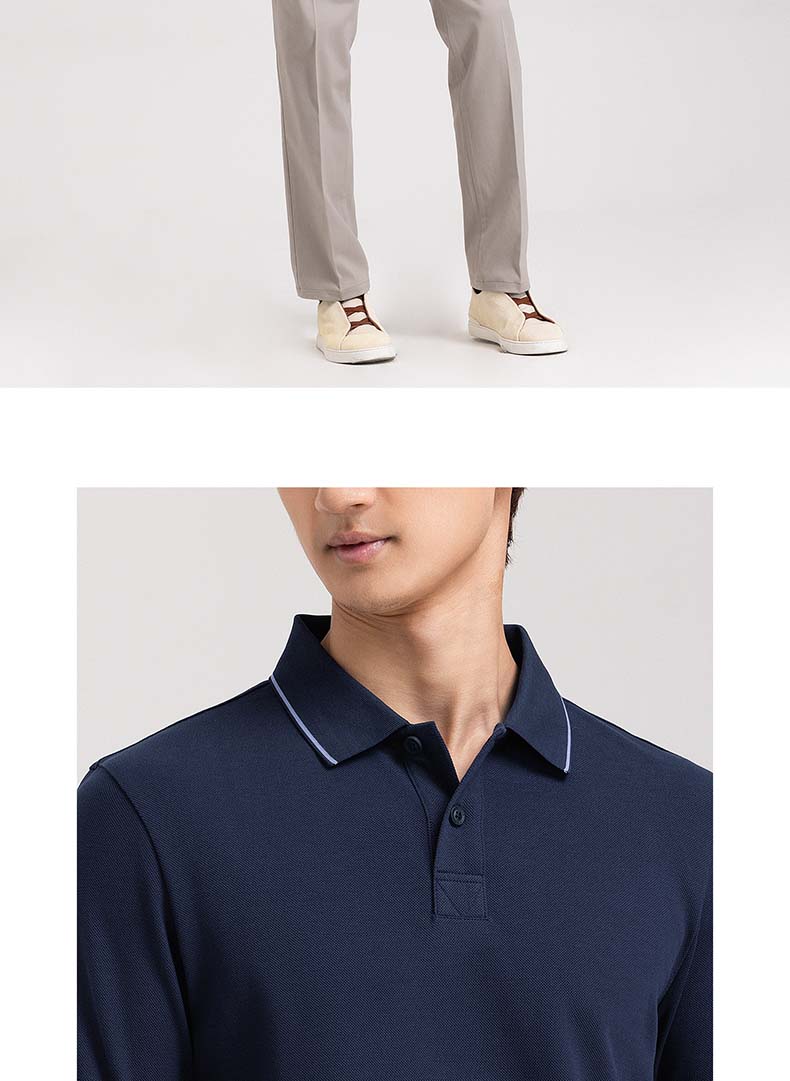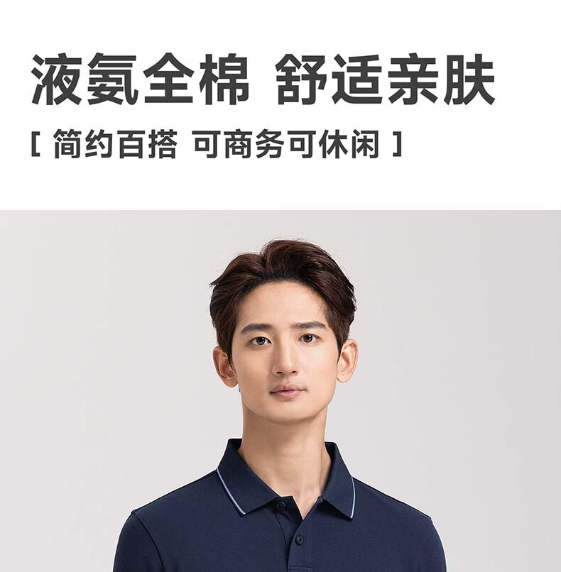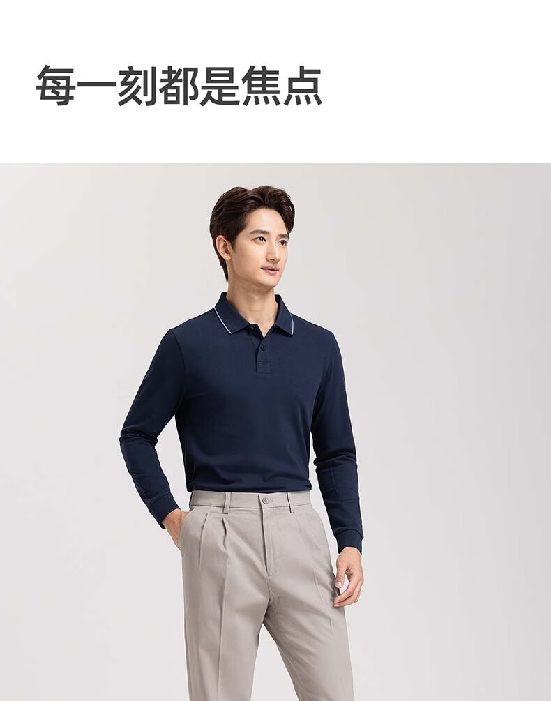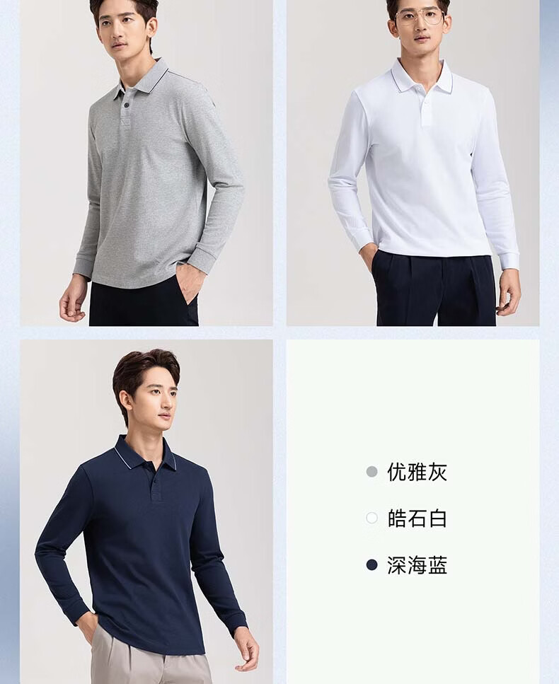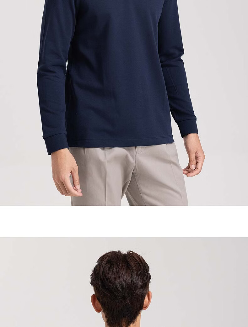 Langdeng Liquid Ammonia Cotton Pure Cotton POLO Shirt Long Sleeve 2025 Autumn New Style Lapel Solid Color Lapel T-shirt for Men Dark Blue L (175/92A)
