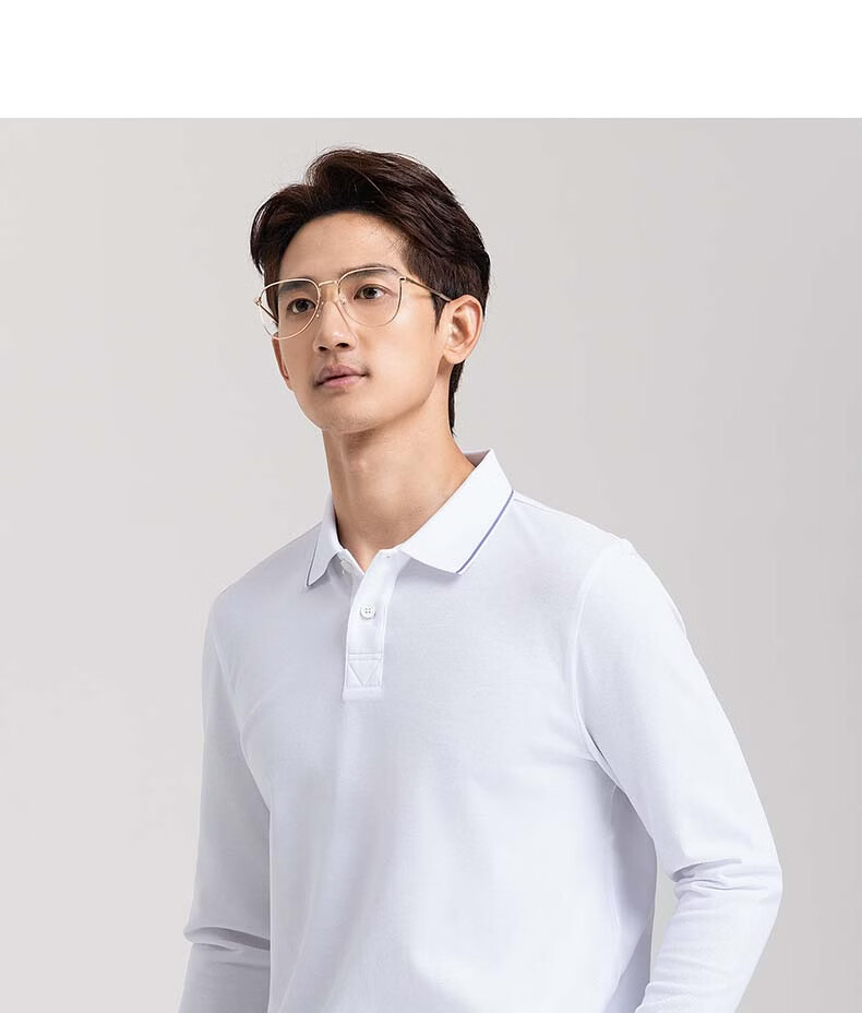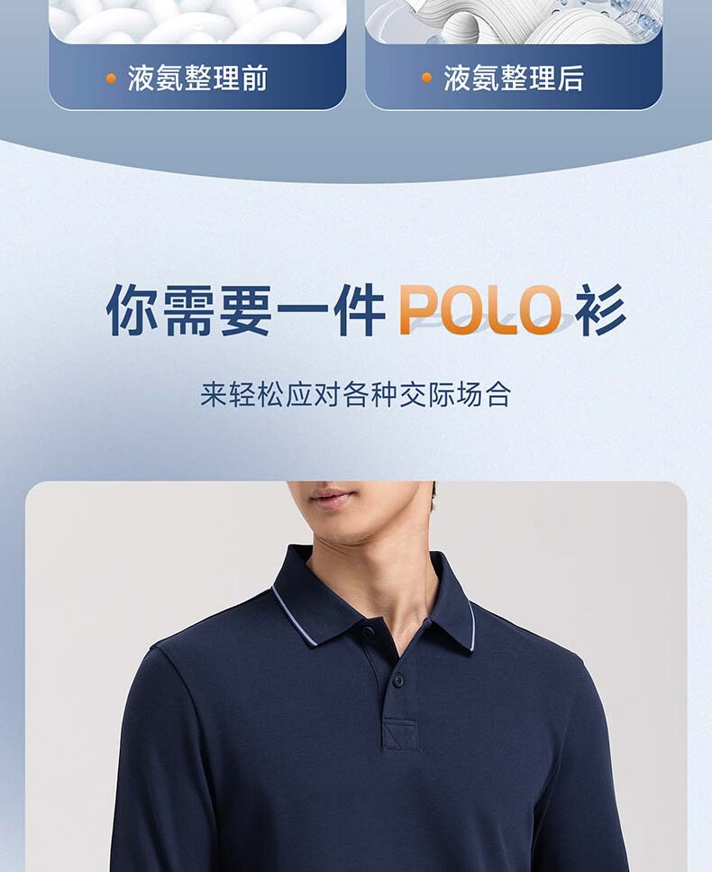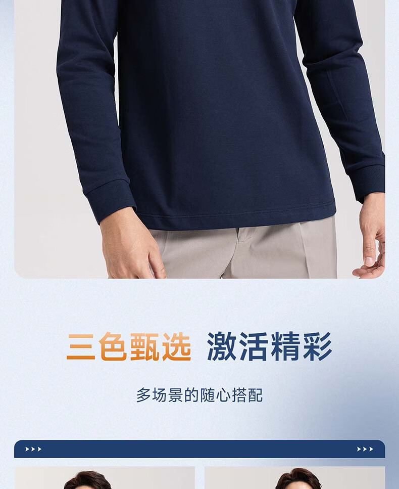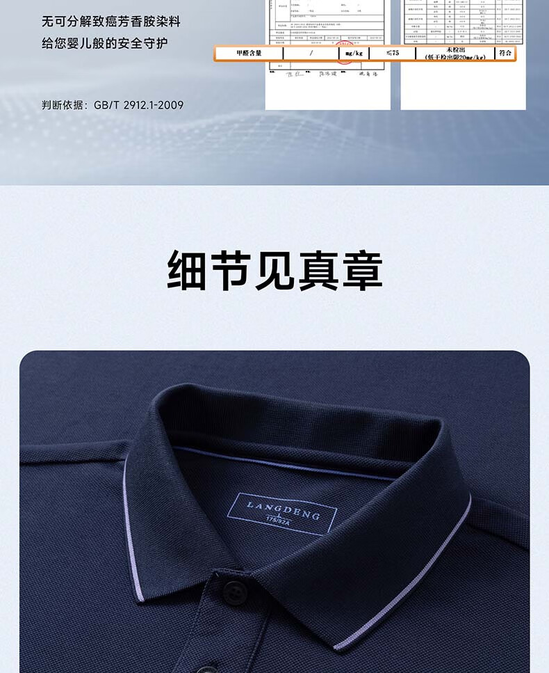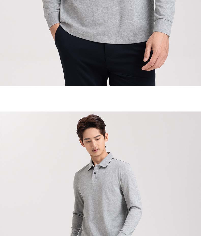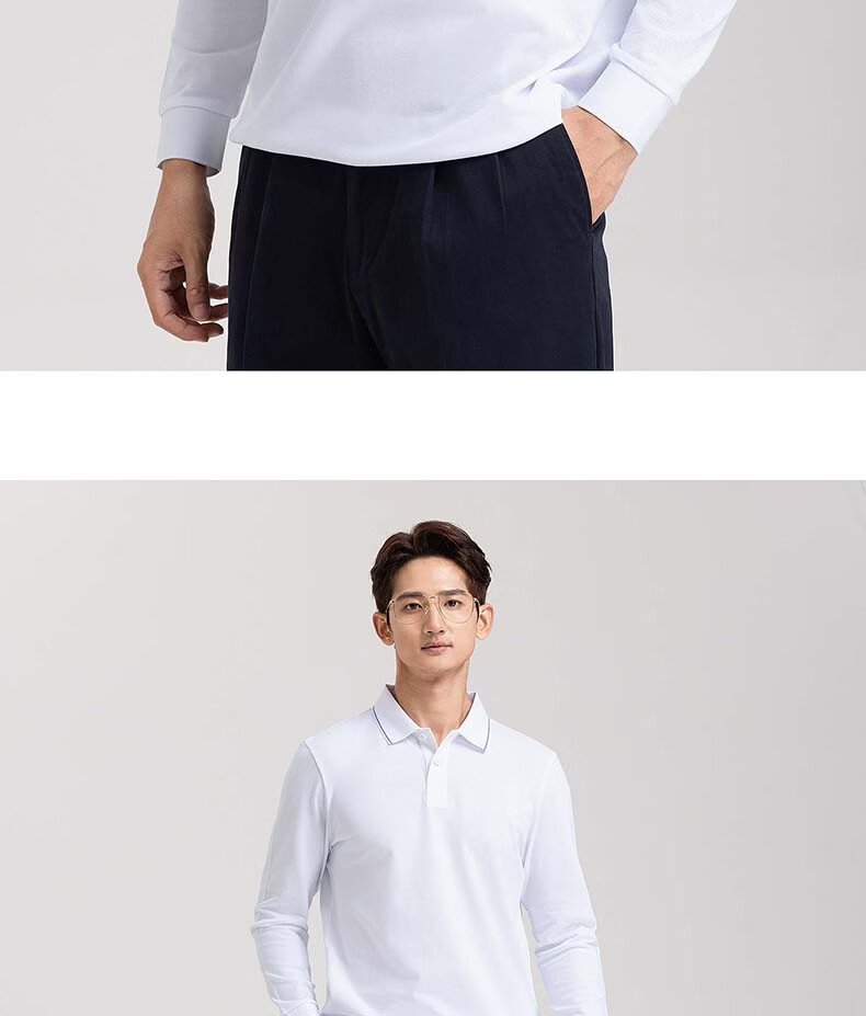 Langdeng Liquid Ammonia Cotton Pure Cotton POLO Shirt Long Sleeve 2025 Autumn New Style Lapel Solid Color Lapel T-shirt for Men Dark Blue L (175/92A)