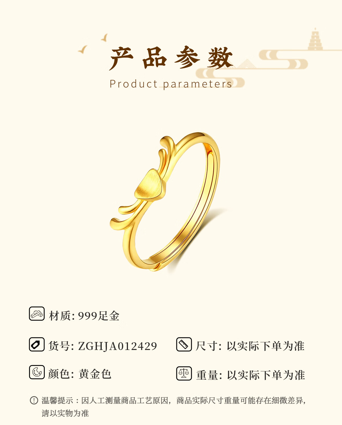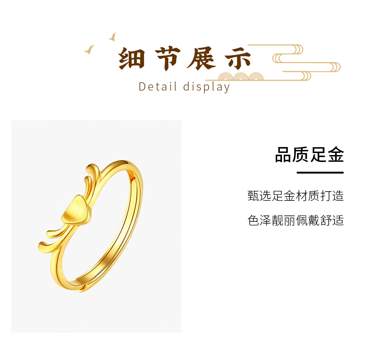 China Gold (CHINA GOLD) Gold Ring Women's Pure Gold 999 Yi Lu You You Pure Gold Ring Birthday Valentine's Day Gift for Girlfriend and Wife Pure Gold Ring About 2.3g Selection Gift Box