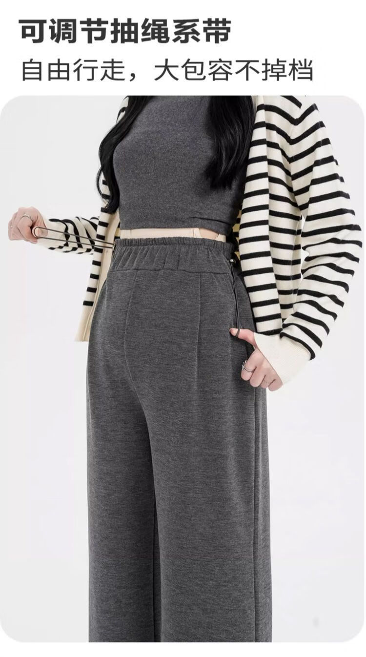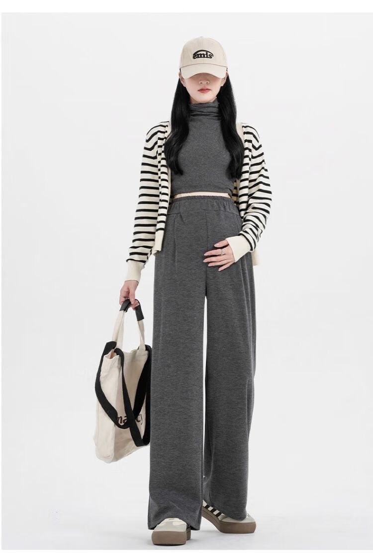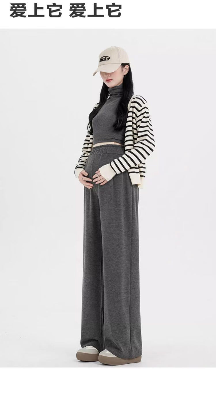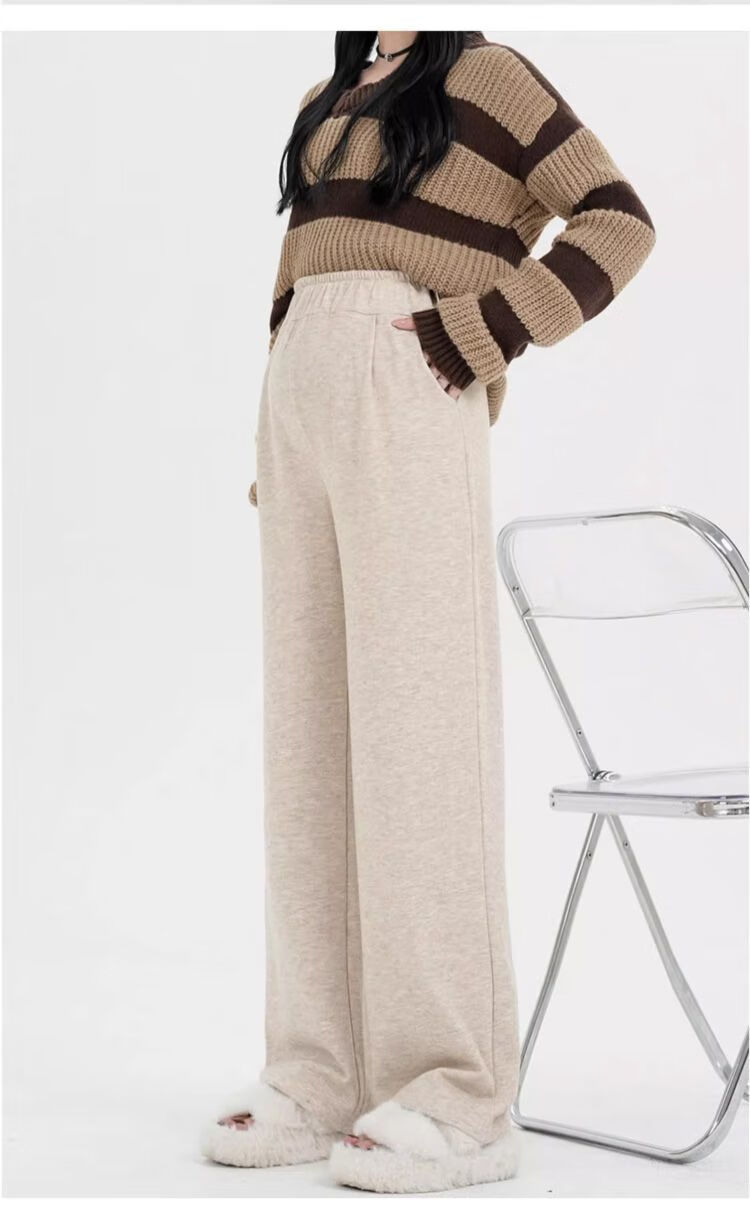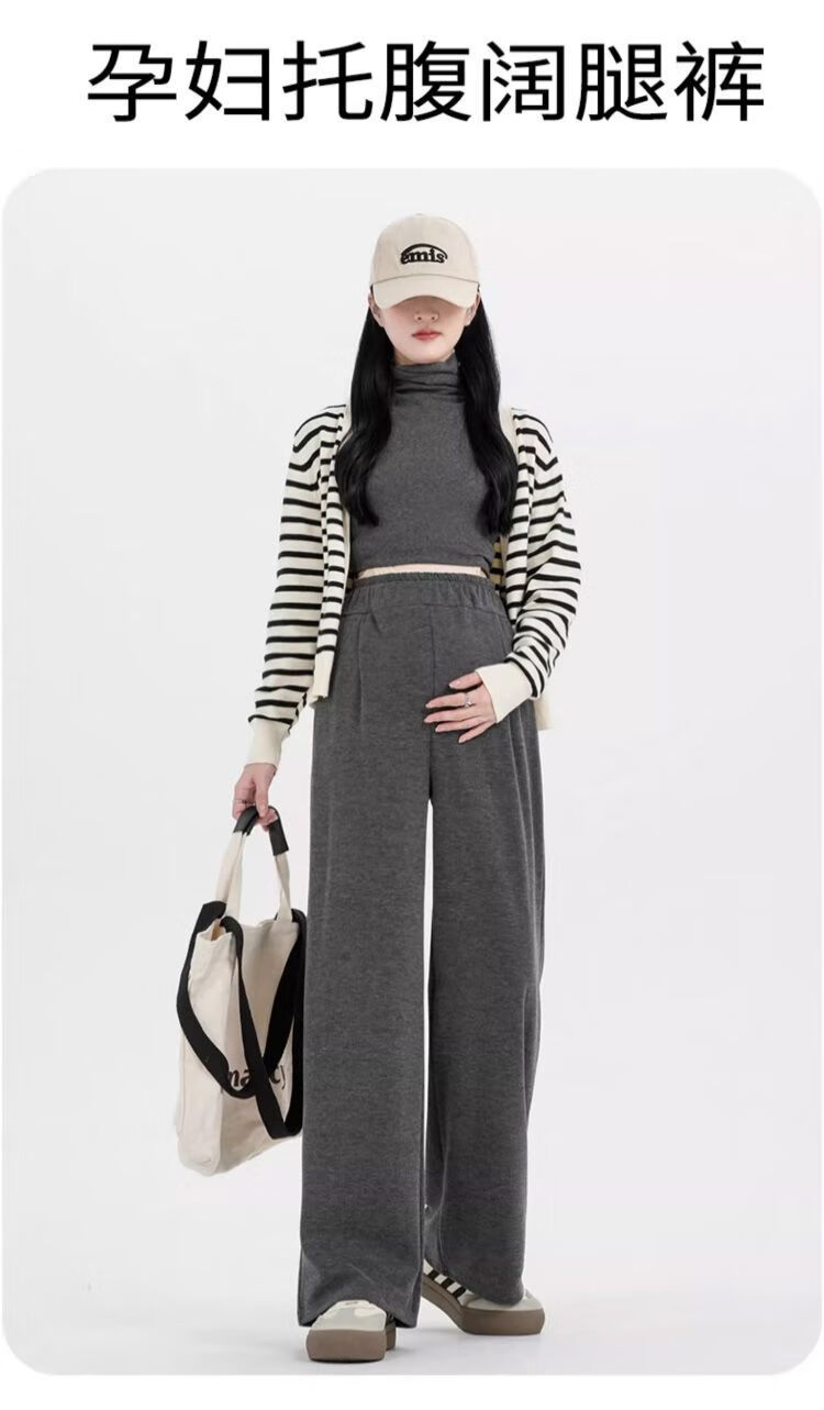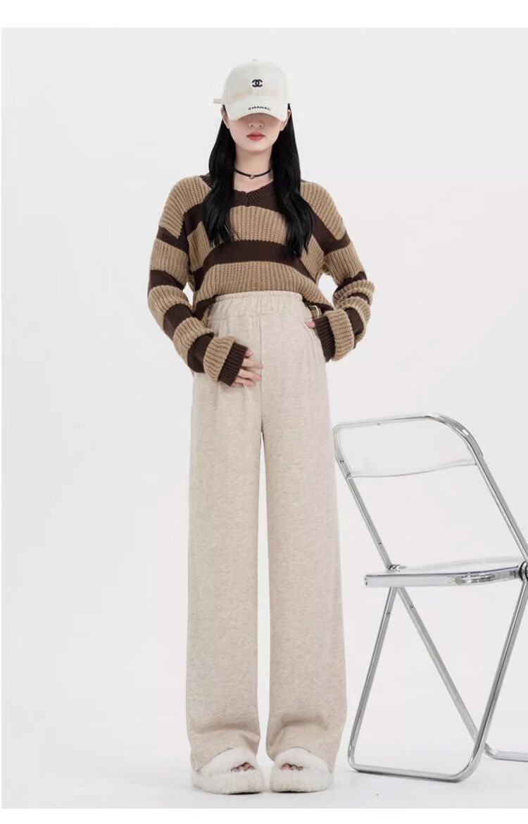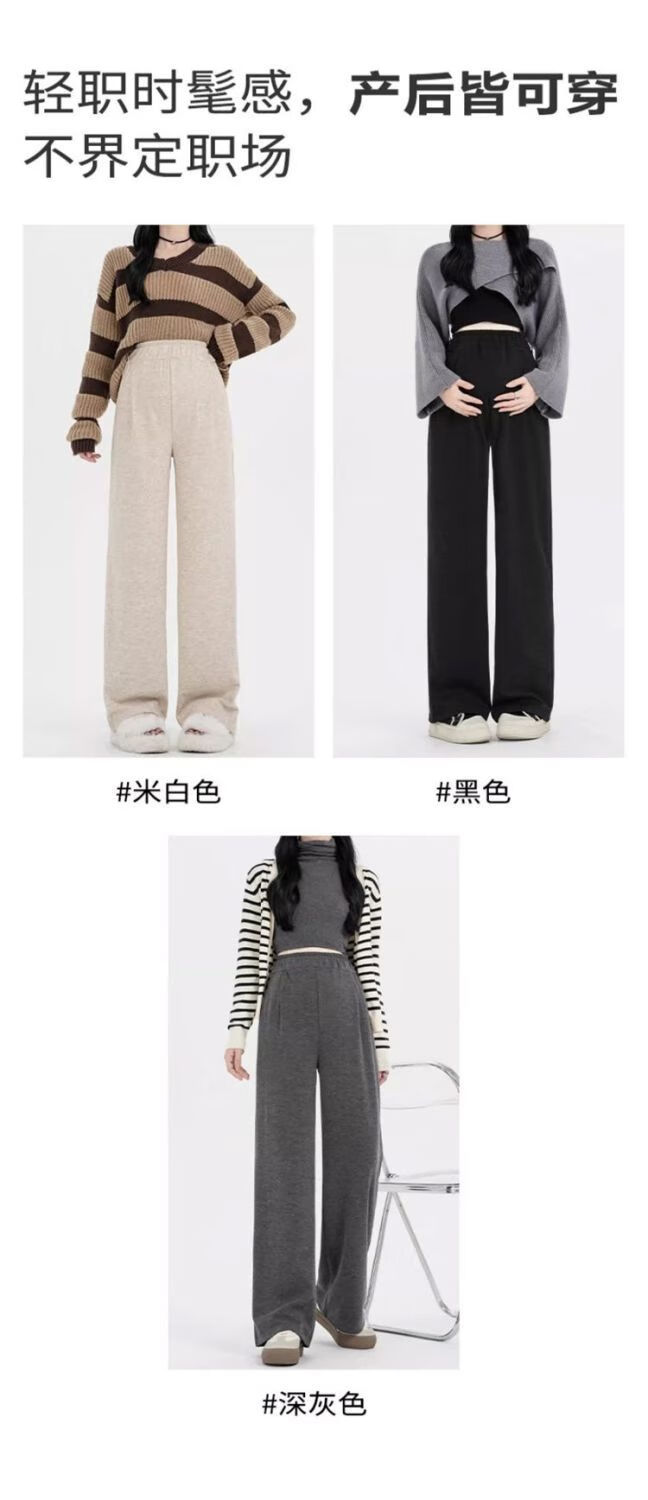 Maternity trousers, autumn and winter new outer wear pregnancy trousers, velvet and thickened glutinous rice high-waisted versatile wide-leg pants, oatmeal color and velvet style L (115-135Jin Jin equals 0.5 kg)