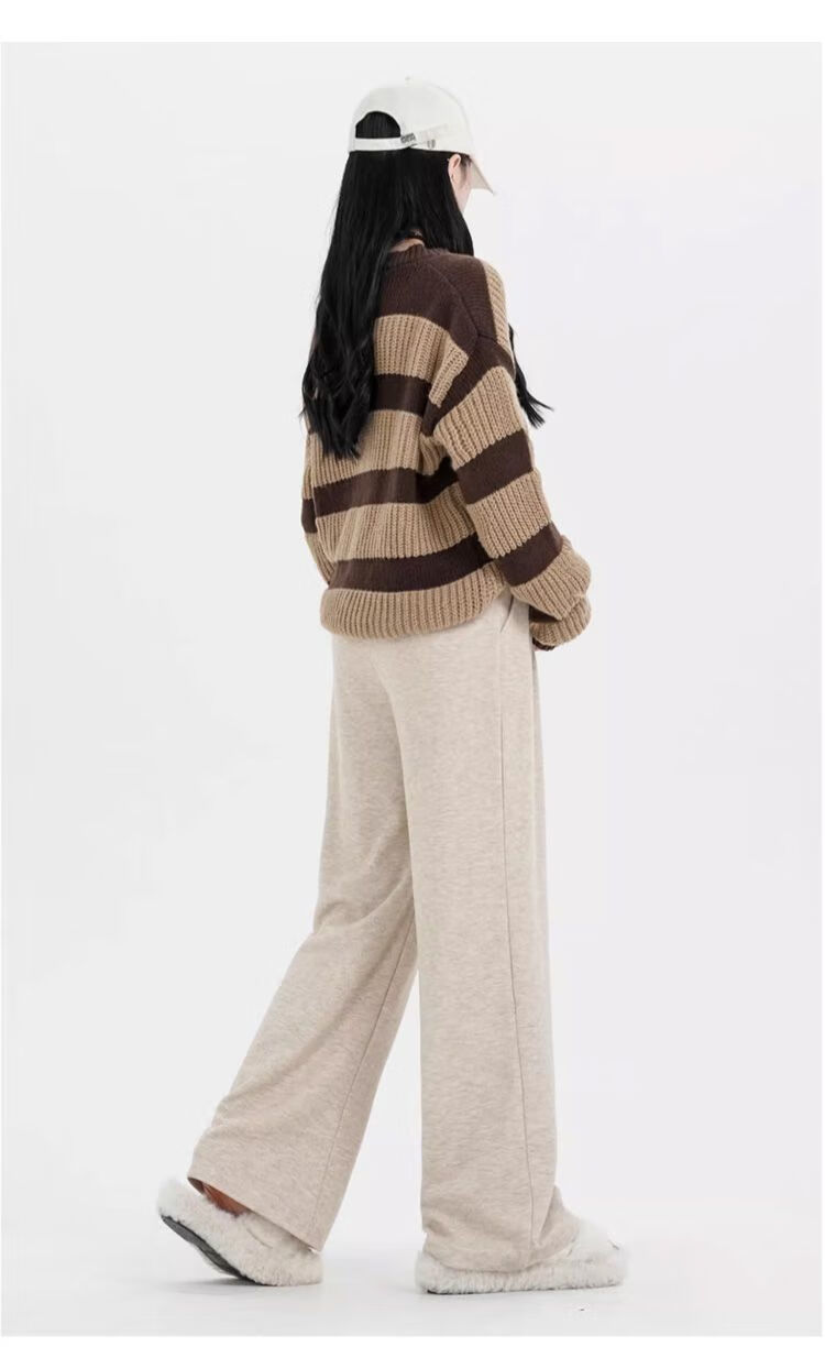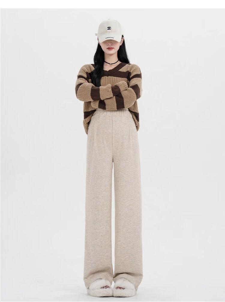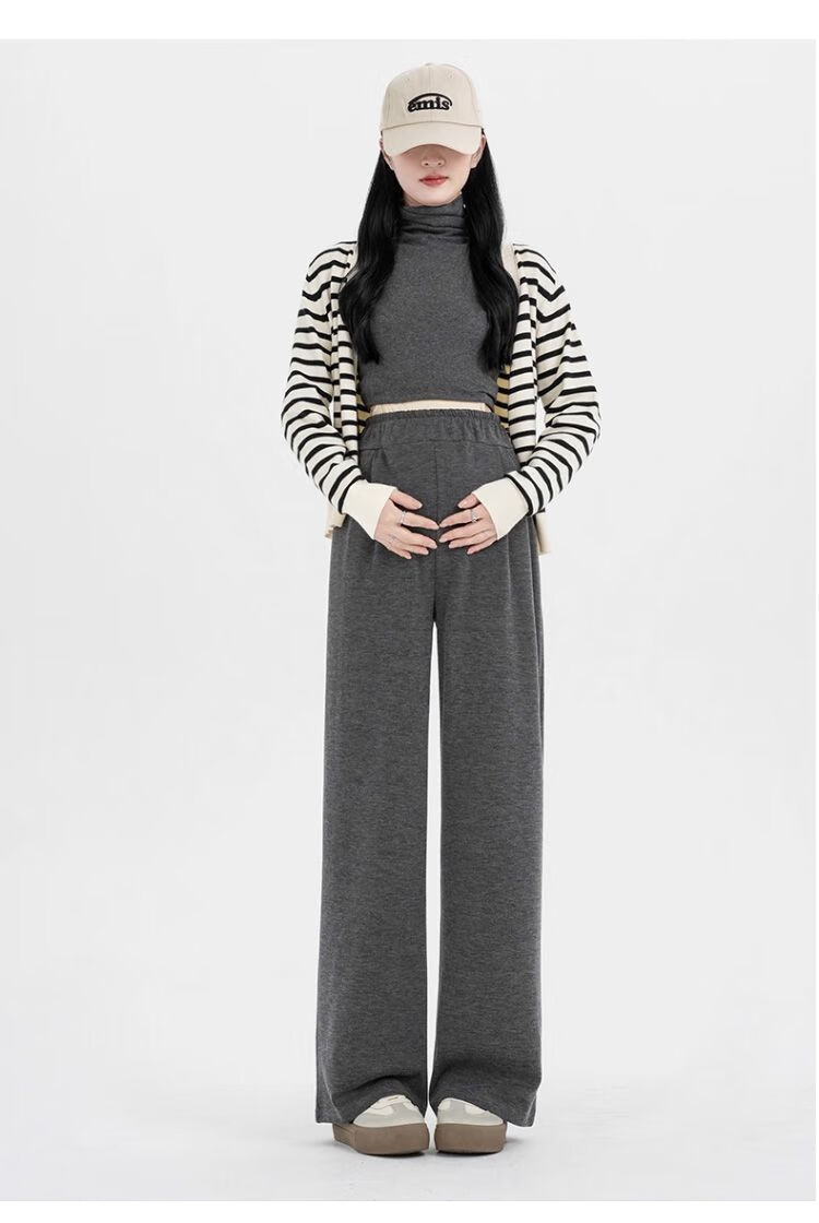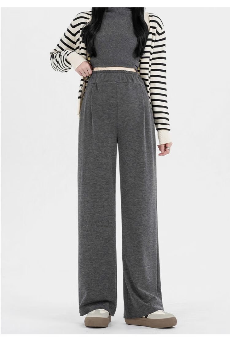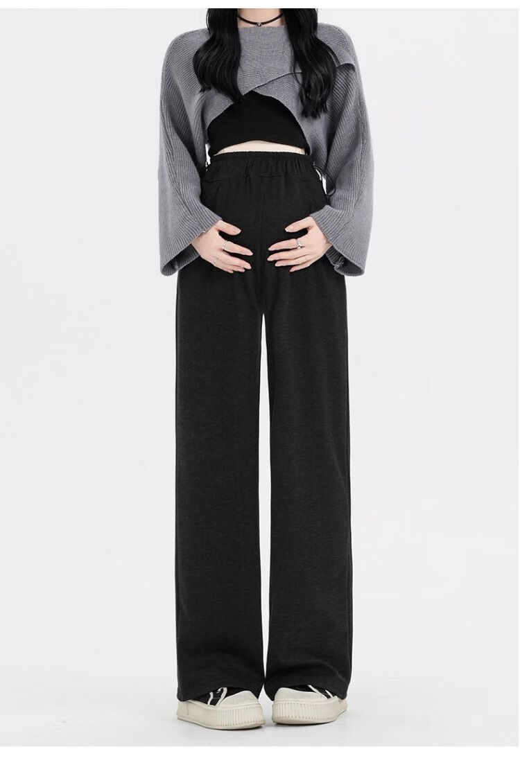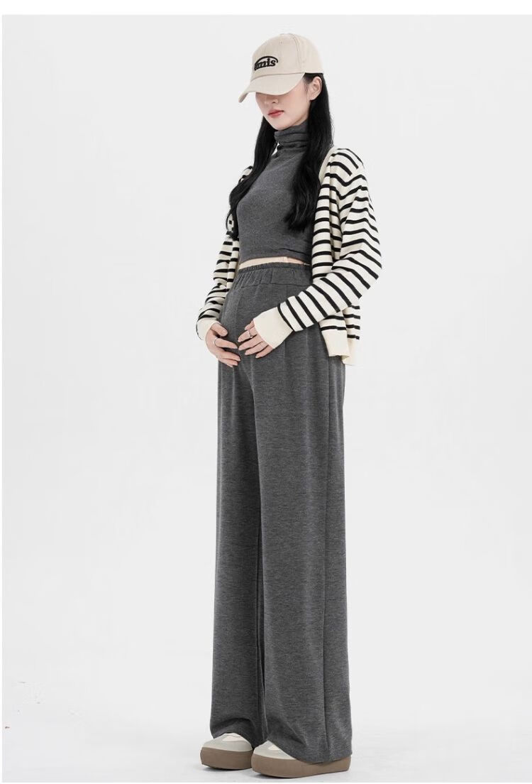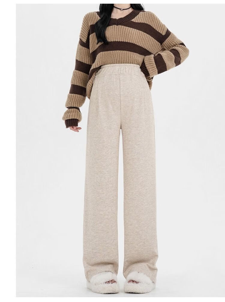 Maternity trousers, autumn and winter new outer wear pregnancy trousers, velvet and thickened glutinous rice high-waisted versatile wide-leg pants, oatmeal color and velvet style L (115-135Jin Jin equals 0.5 kg)