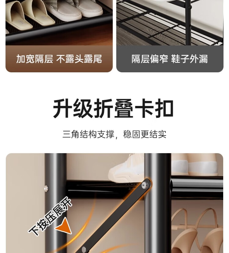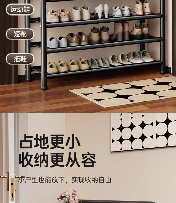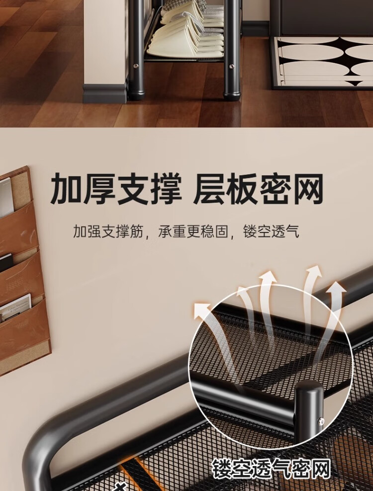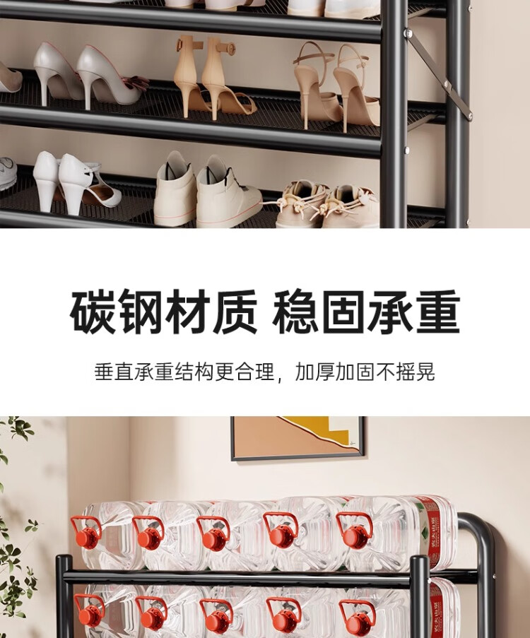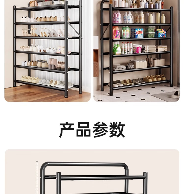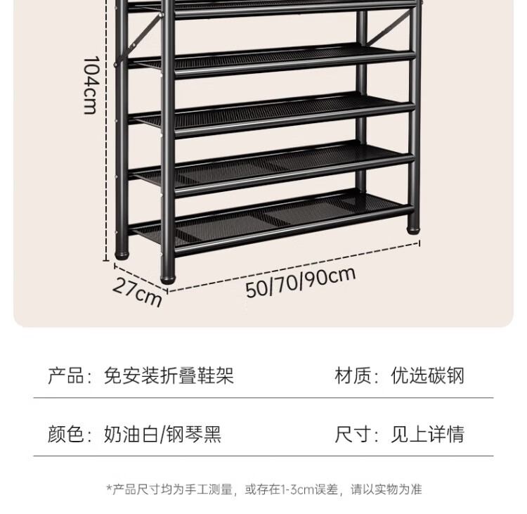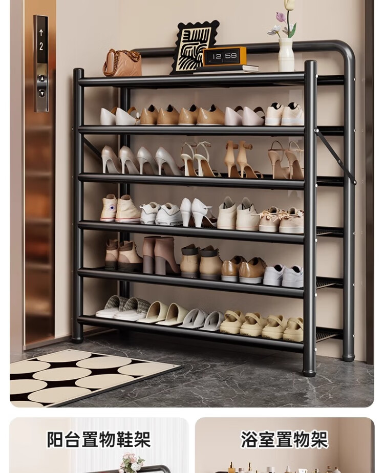 Clothing shoe rack multi-layer home door indoor entry door small narrow installation-free folding simple shoe cabinet for dormitory rental use 3 layers 50cm-high-grade black double reinforcement + support tie