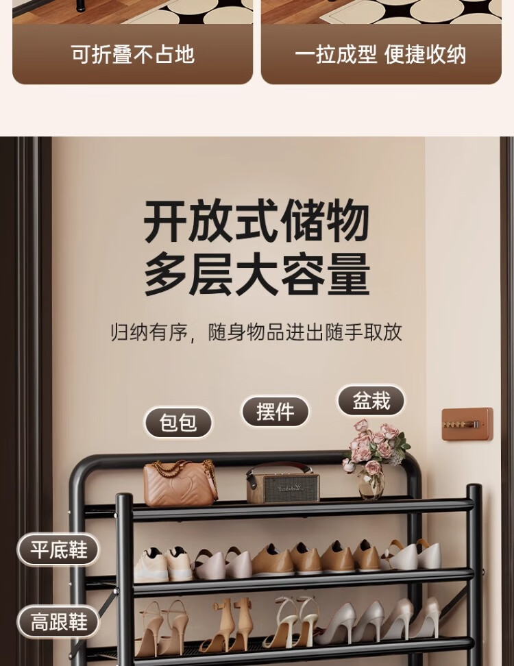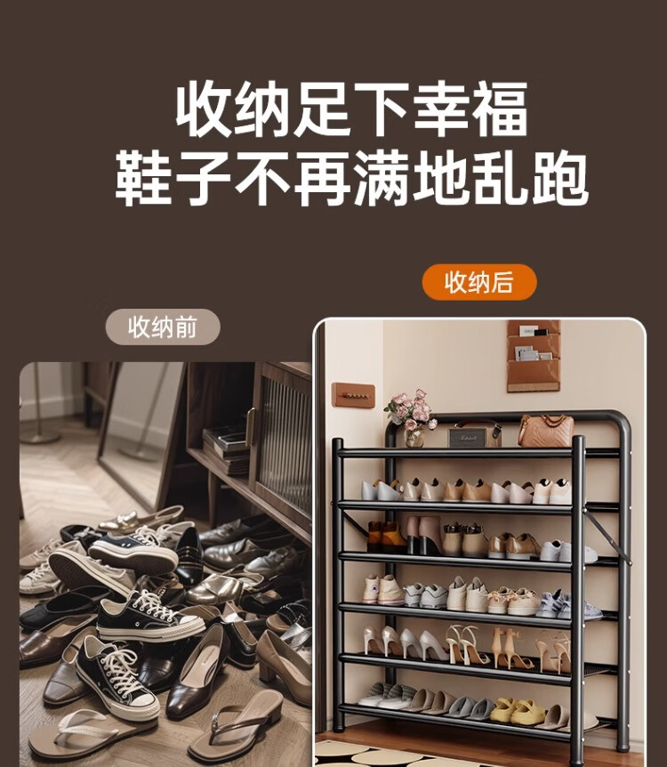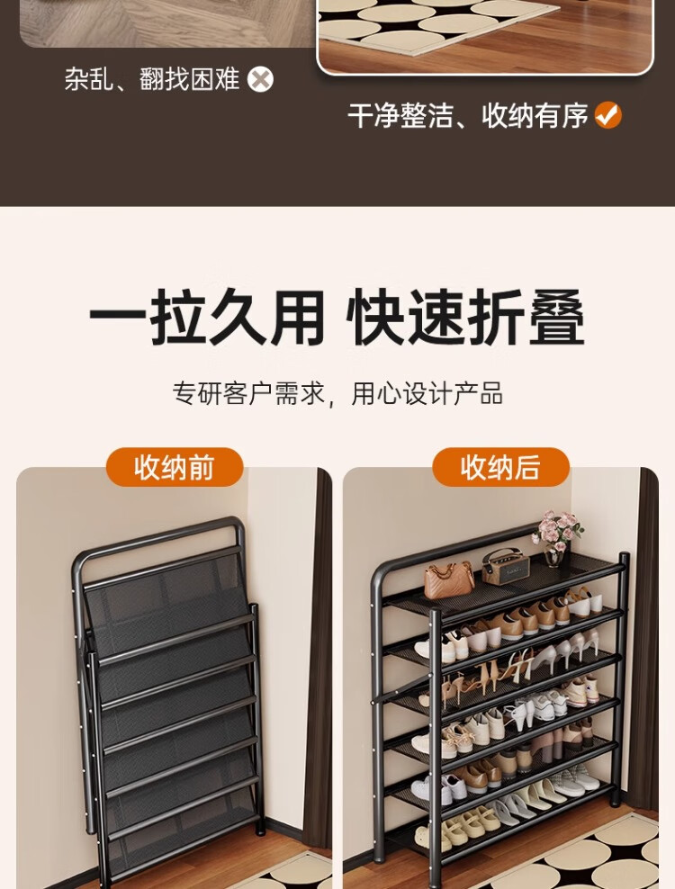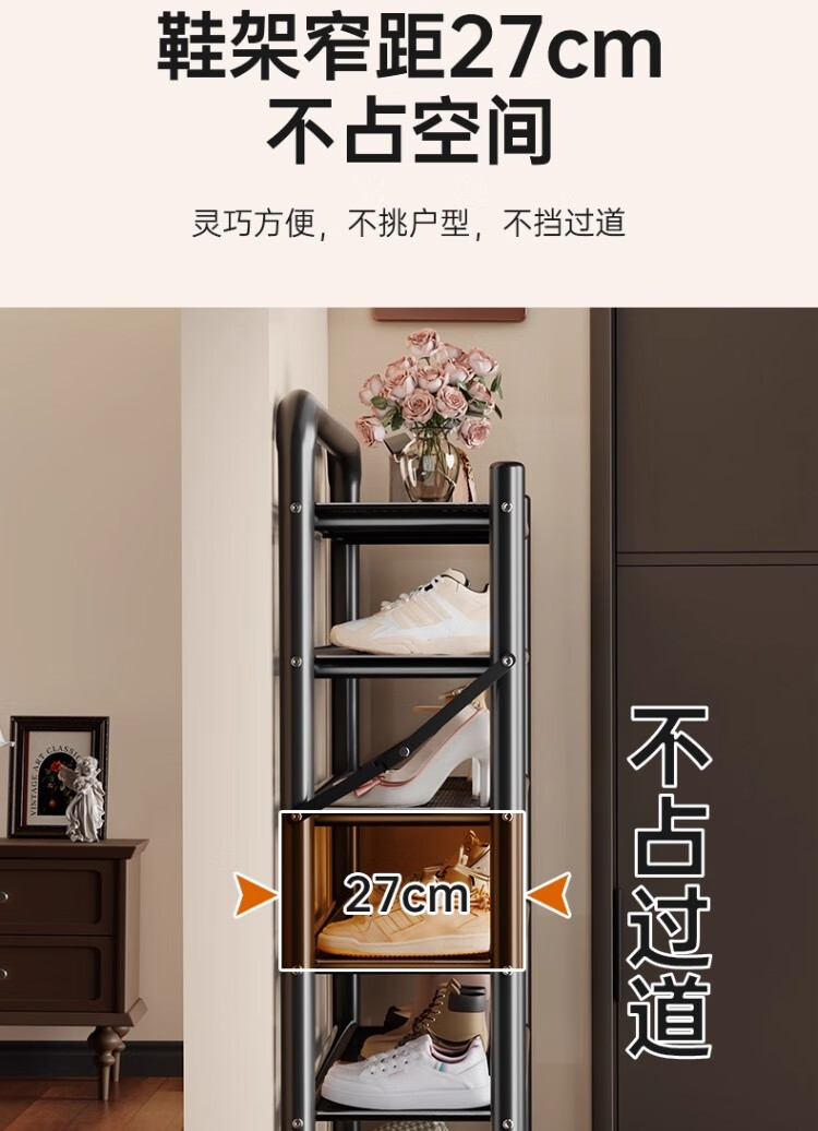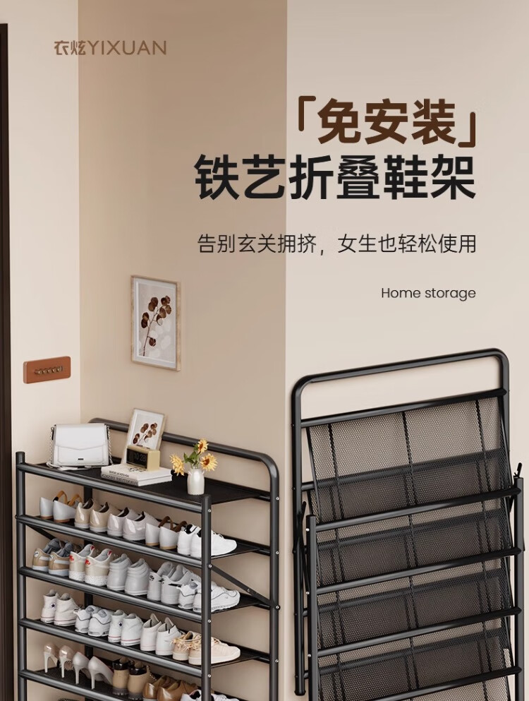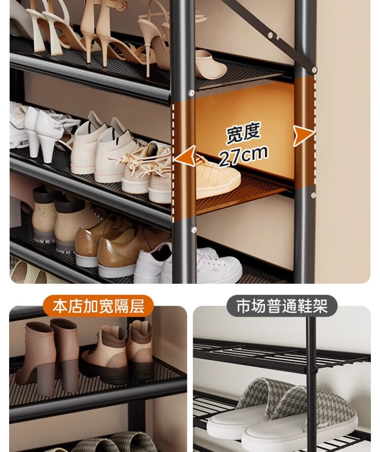 Clothing shoe rack multi-layer home door indoor entry door small narrow installation-free folding simple shoe cabinet for dormitory rental use 3 layers 50cm-high-grade black double reinforcement + support tie