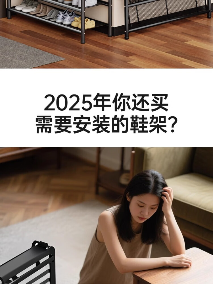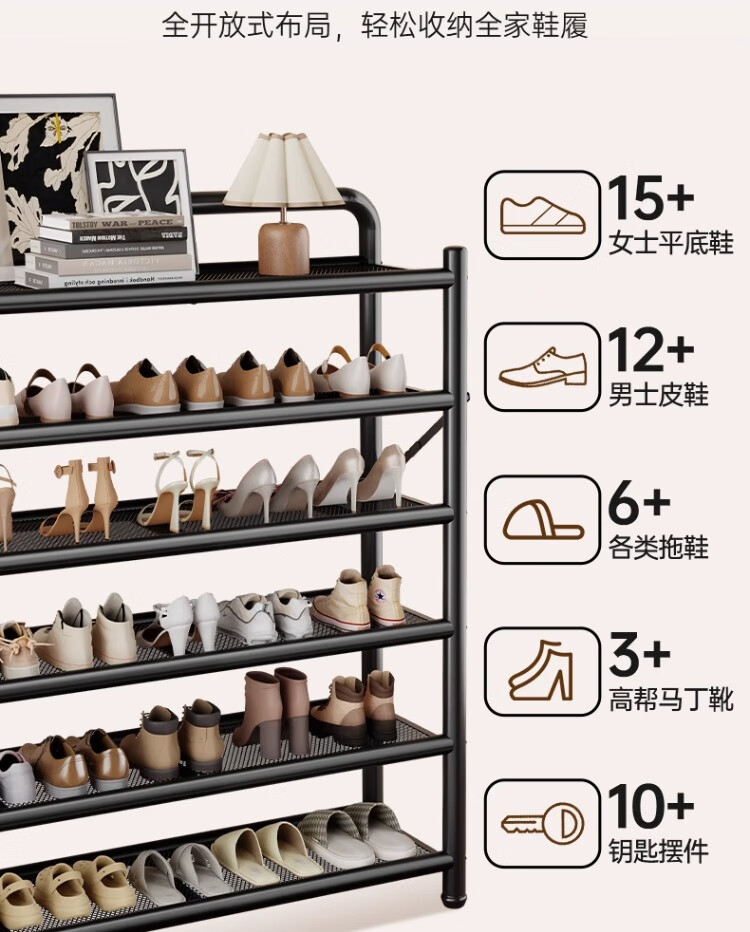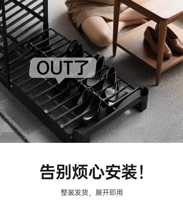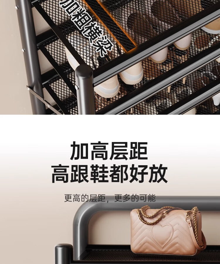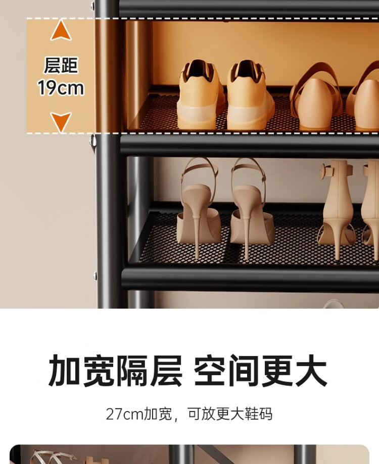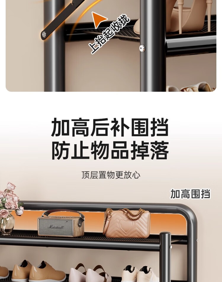 Clothing shoe rack multi-layer home door indoor entry door small narrow installation-free folding simple shoe cabinet for dormitory rental use 3 layers 50cm-high-grade black double reinforcement + support tie