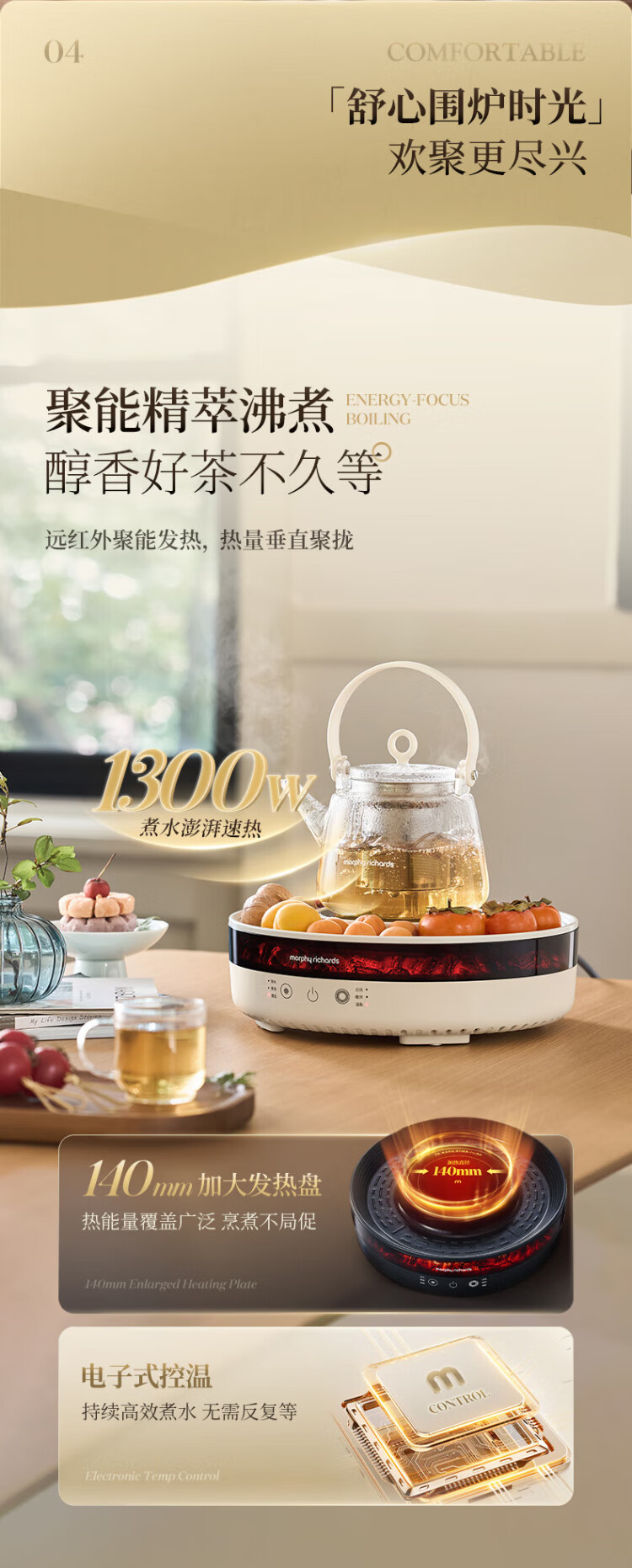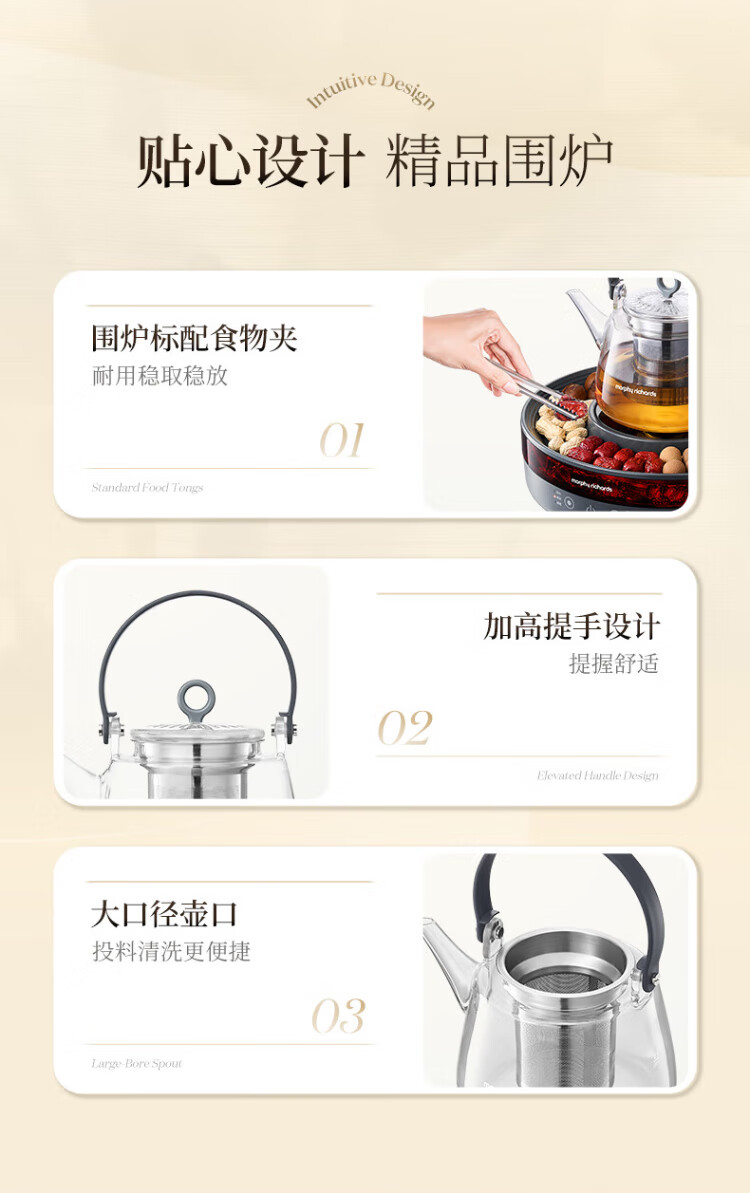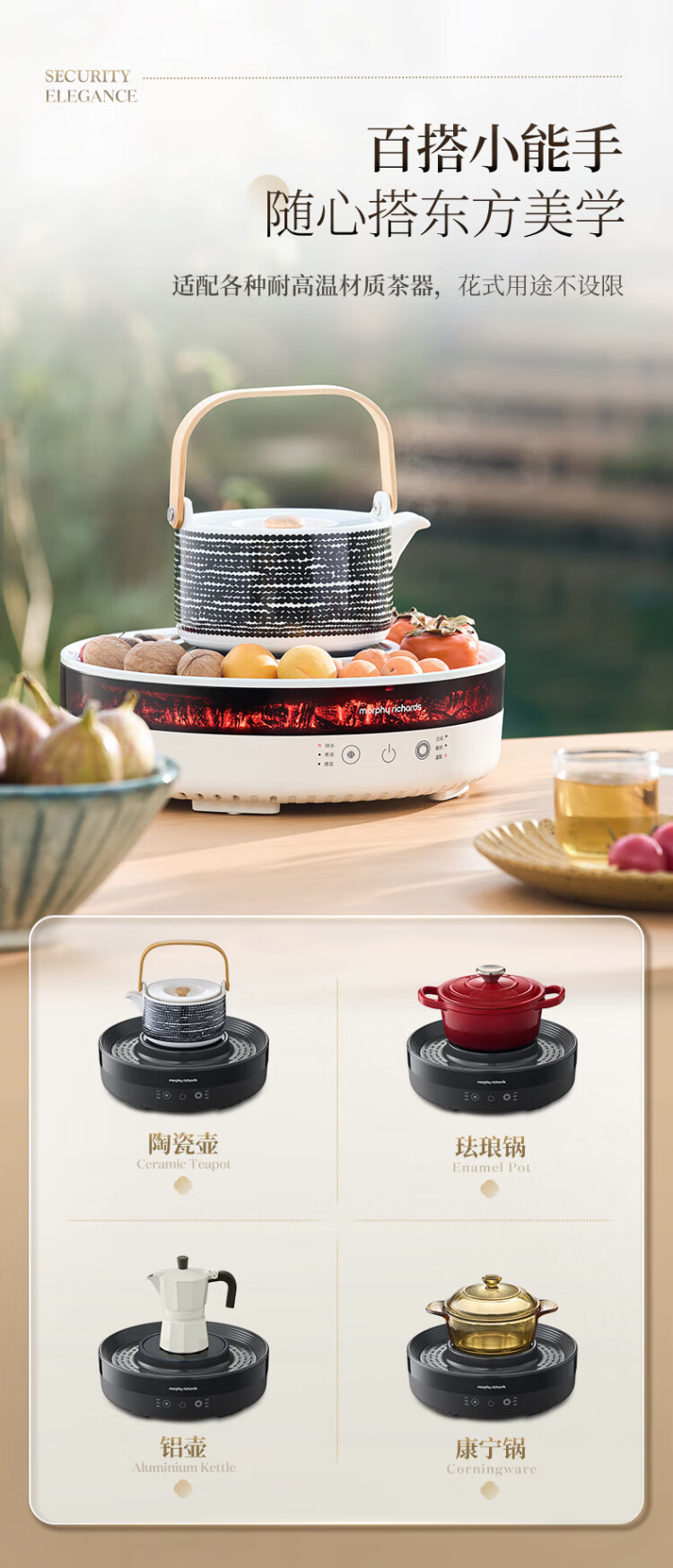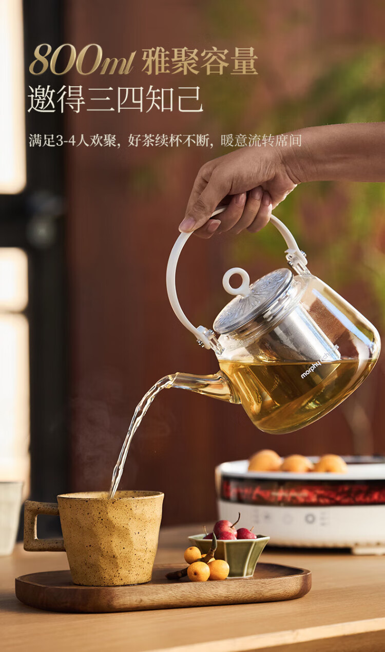 Mofei Electric Fireplace Tea Cooking Set Health Kettle Full Glass Kettle Tea Kettle Constant Temperature Kettle Tea Cooking Equipment Tea Stove Electric Tea Stove Electric Ceramic Stove MR6096-Coconut Milk White 0.8L
