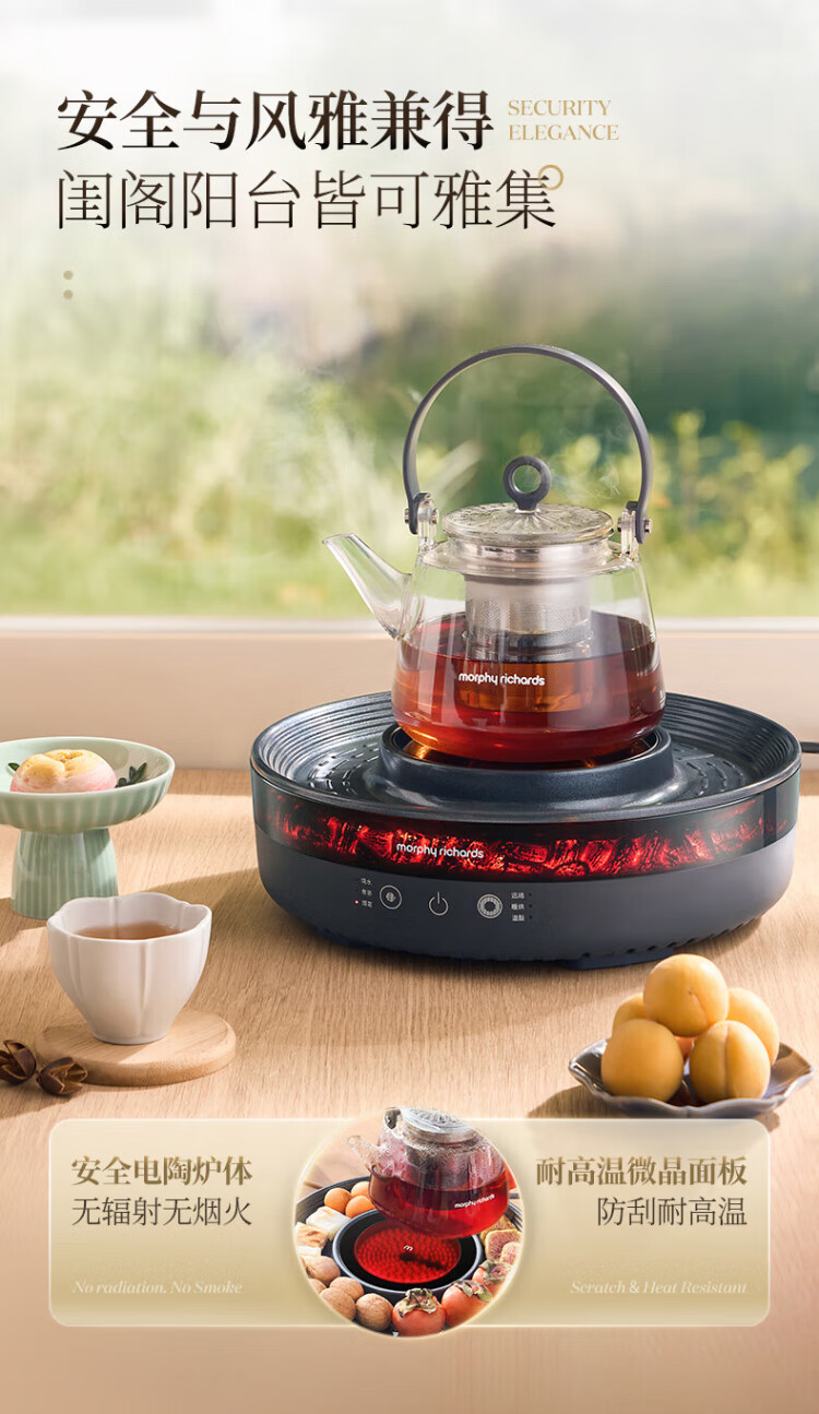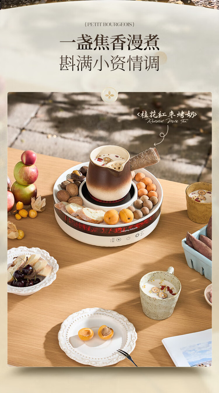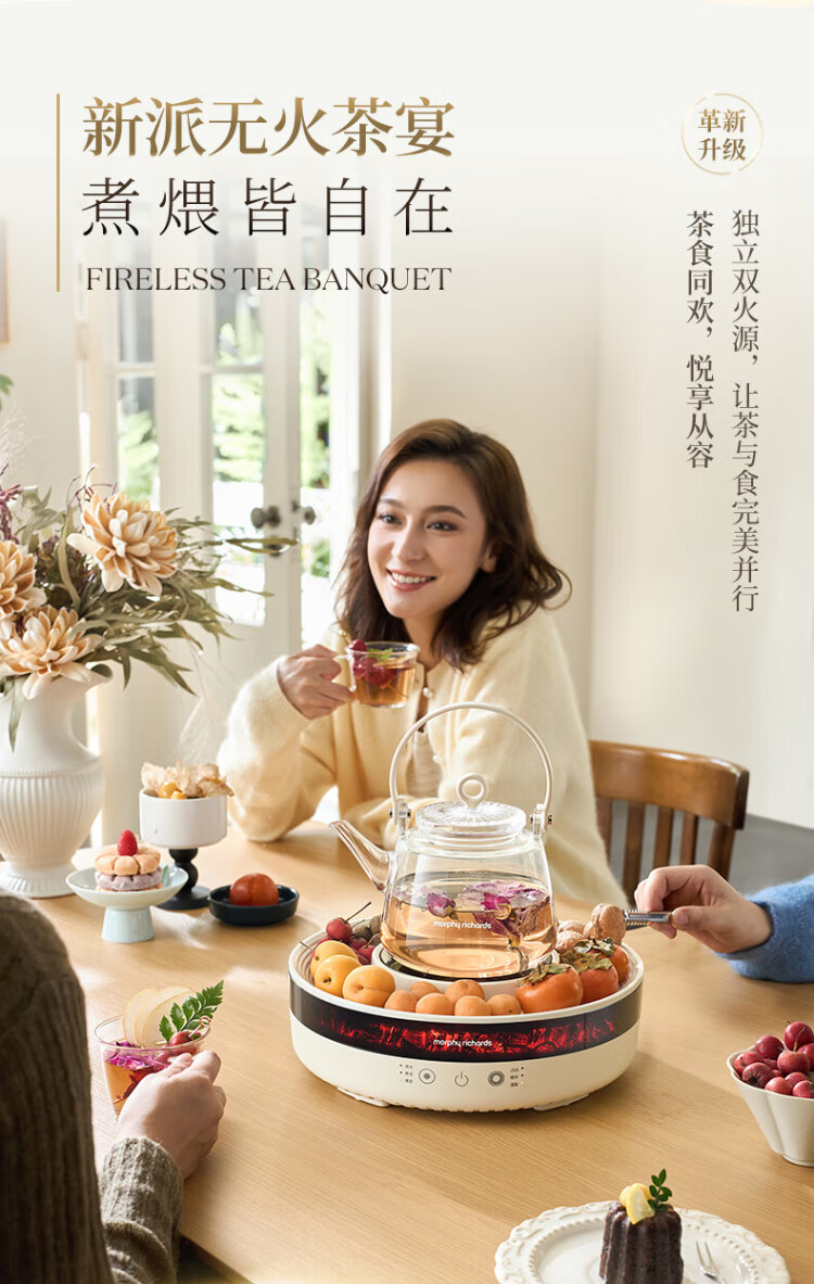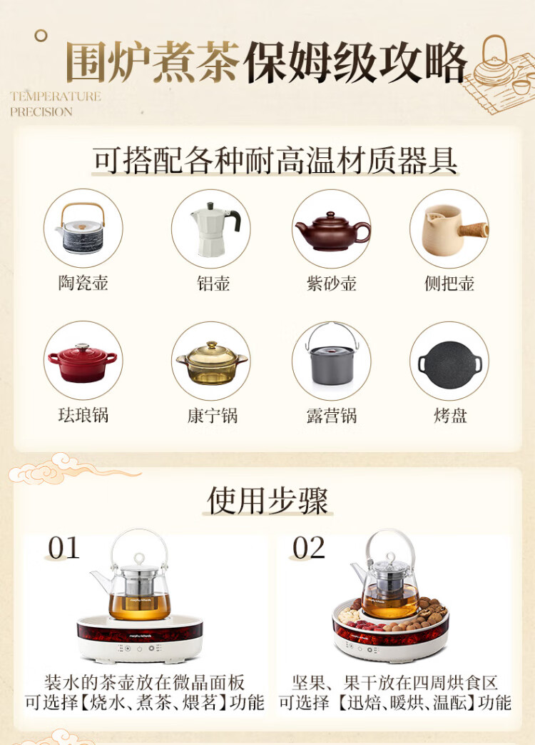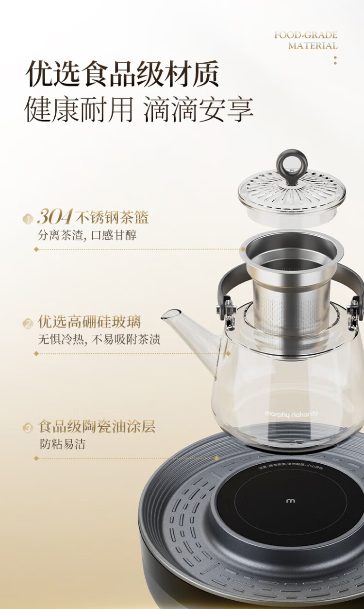 Mofei Electric Fireplace Tea Cooking Set Health Kettle Full Glass Kettle Tea Kettle Constant Temperature Kettle Tea Cooking Equipment Tea Stove Electric Tea Stove Electric Ceramic Stove MR6096-Coconut Milk White 0.8L