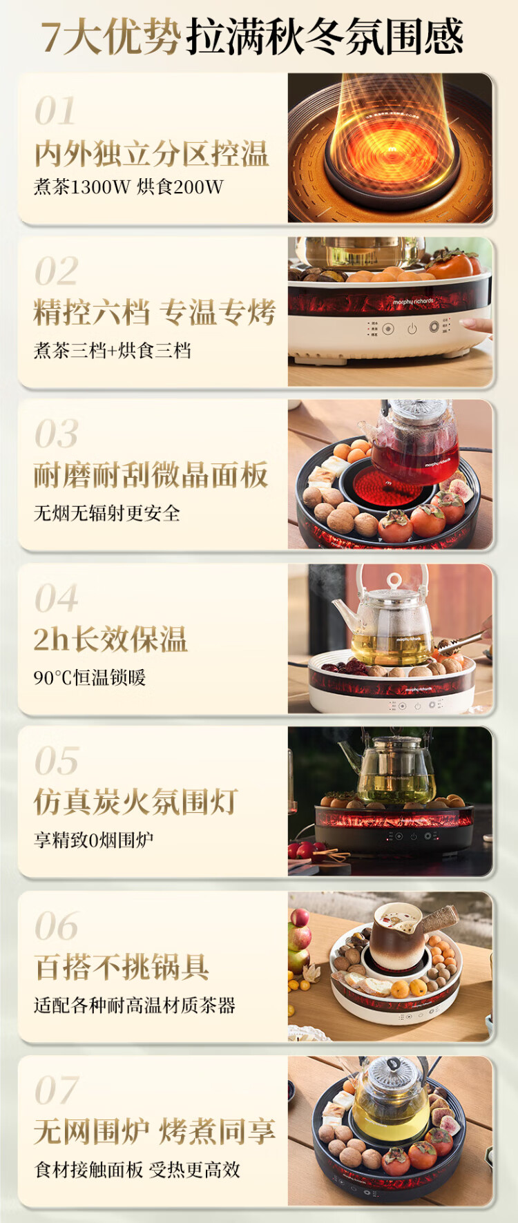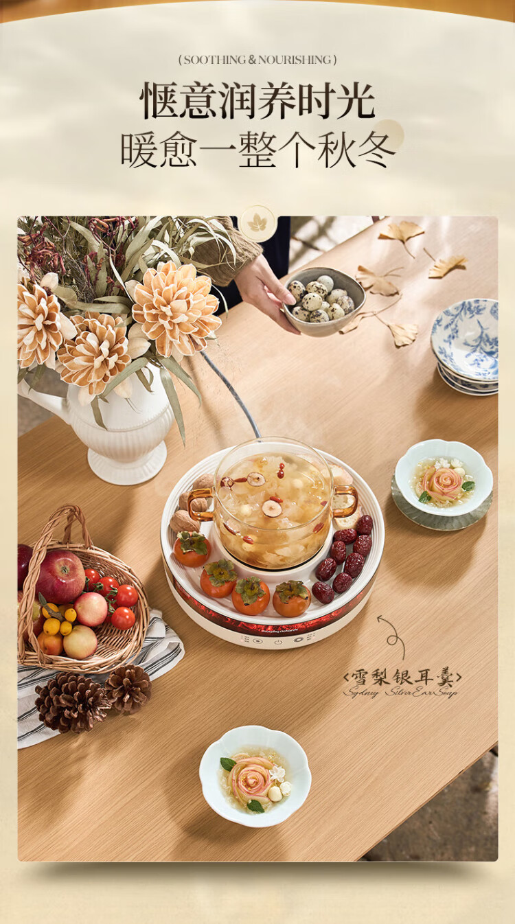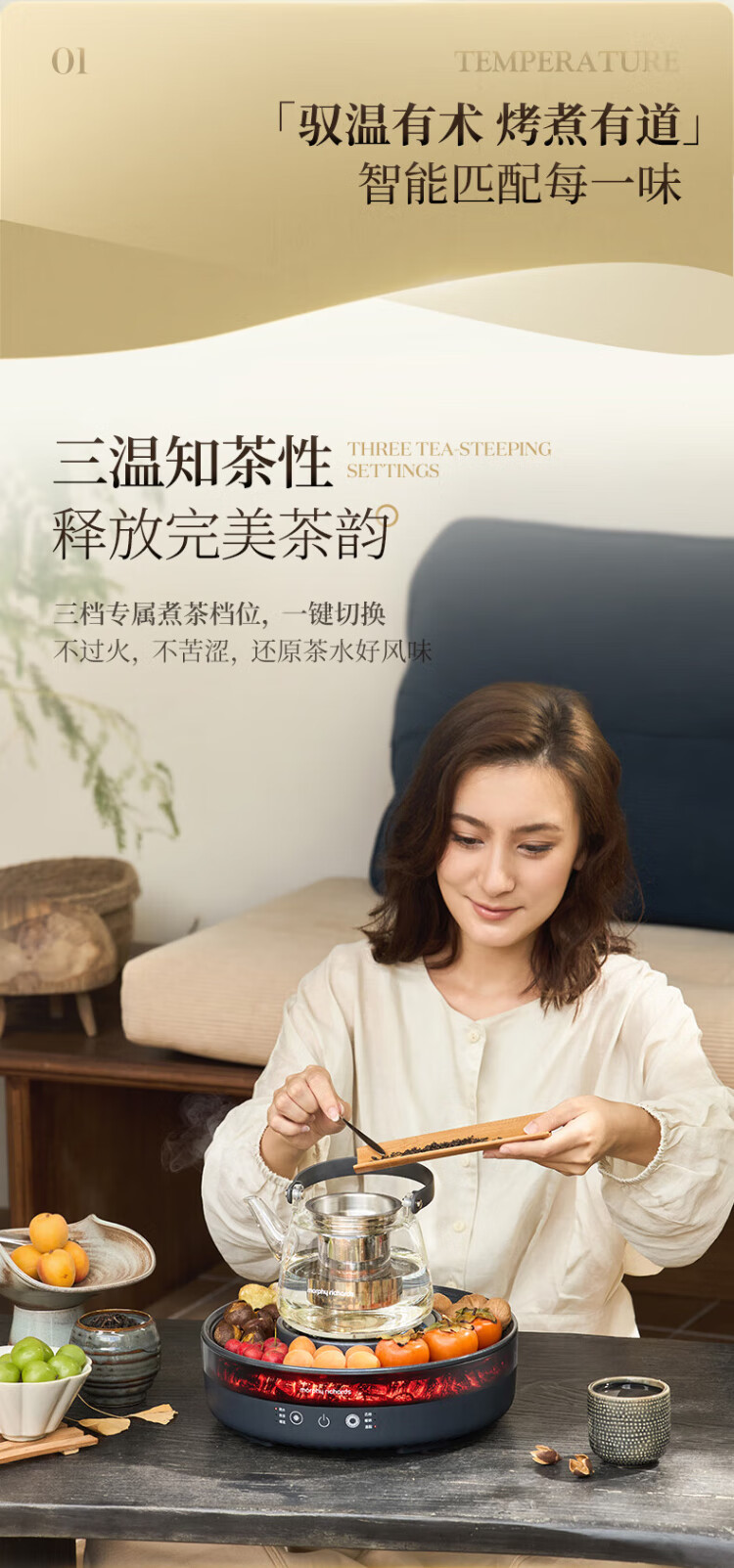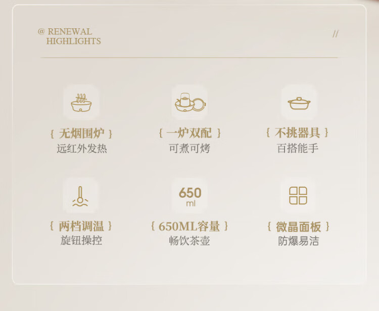 Mofei Electric Fireplace Tea Cooking Set Health Kettle Full Glass Kettle Tea Kettle Constant Temperature Kettle Tea Cooking Equipment Tea Stove Electric Tea Stove Electric Ceramic Stove MR6096-Coconut Milk White 0.8L
